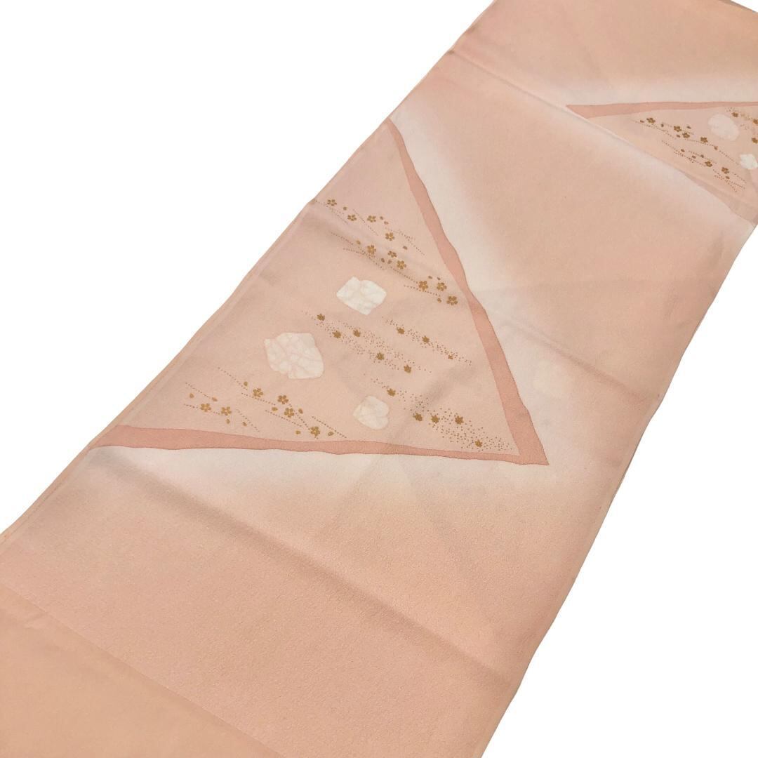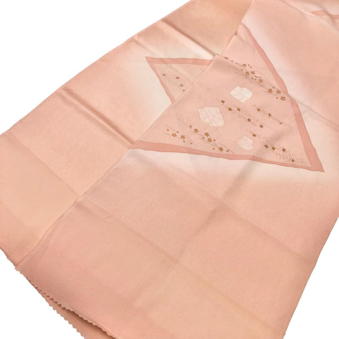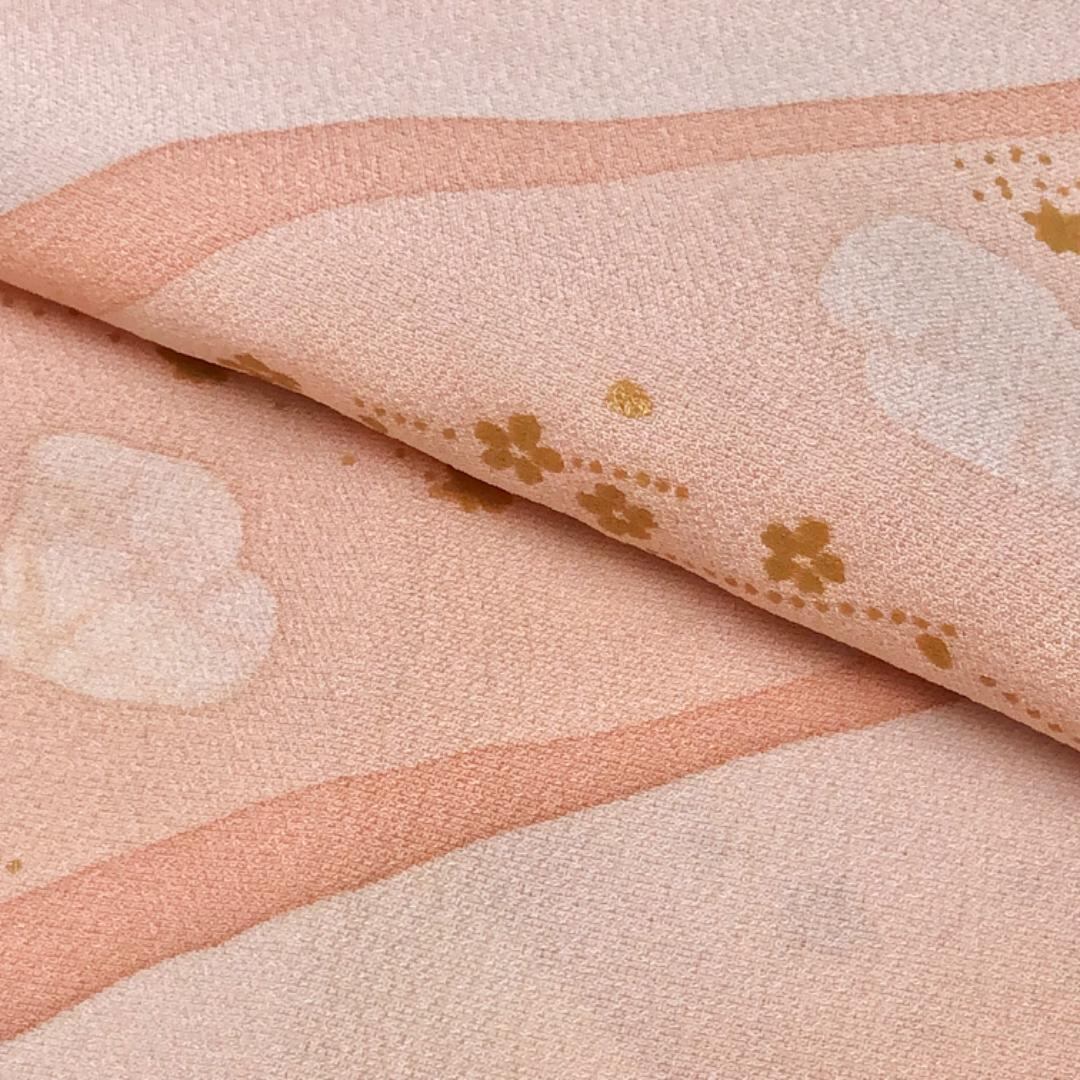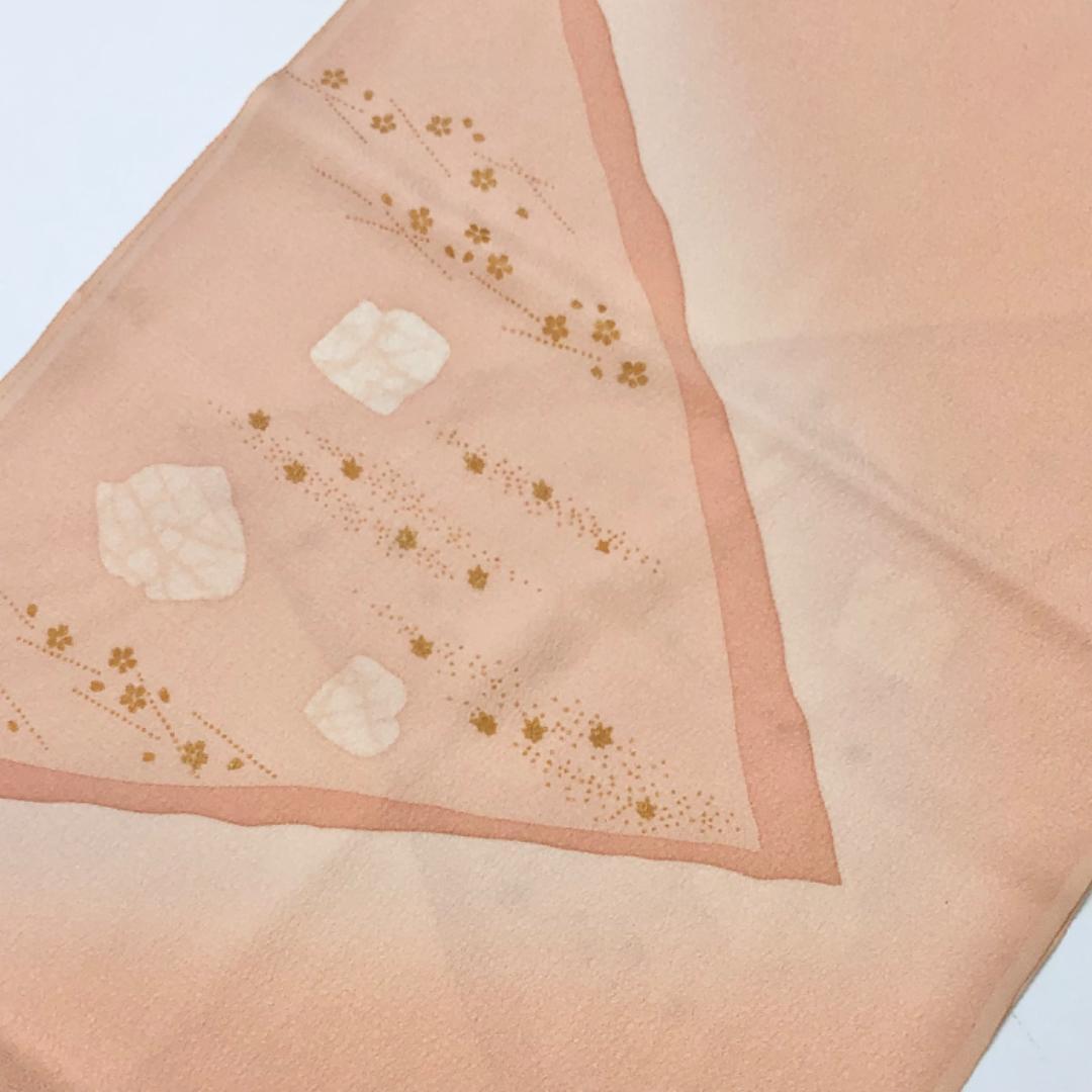 薄大和柿色ベースの暈しのお色味に可愛らしい小花柄がデザインされた素敵なお品でございます。