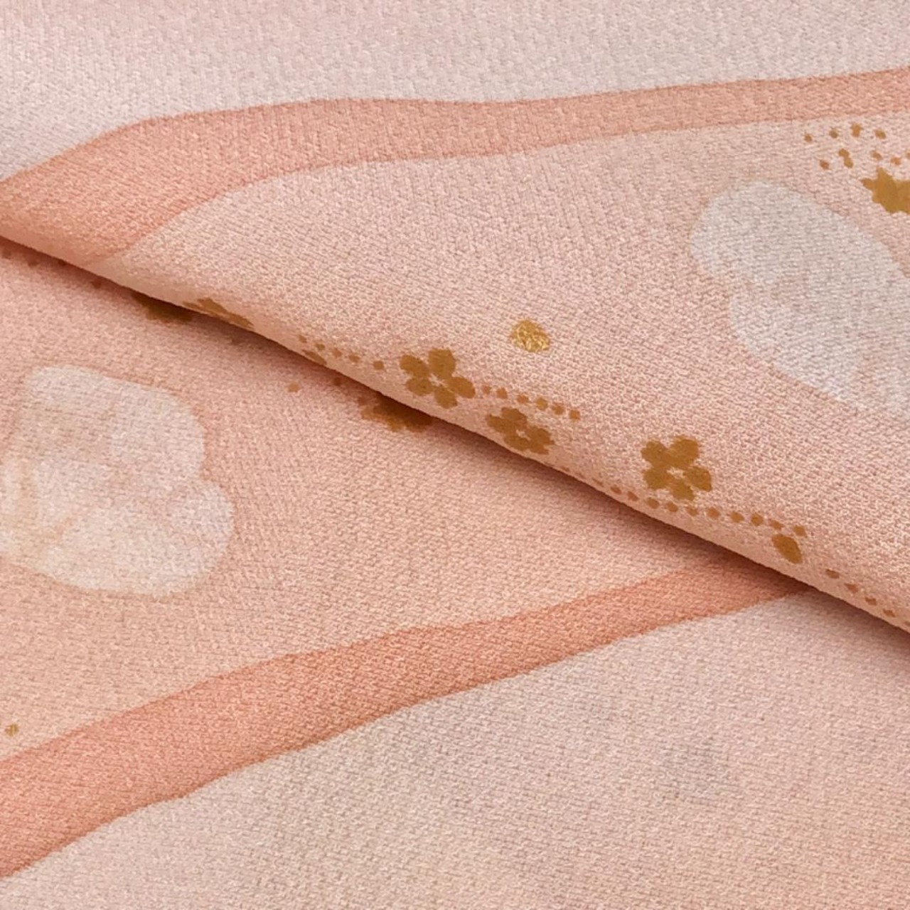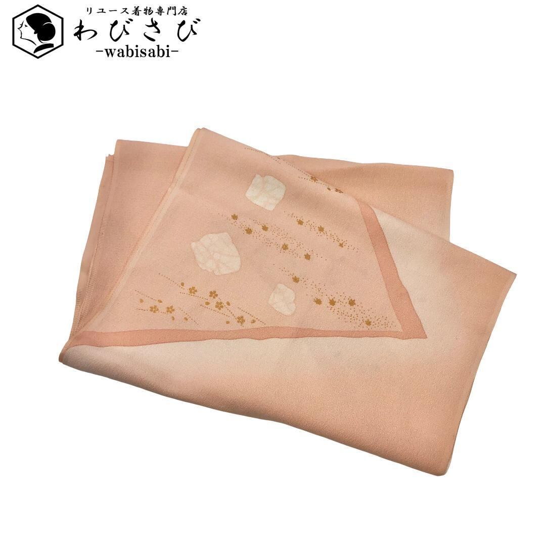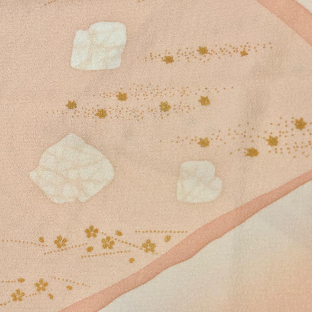 薄大和柿色ベースの暈しのお色味に可愛らしい小花柄がデザインされた素敵なお品でございます。