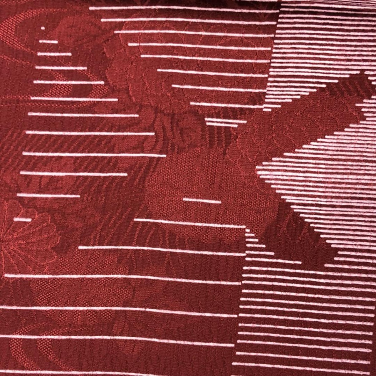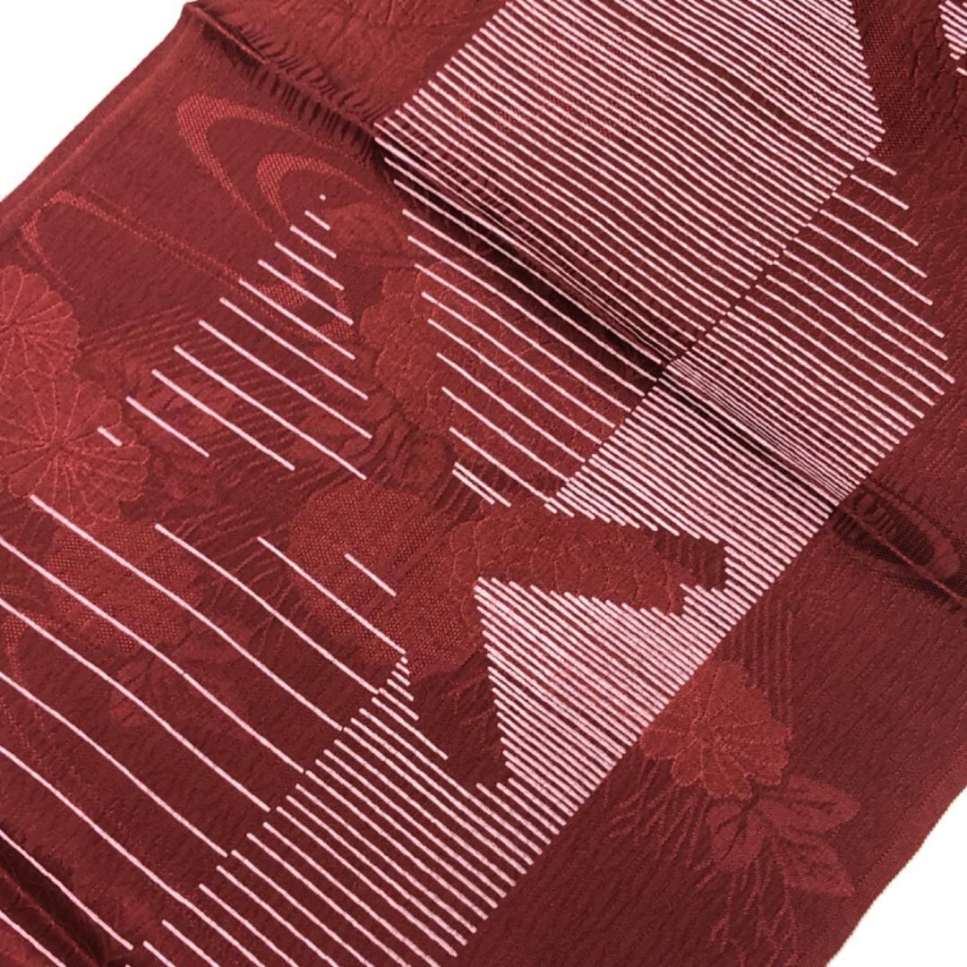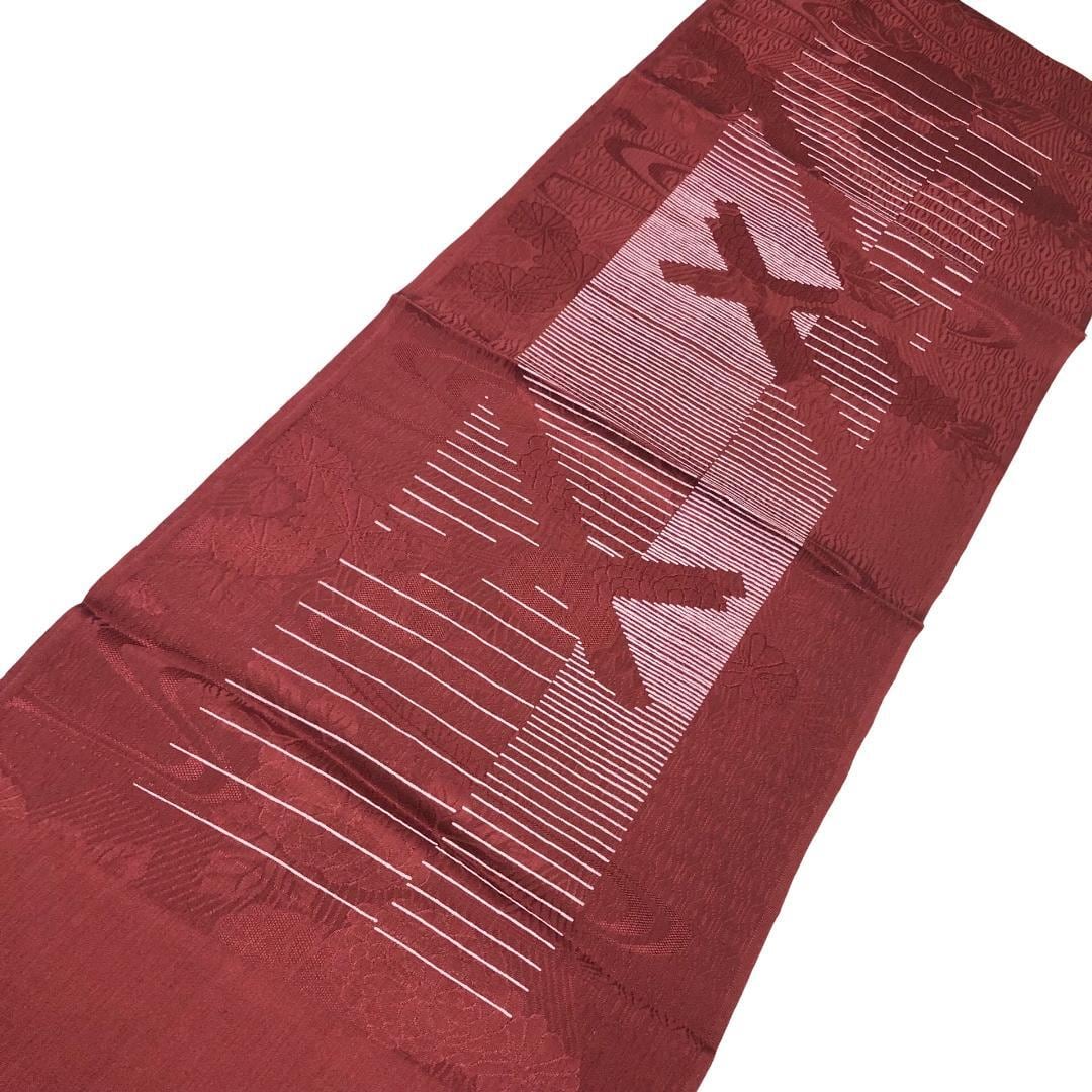 小豆茶色のお色味に流水に花模様などがデザインされた素敵なお品でございます。