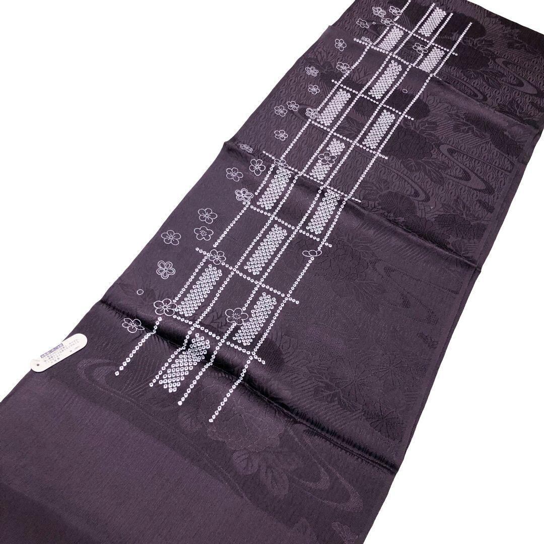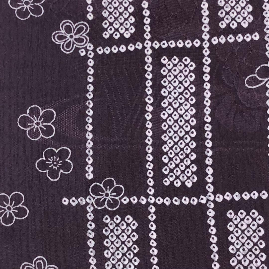 紫黒色のお色味に格子に花模様なデザインされた素敵なお品でございます。