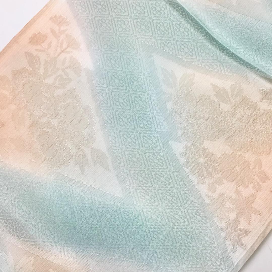 シェルピンクベースのお色味に暈し、花模様がデザインされた素敵なお品でございます。