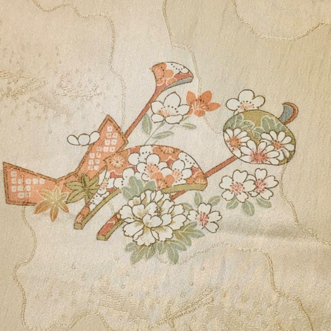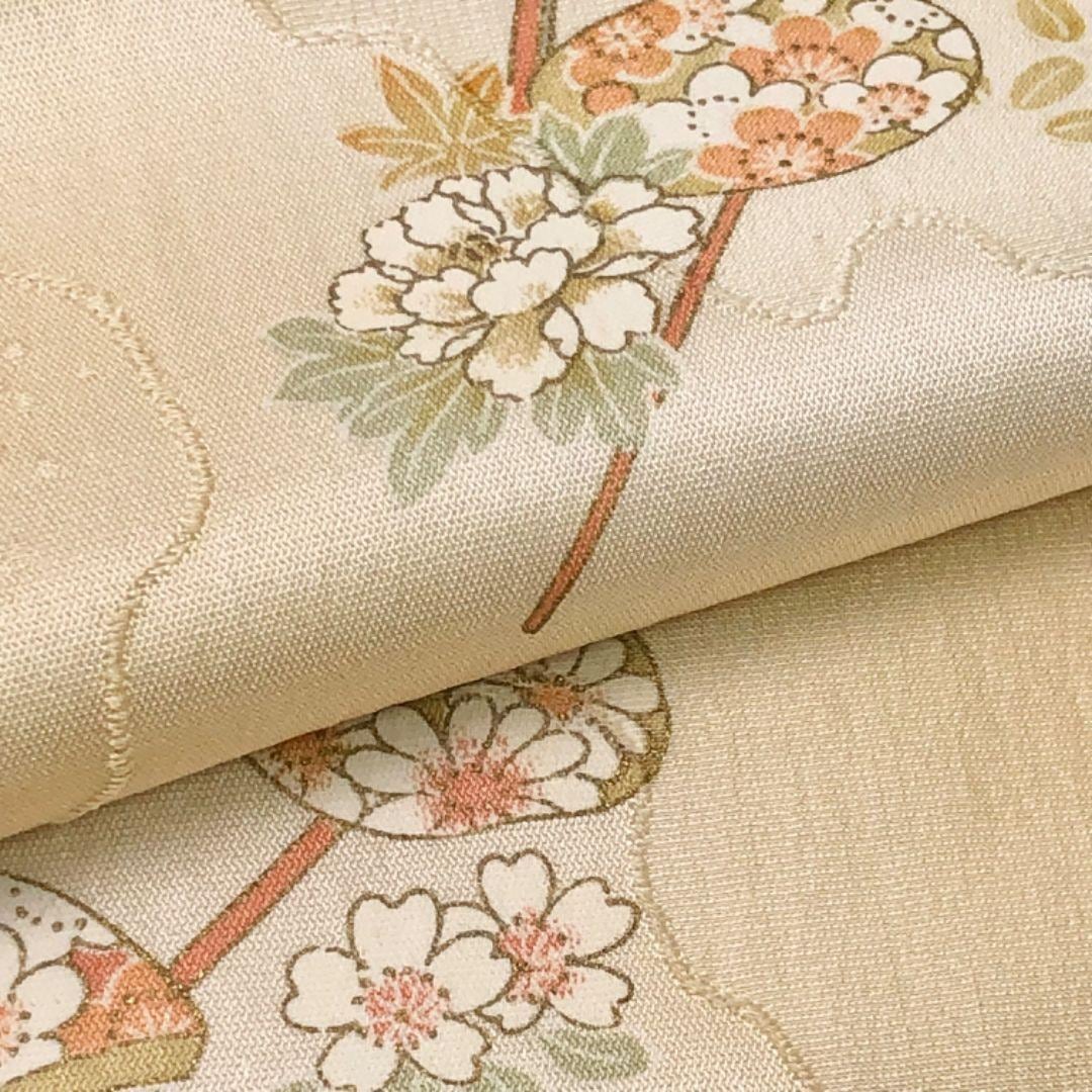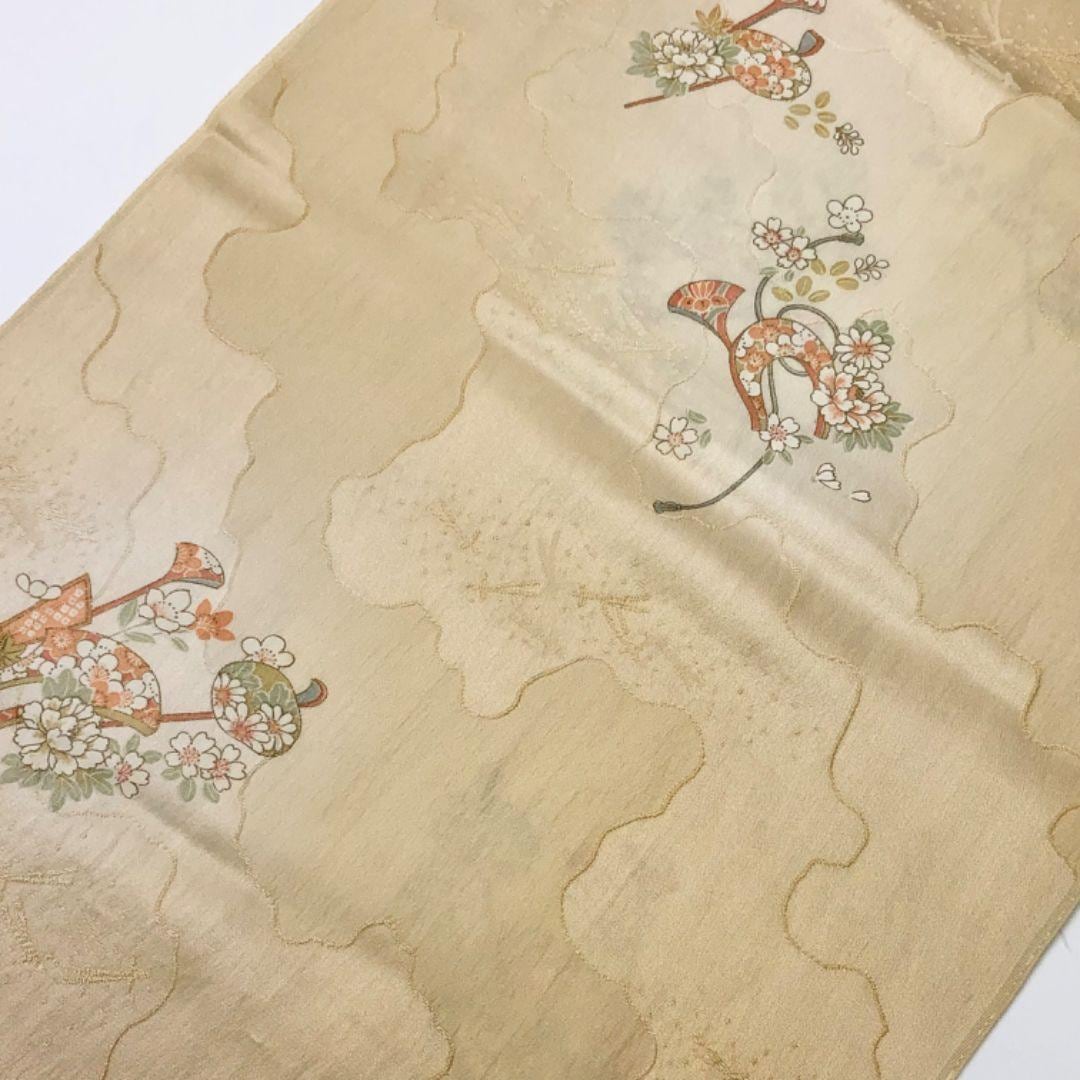 鳥の子色に簪に花模様、暈しがデザインされた素敵なお品でございます。