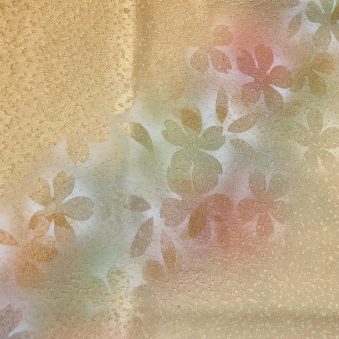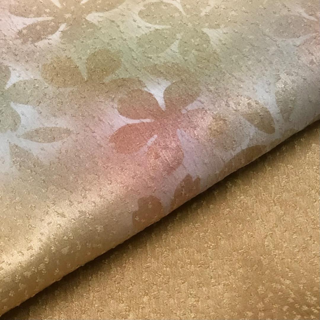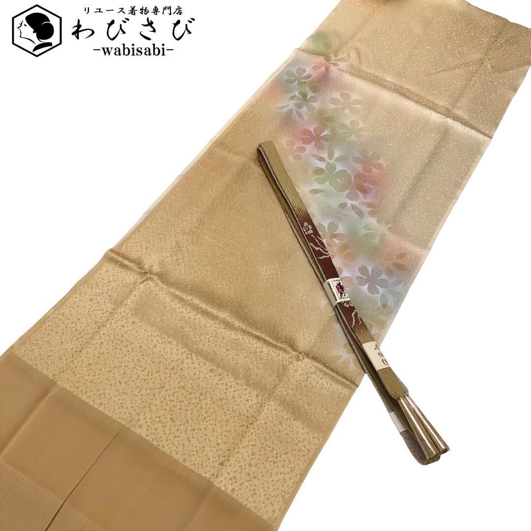 麦藁色ベースのお色味に綸子の帯揚げ、高麗組の帯締めの素敵なお品でございます。