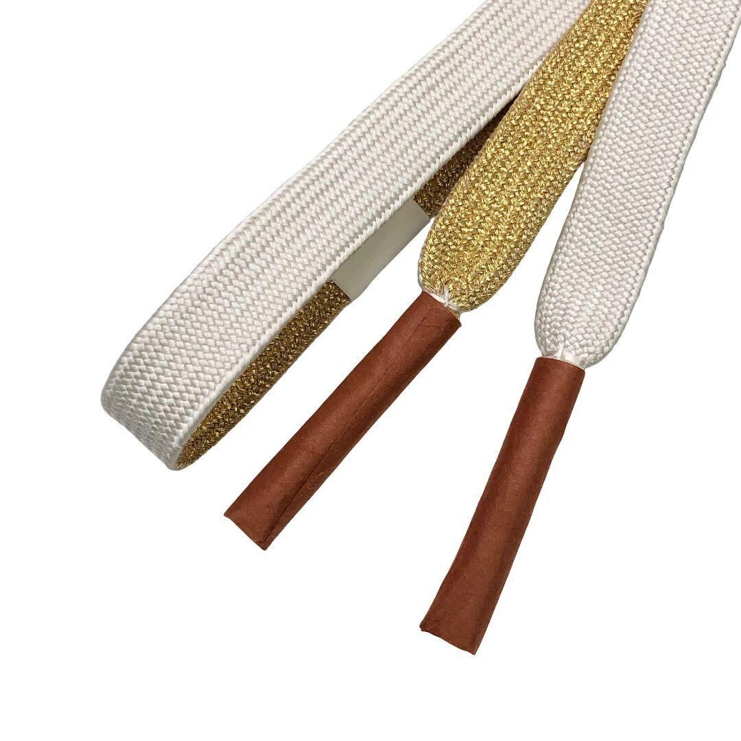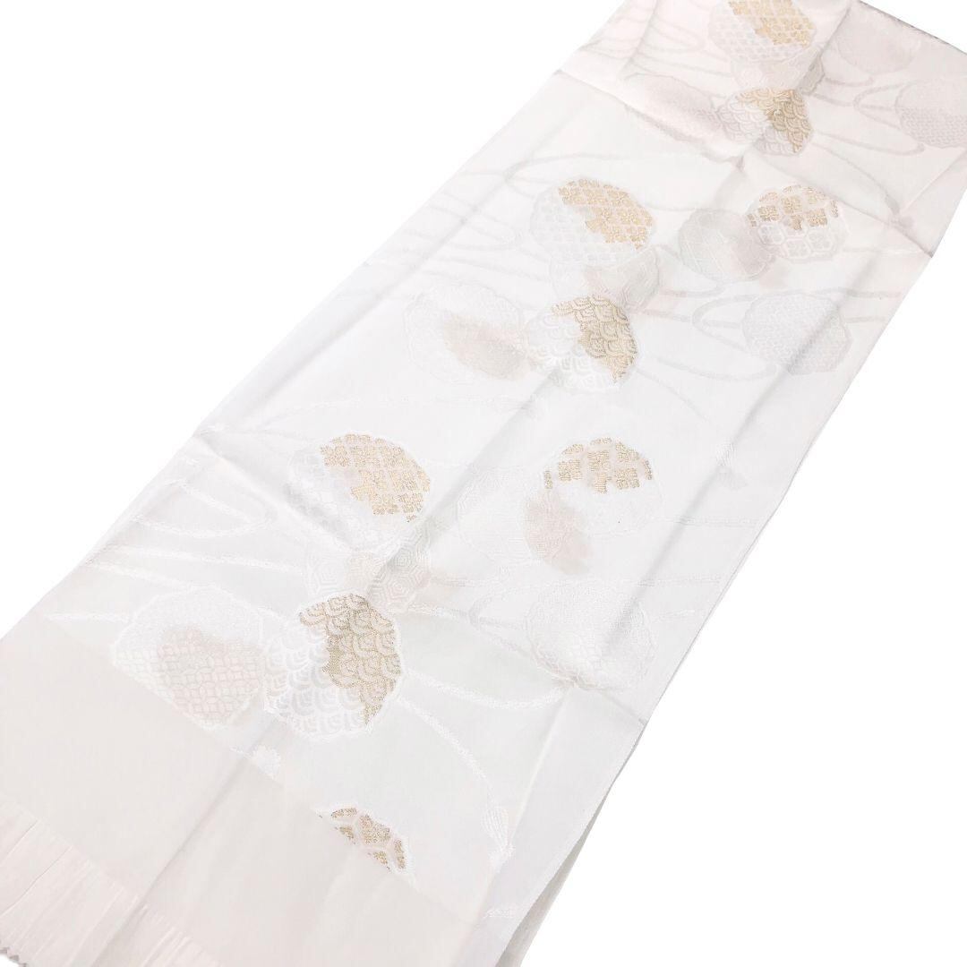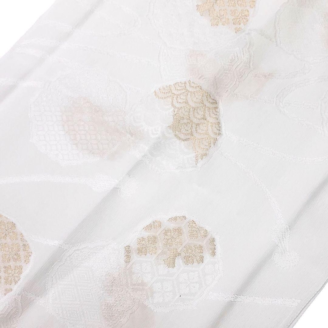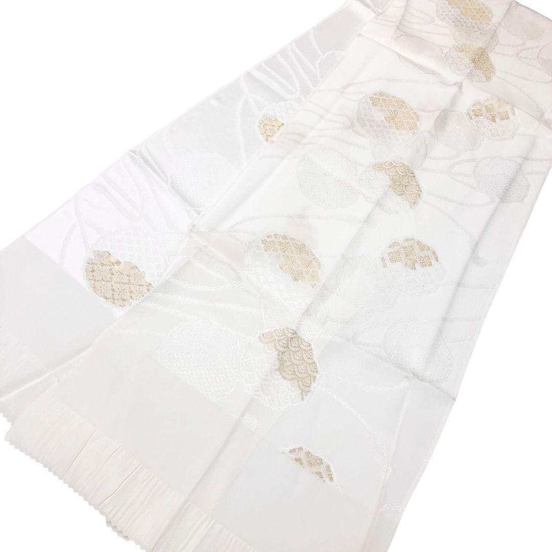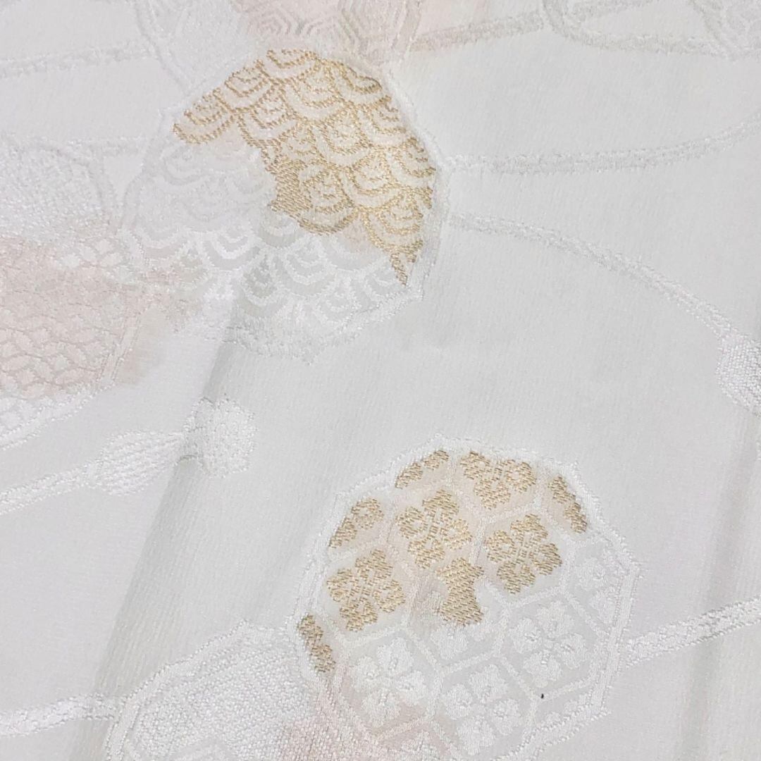 乳白色のお色味の綸子の帯揚げ、高麗組の帯締めに扇子の素敵なお品でございます。