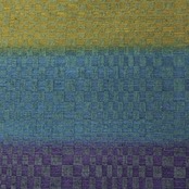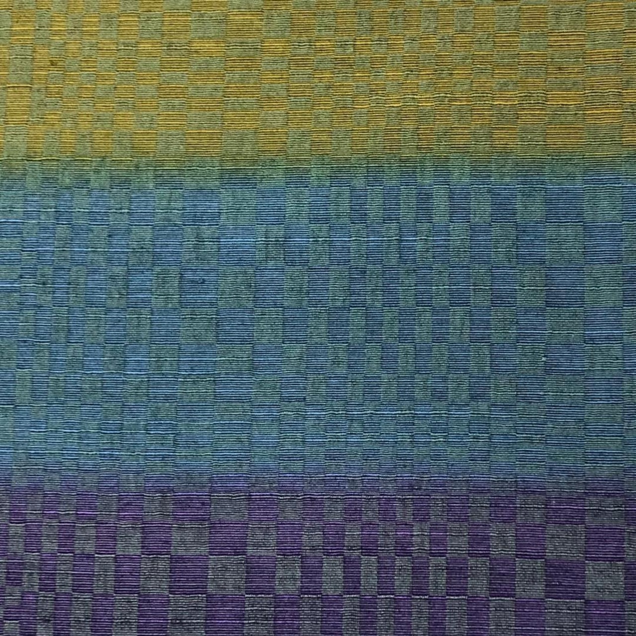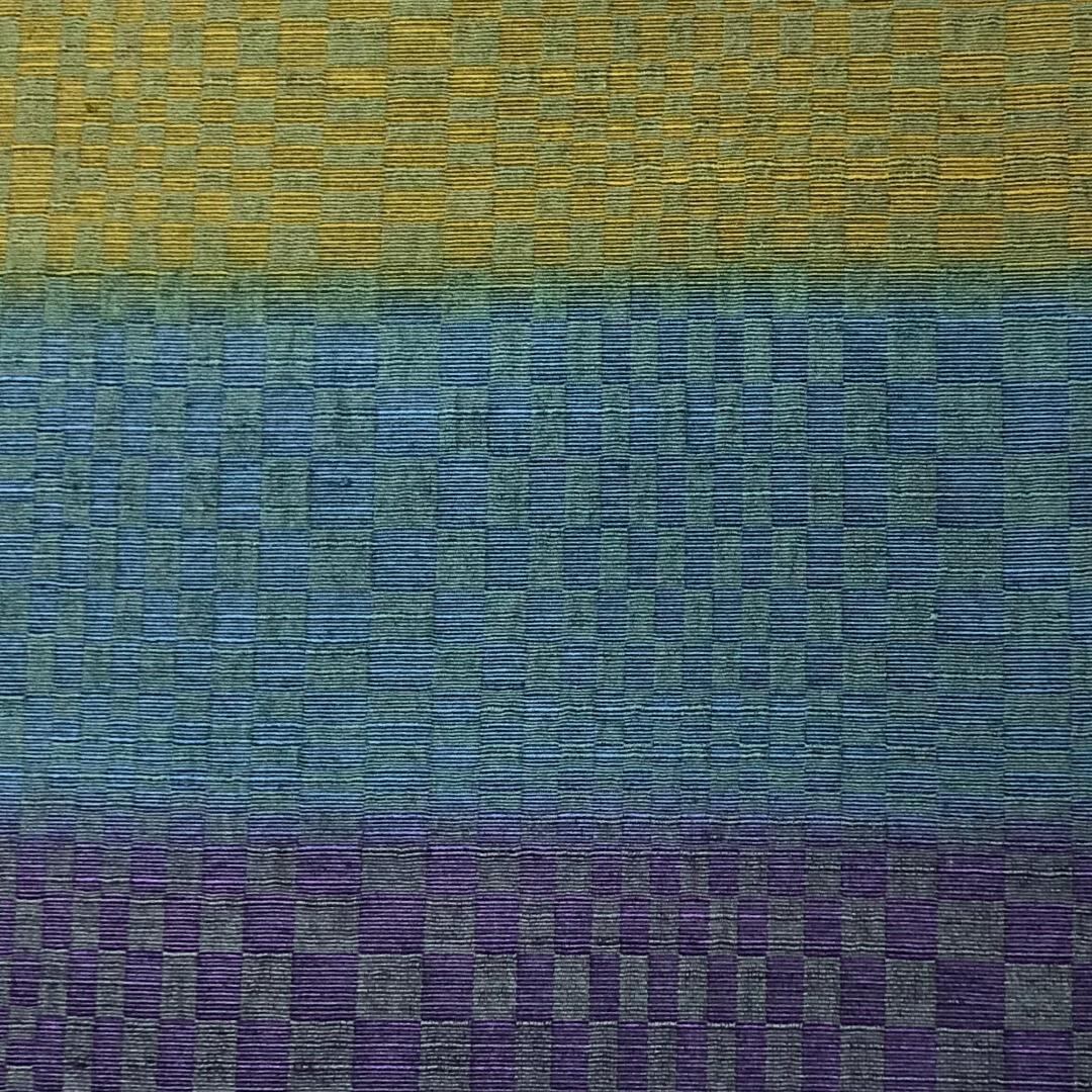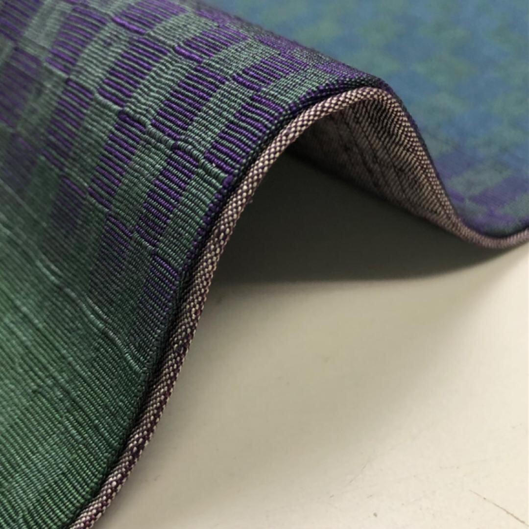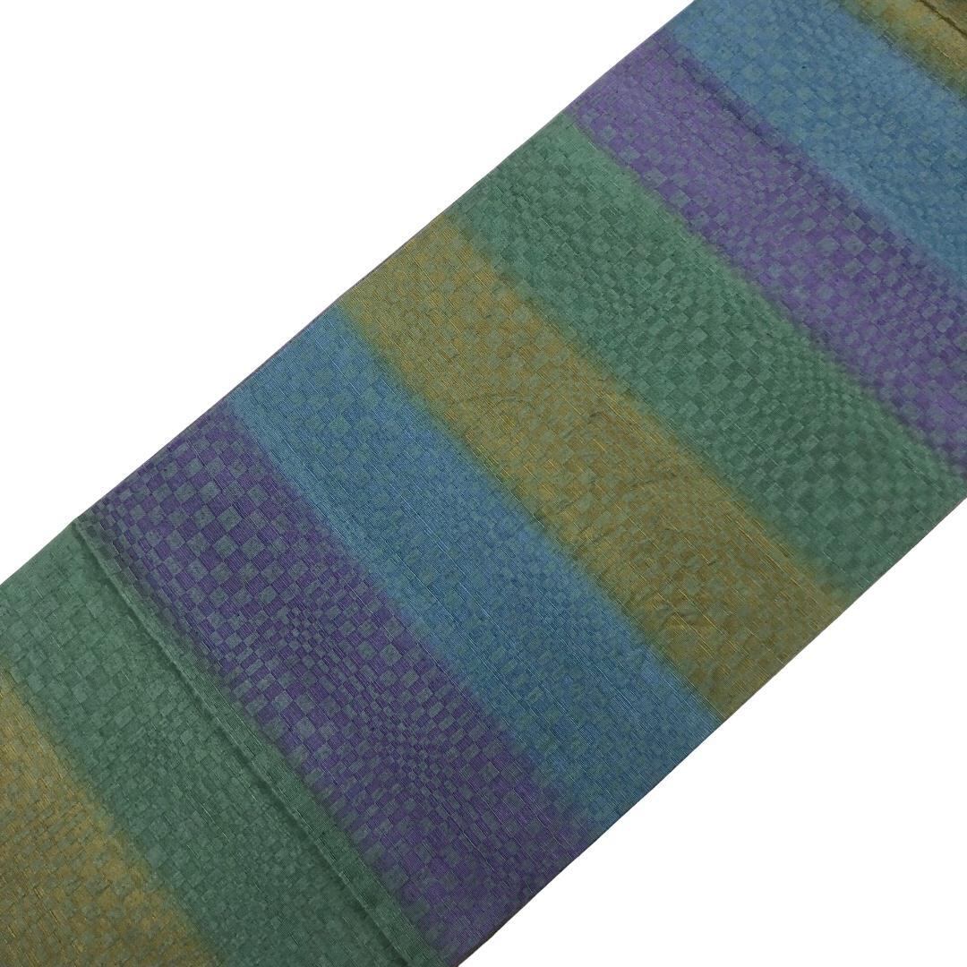 多彩な色彩の横縞模様に変わり市松、反対派紫色ベースの縦縞模様のグラデーション、両面使える素敵なお品でございます。