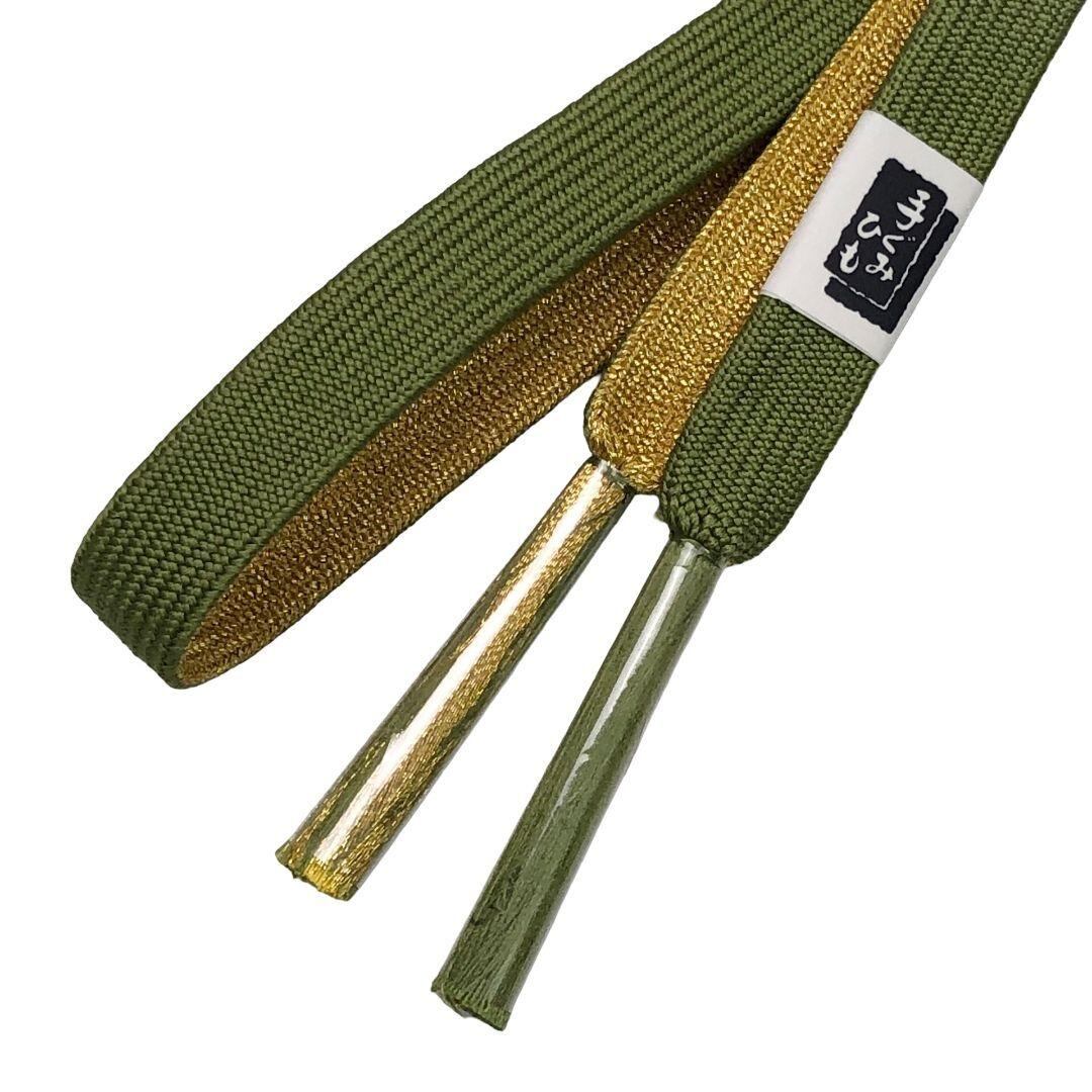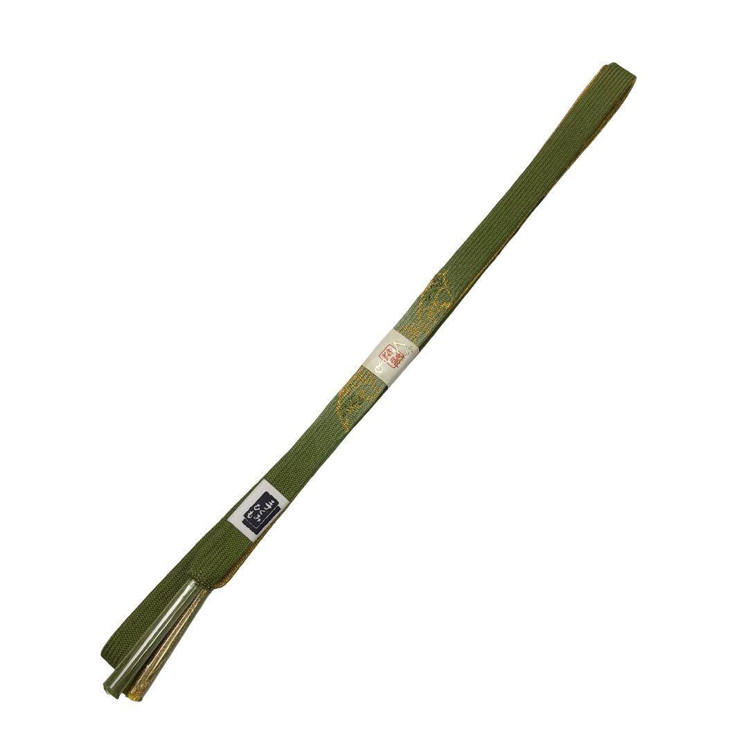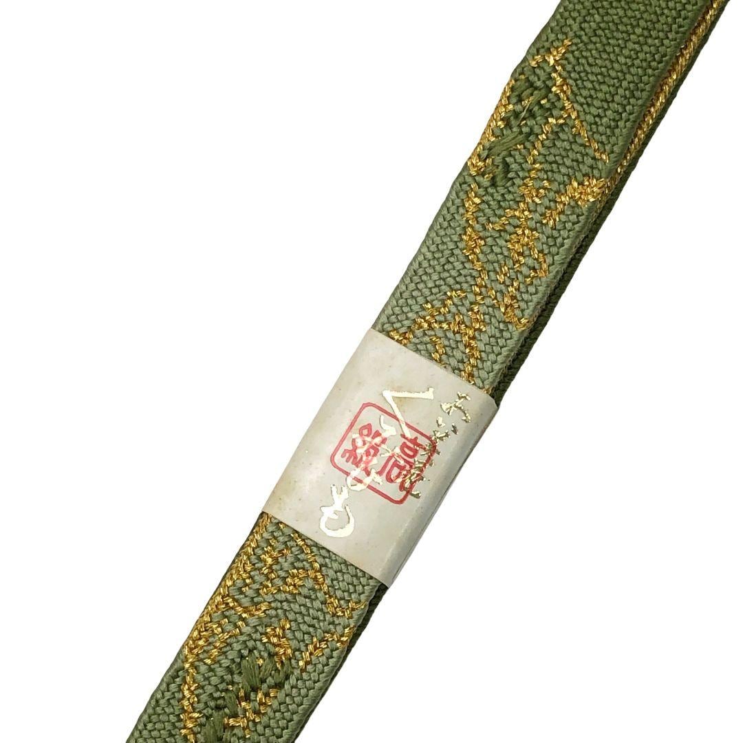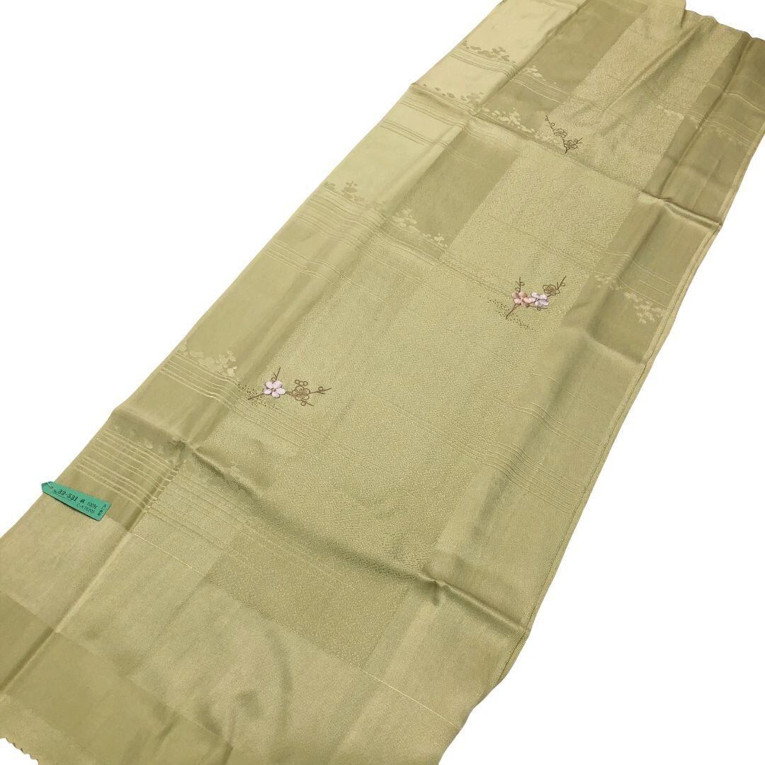 裏柳色のお色味に可愛らしい梅の刺繍がデザインされた綸子の帯揚げ、高麗組の帯締めの素敵なお品でございます。