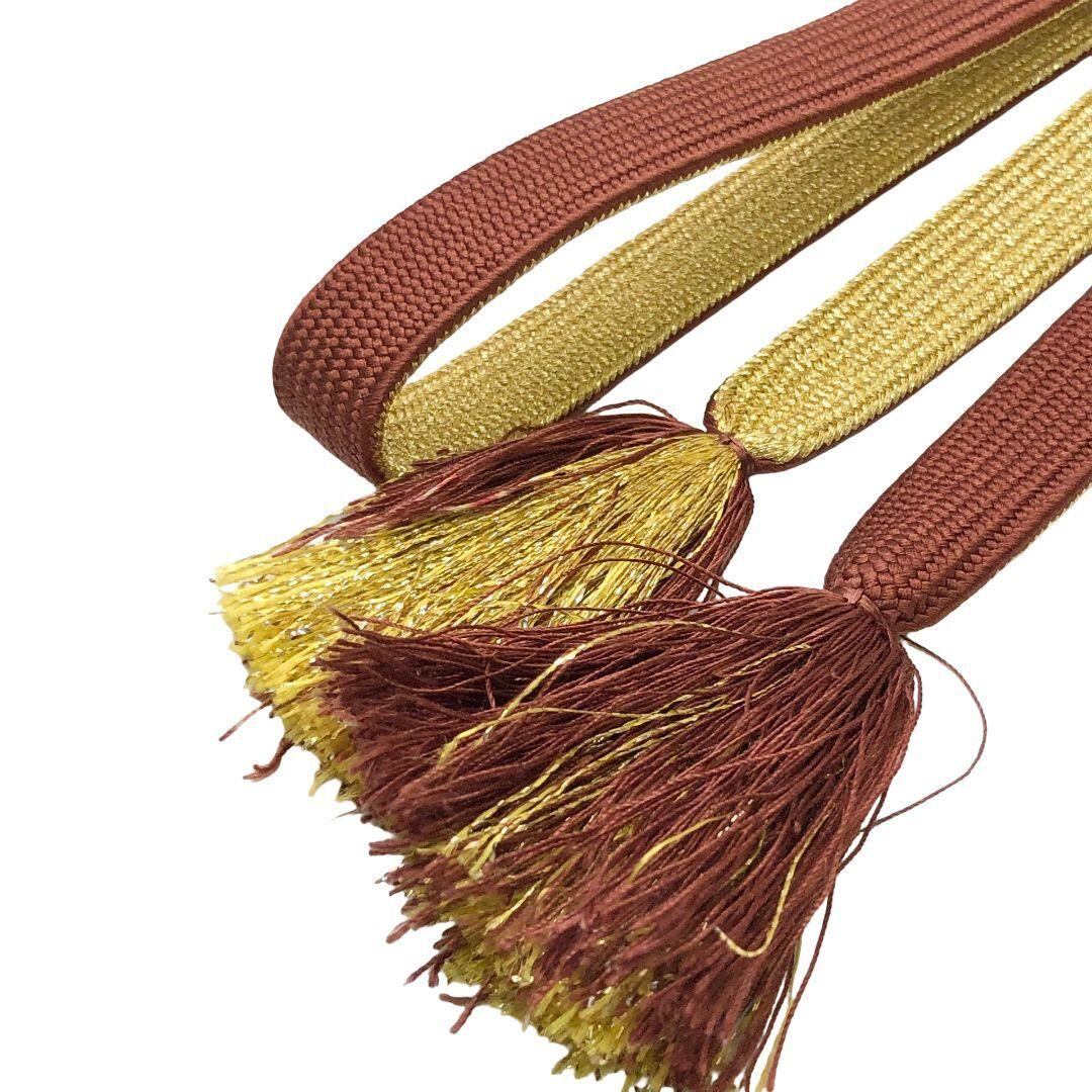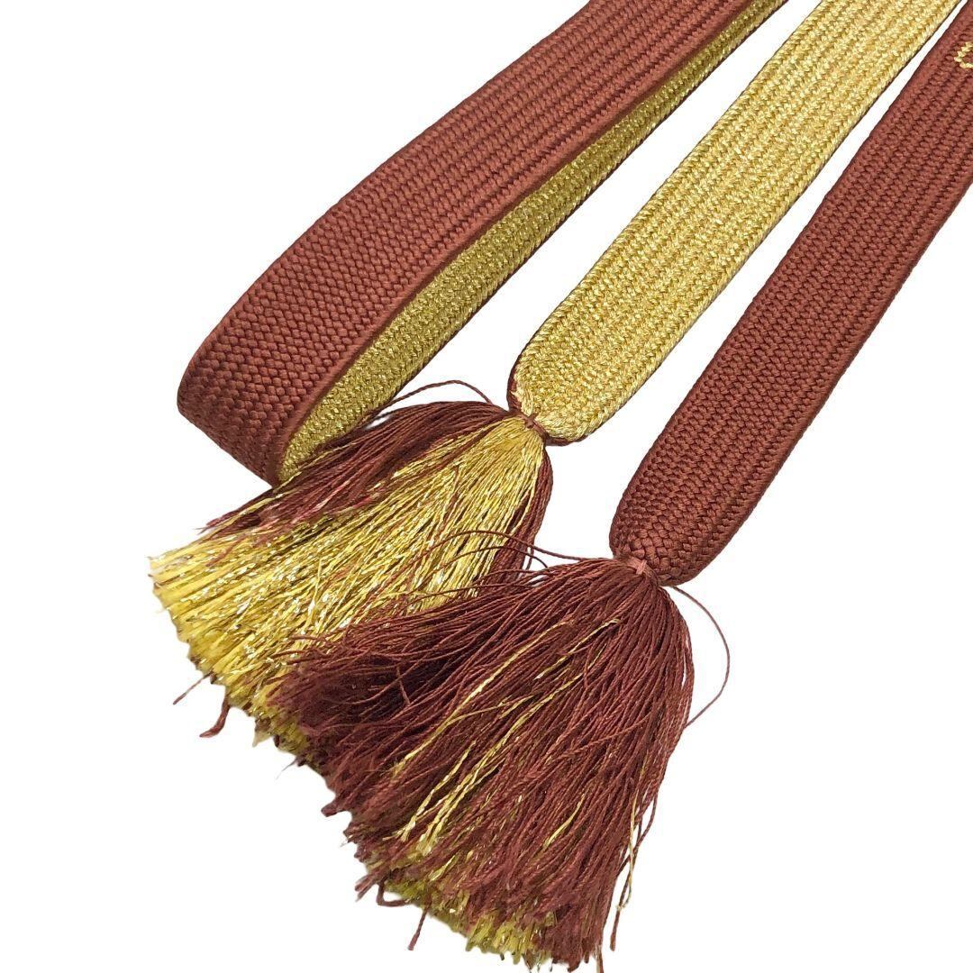和装小物 帯締め 正絹 高麗組 平組紐 組紐 花模様 茶色 金糸 C-6724 着物 きもの kimono 和服 和装 中古 リサイクル着物 【送料無料】