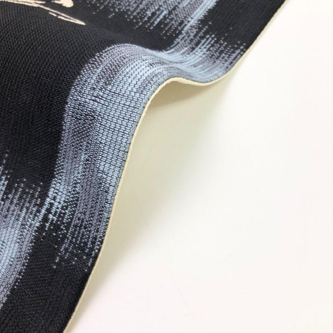 袋帯 格子模様に雪月花 青袋鼠色 O-5760 着物 きもの kimono 和服 和装 中古 リサイクル着物 【送料無料】