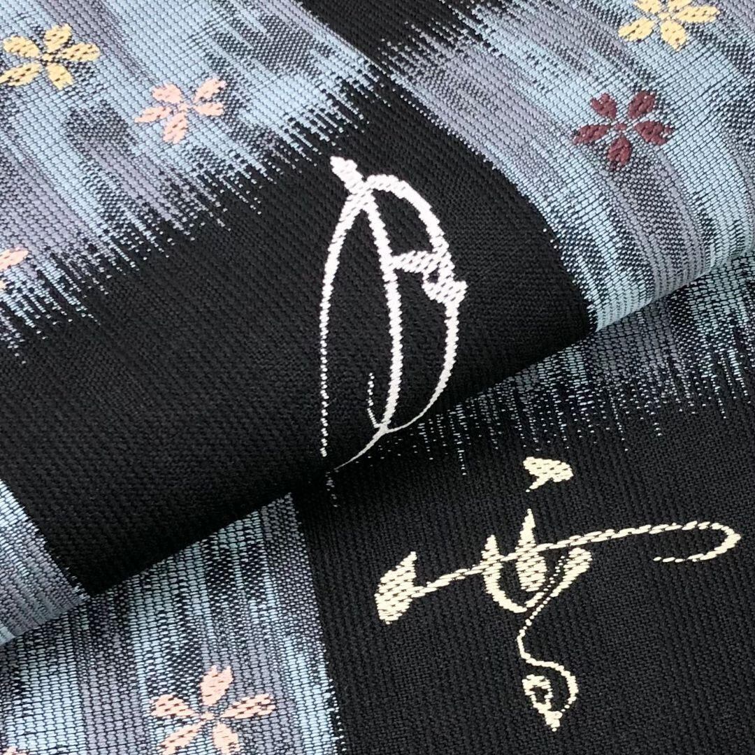 青袋鼠色ベースのお色味に格子模様に雪月花がデザインされた素敵なお品でございます。