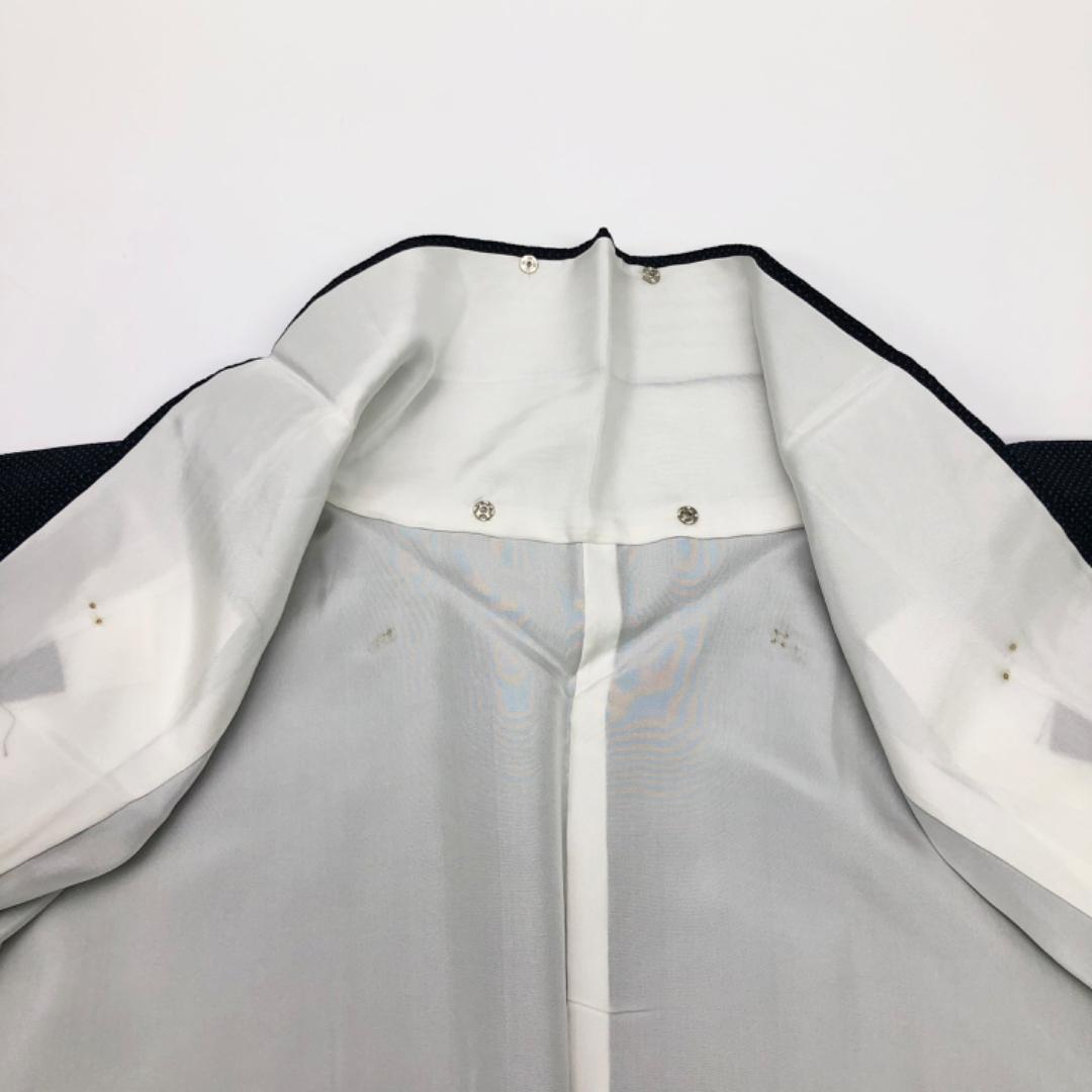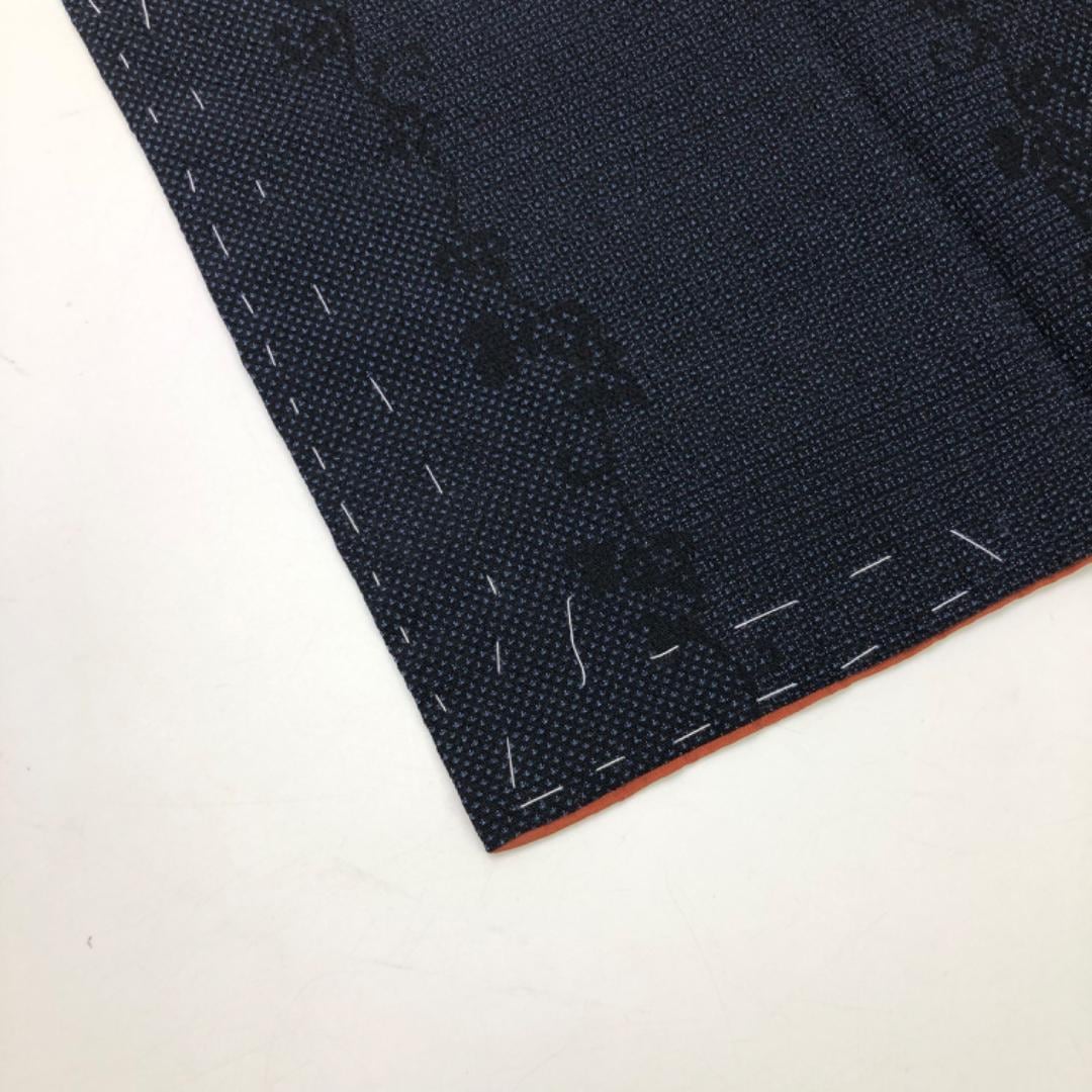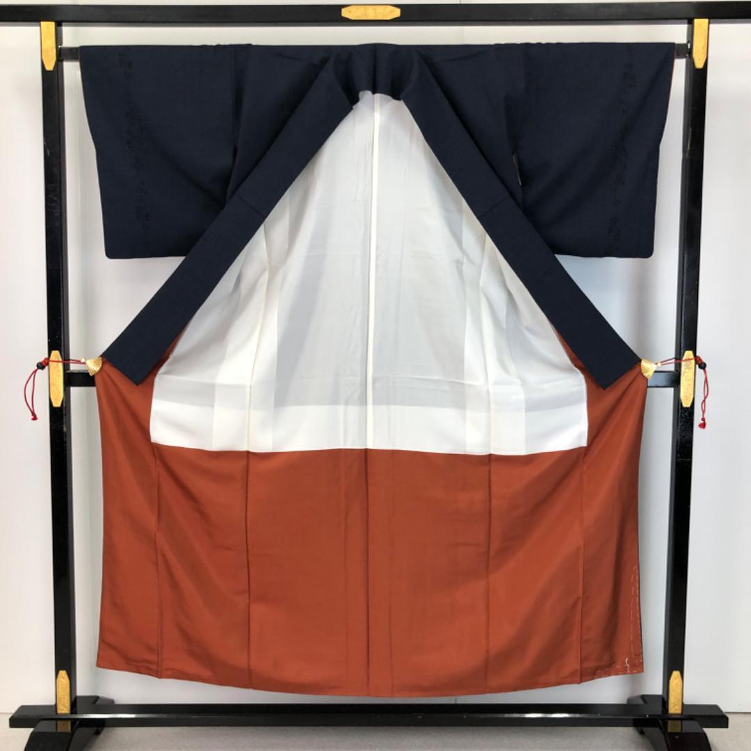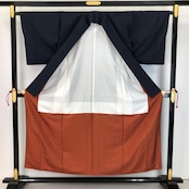 青褐色のお色味に花唐草模様の柄裄がデザインされた素敵なお品でございます。