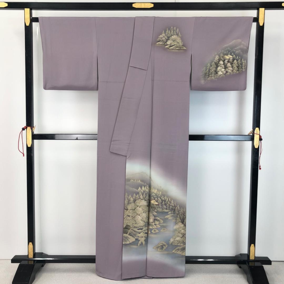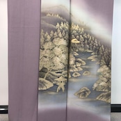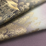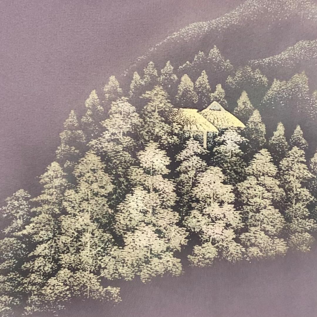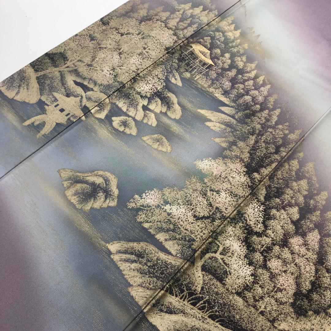鳩羽色のお色味に金彩が使われた風景柄がデザインされた素敵なお品でございます。