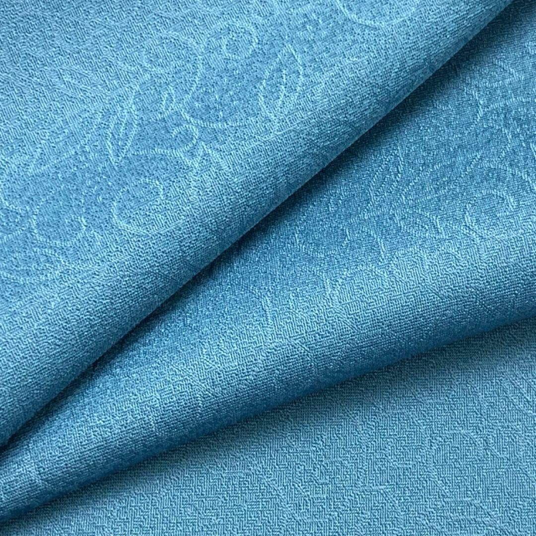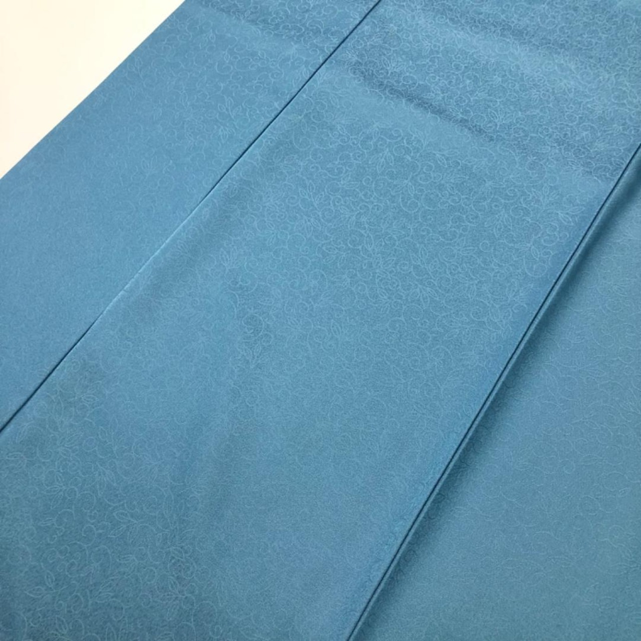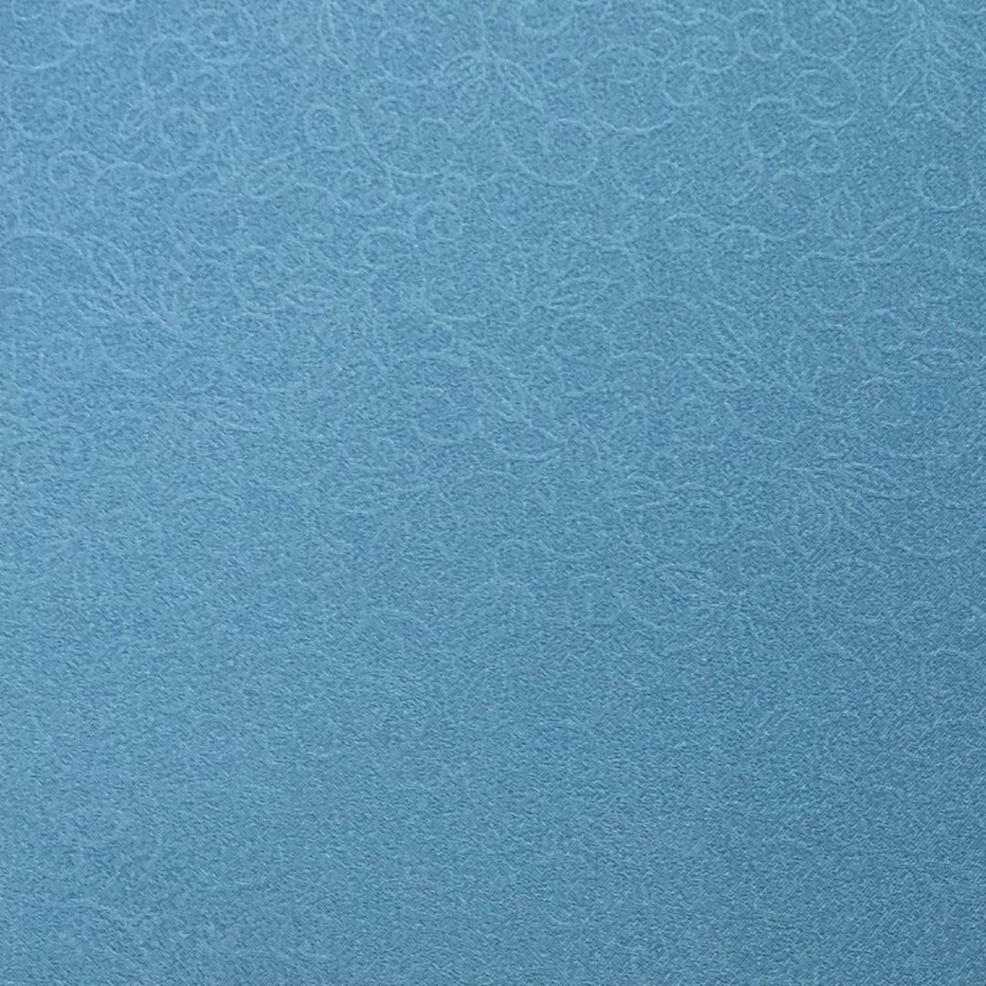 花浅葱色のお色味に唐草の地模様がデザインされた素敵なお品でございます。