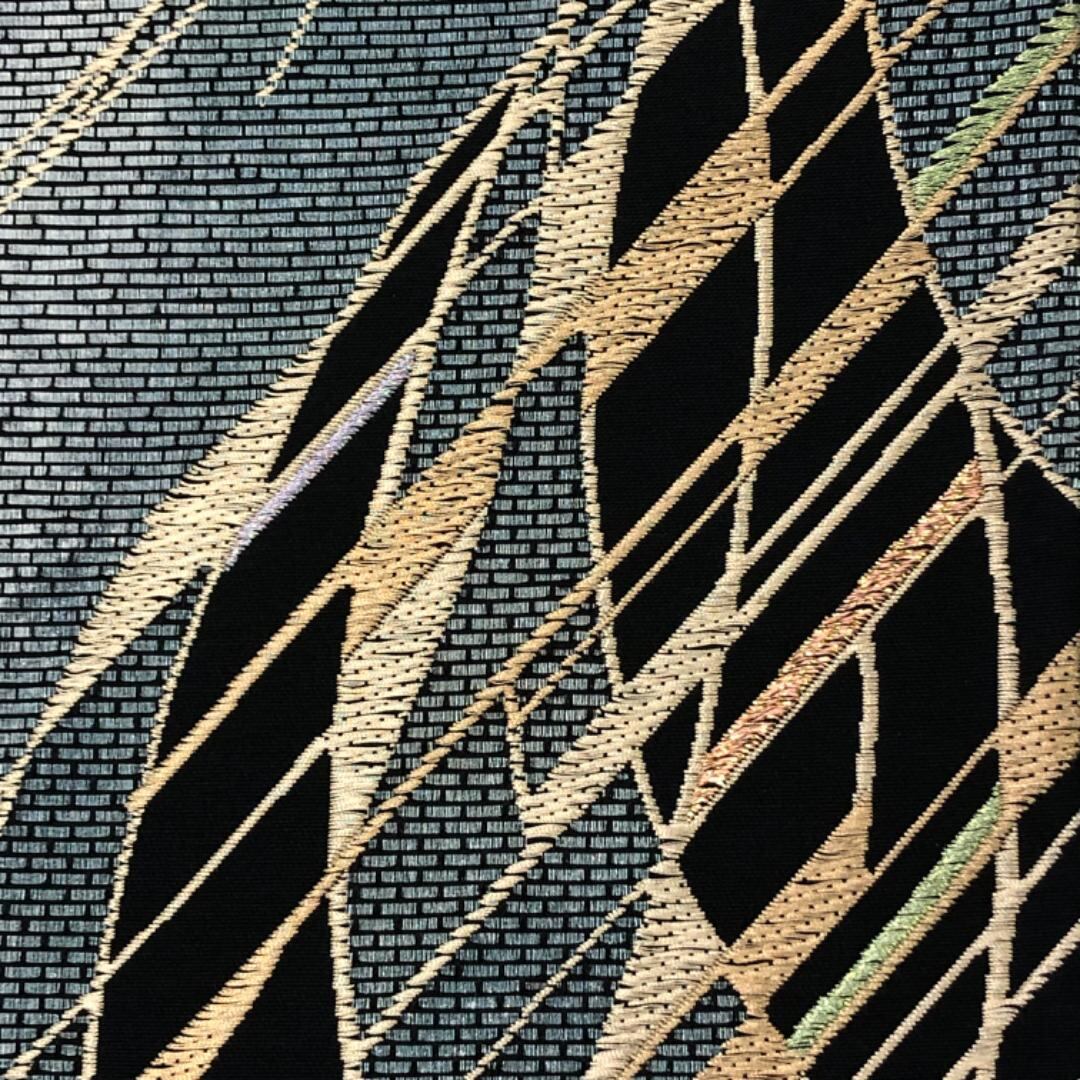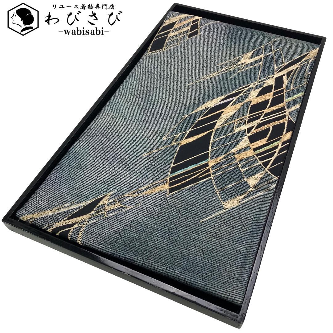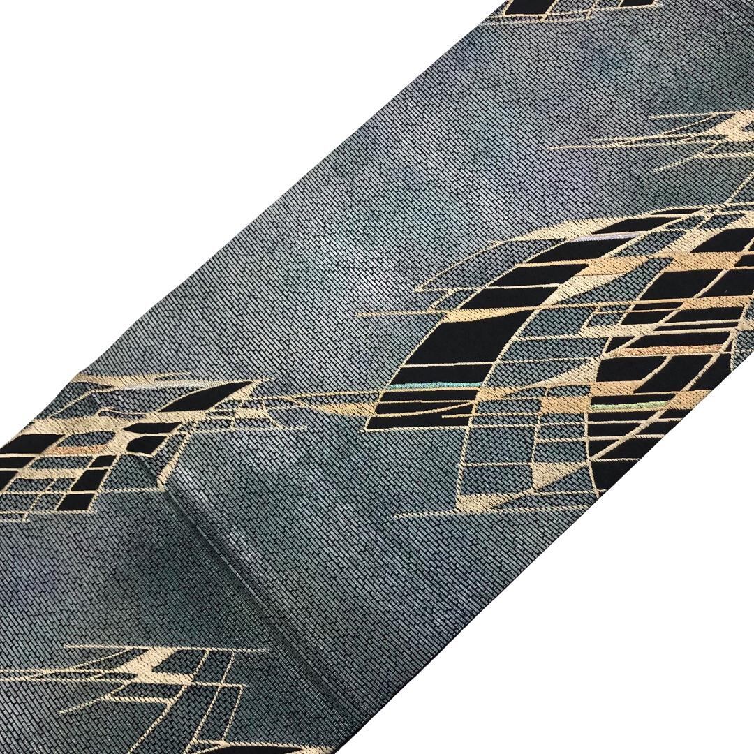 袋帯 モダンな抽象模様 青鈍色 金銀糸 O-5758 着物 きもの kimono 和服 和装 中古 リサイクル着物 【送料無料】