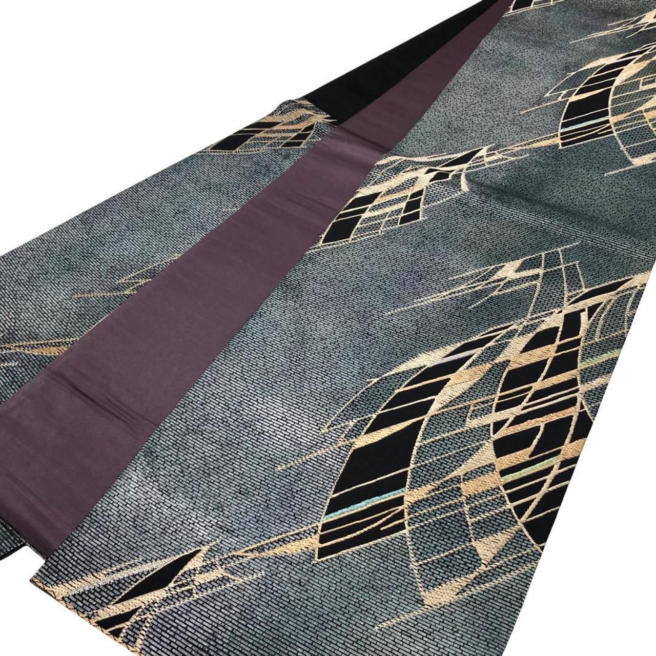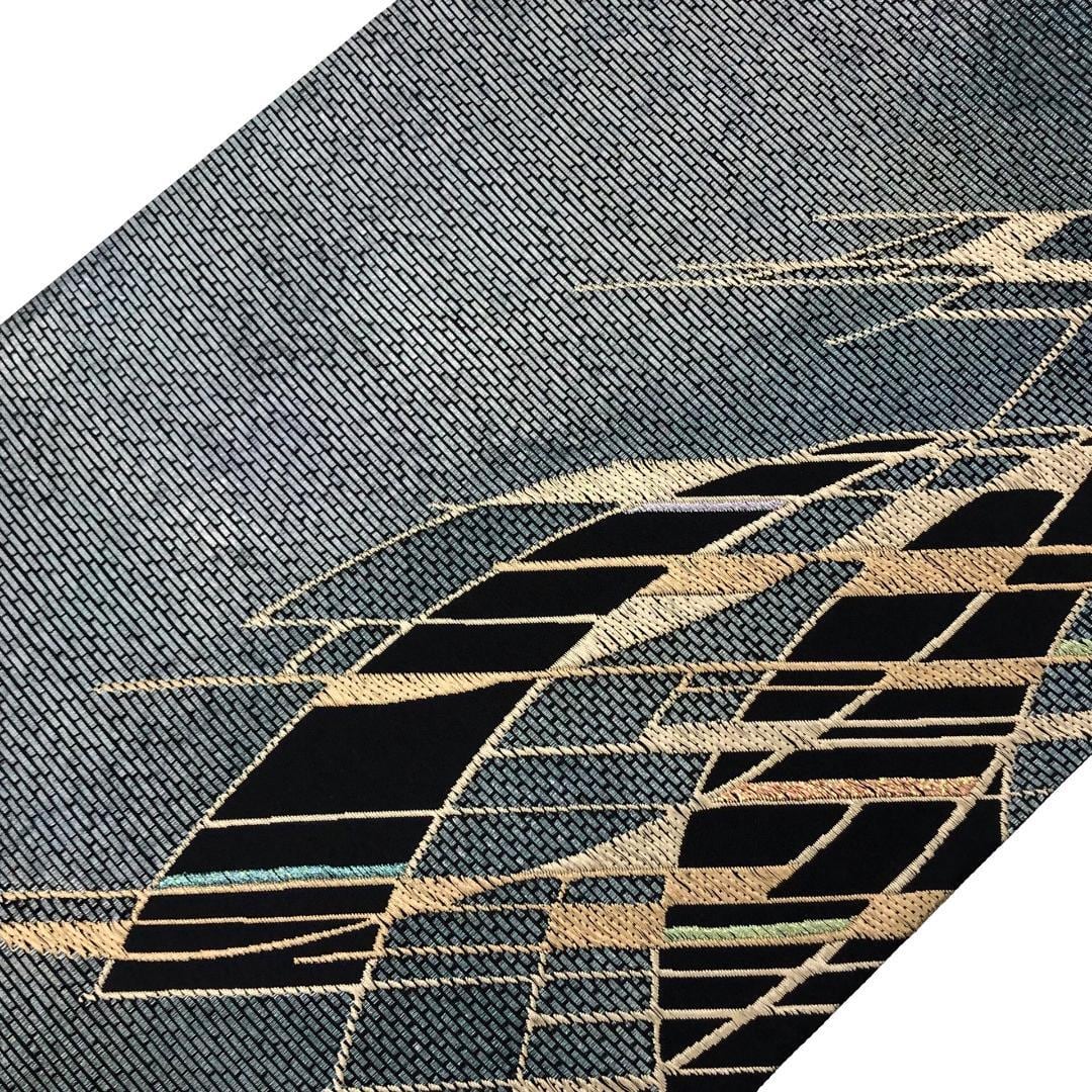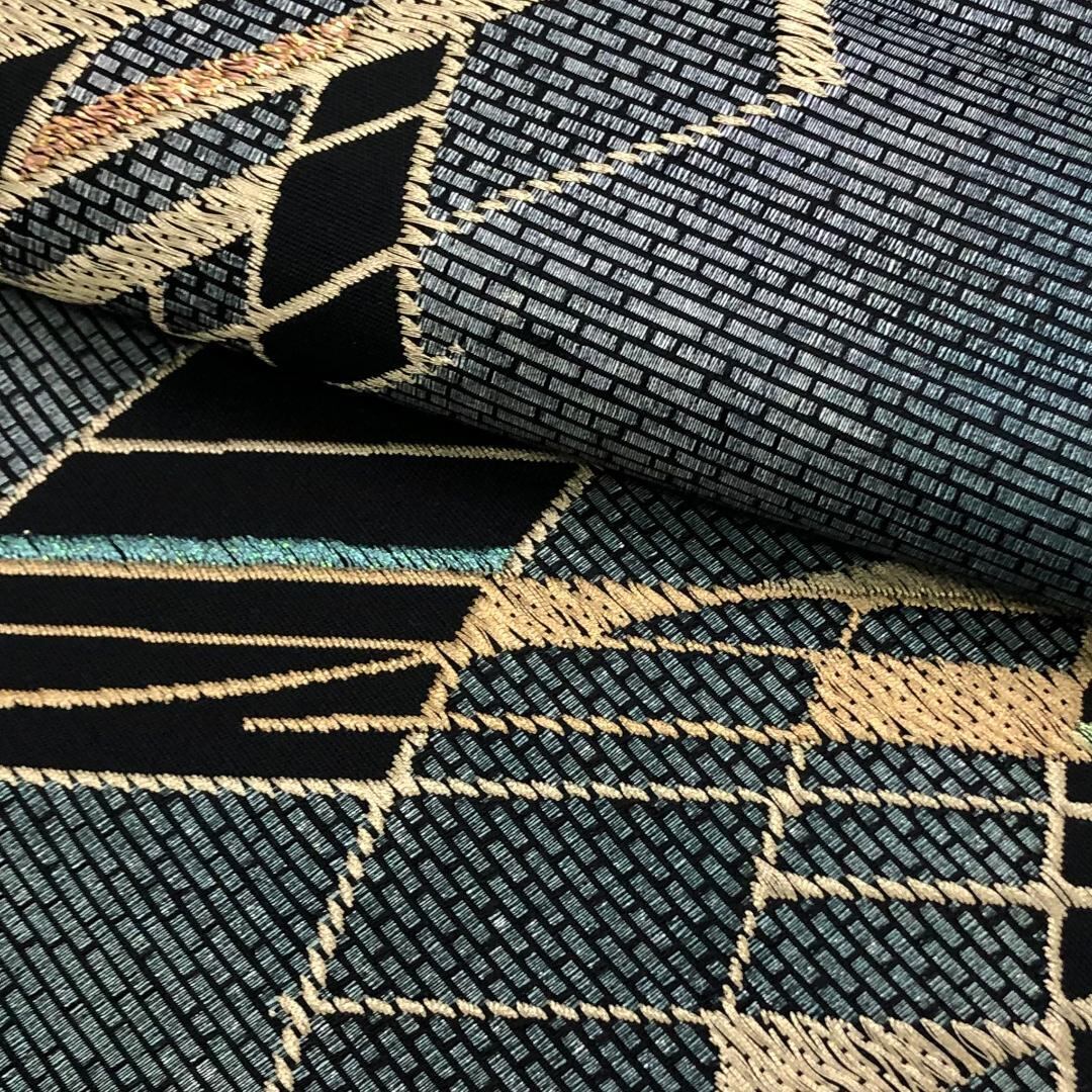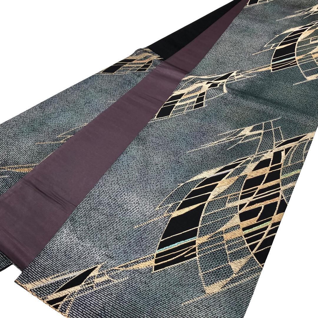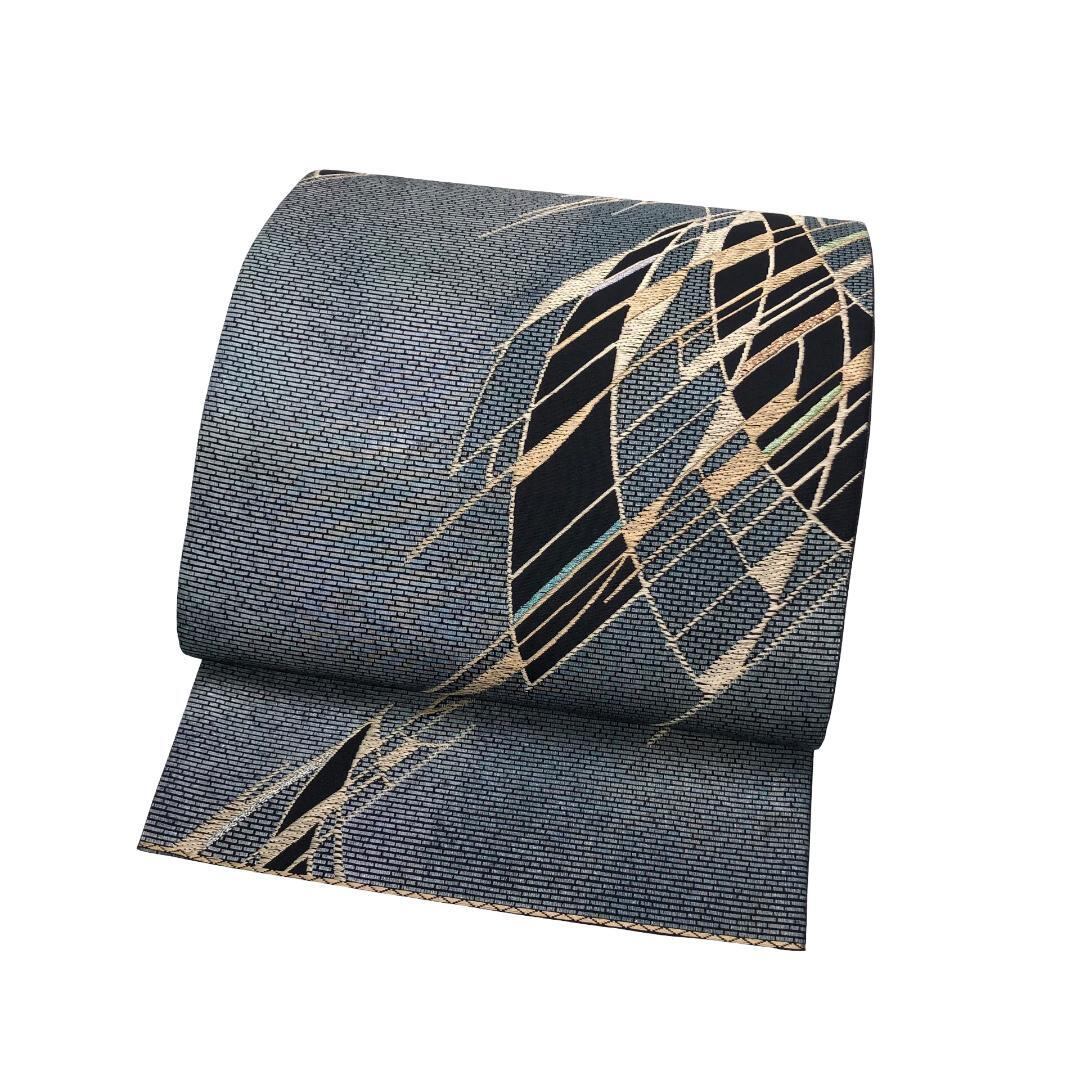 青鈍色のお色味にモダンな抽象模様がデザインされた雰囲気の良い素敵なお品でございます。