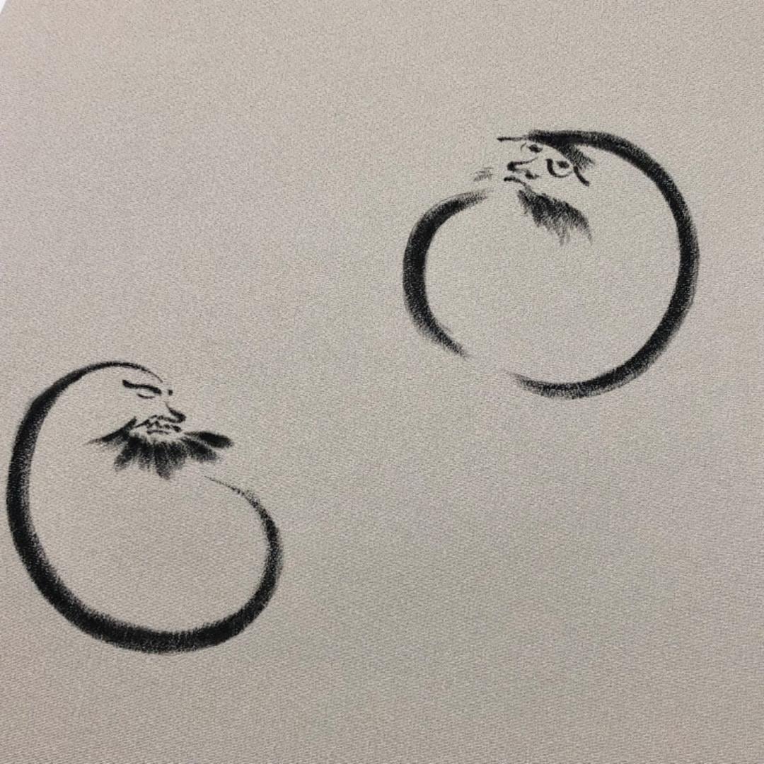 灰色のお色味に手描きで達磨がデザインされた雰囲気の良い素敵なお品でございます。