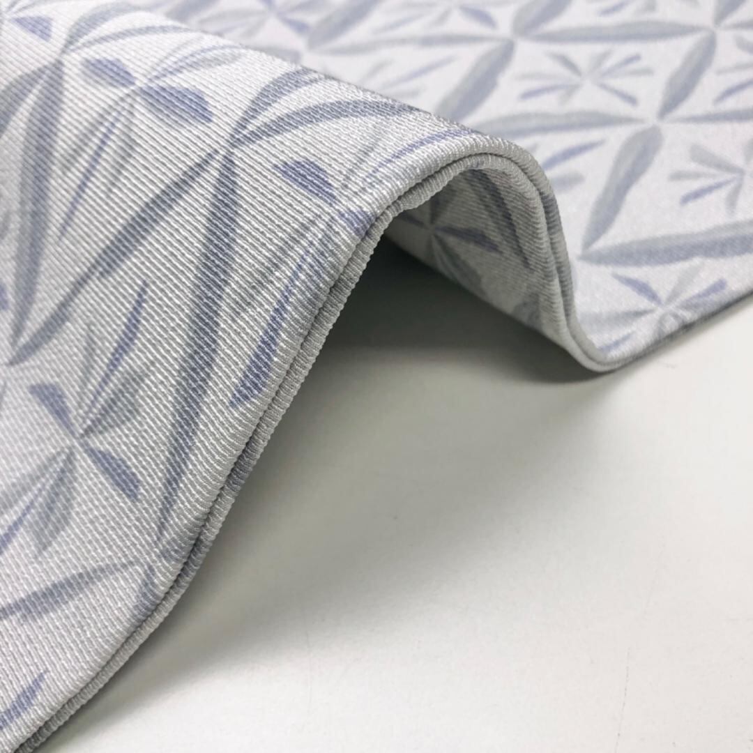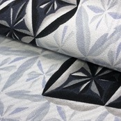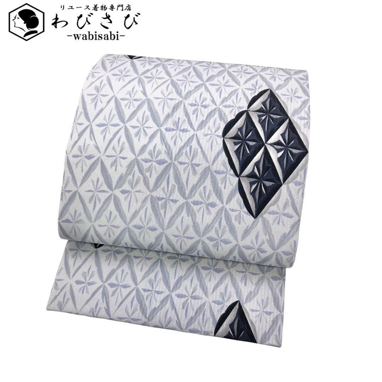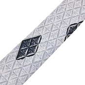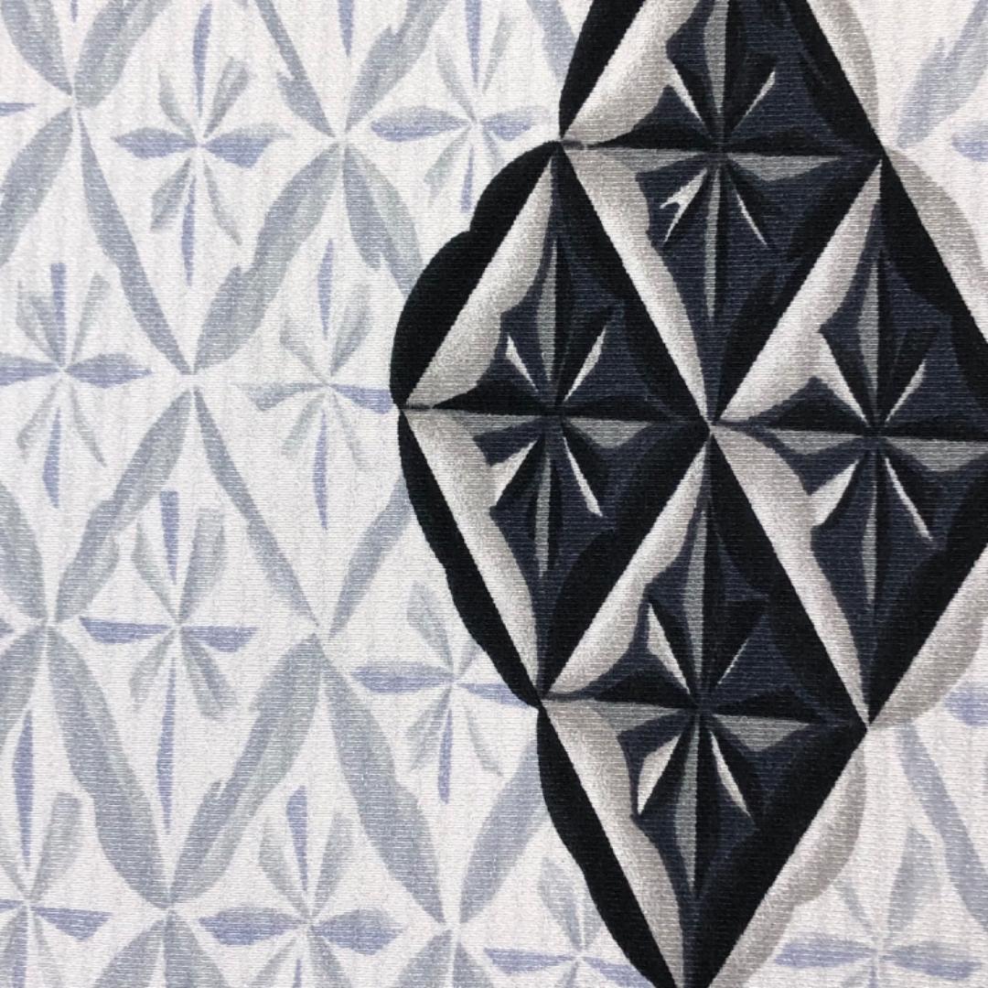 雪色のお色味の縮緬地にモノトーンの切子柄、菱形模様の雰囲気の良い柄裄がデザインされた素敵なお品でございます。