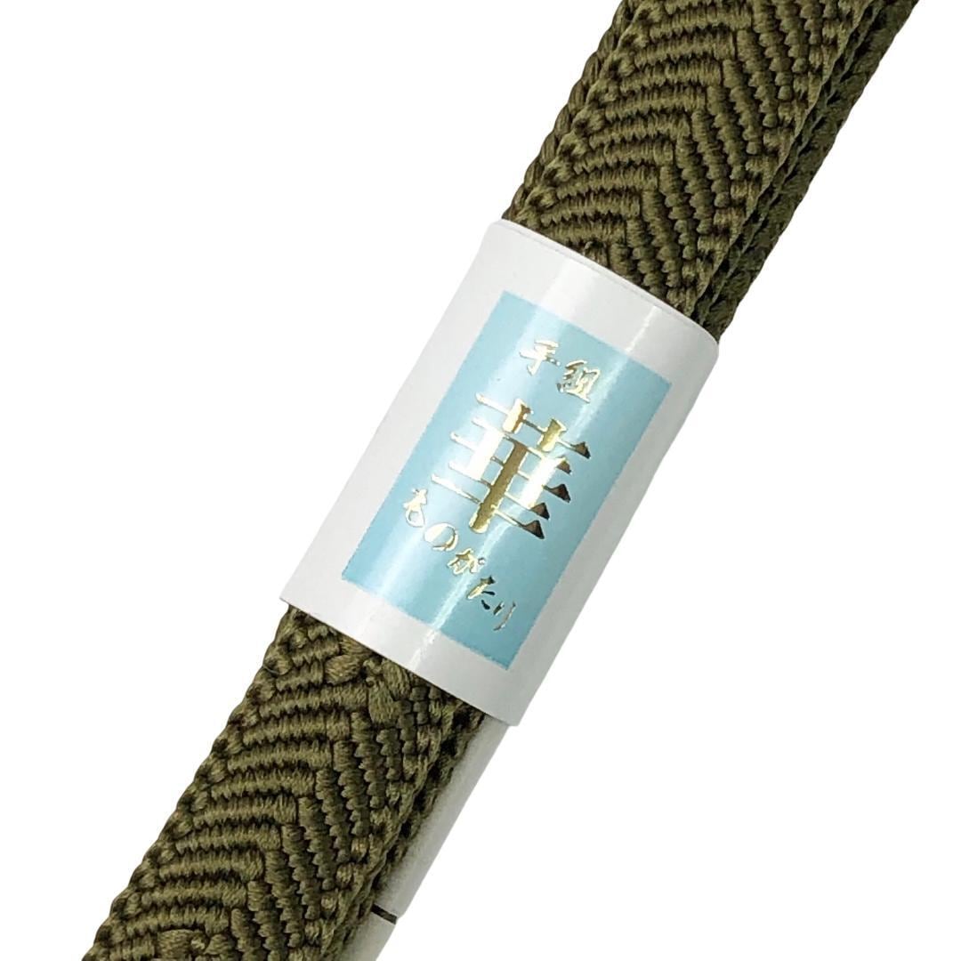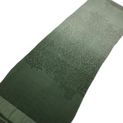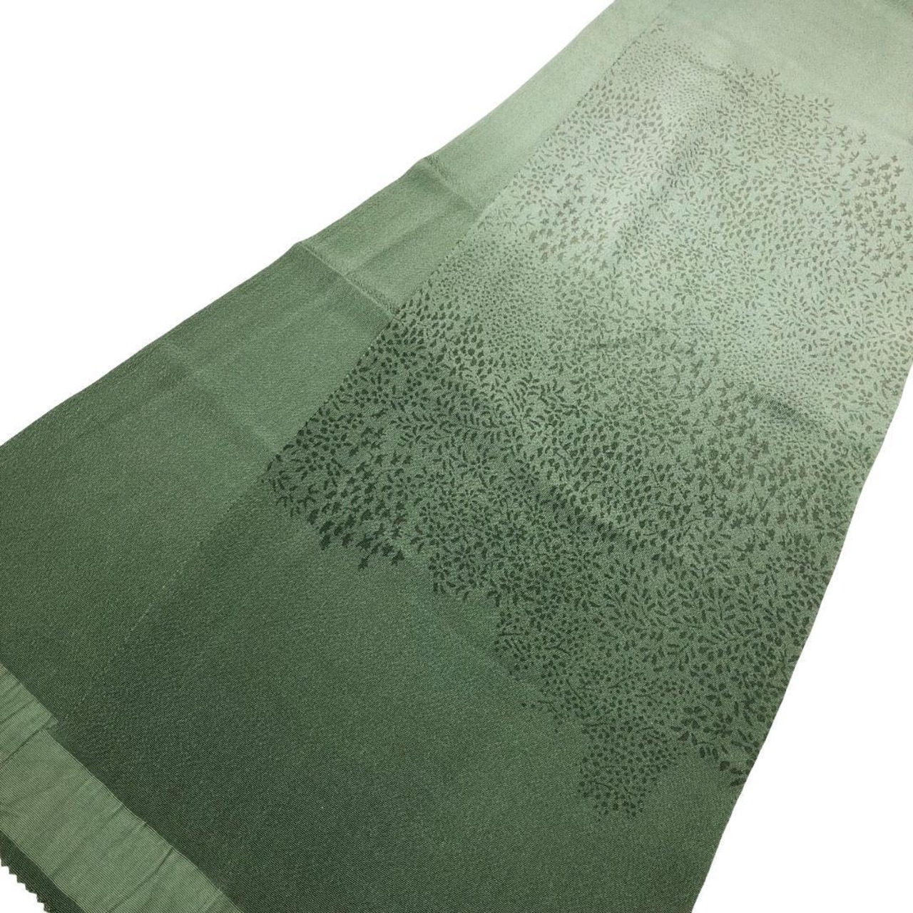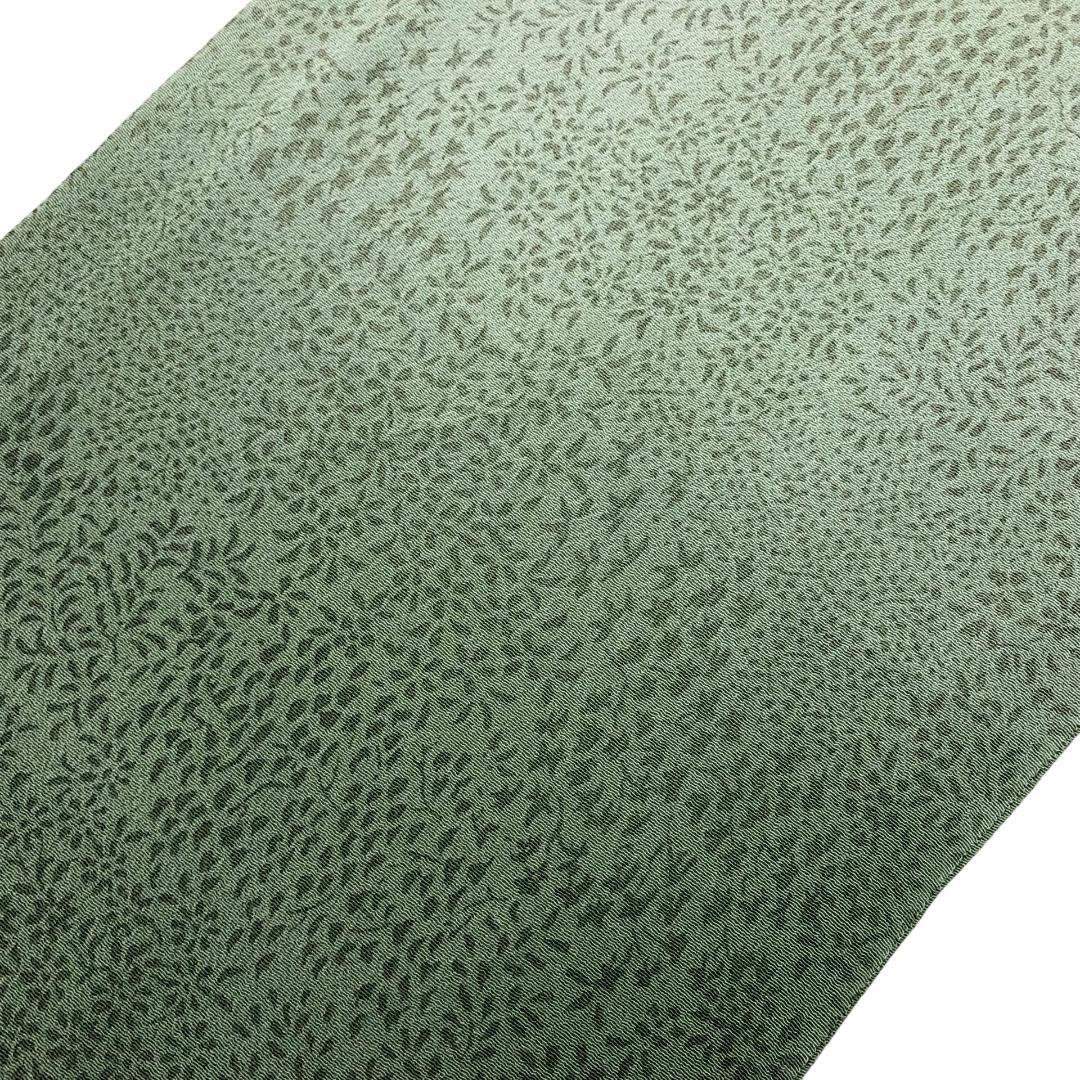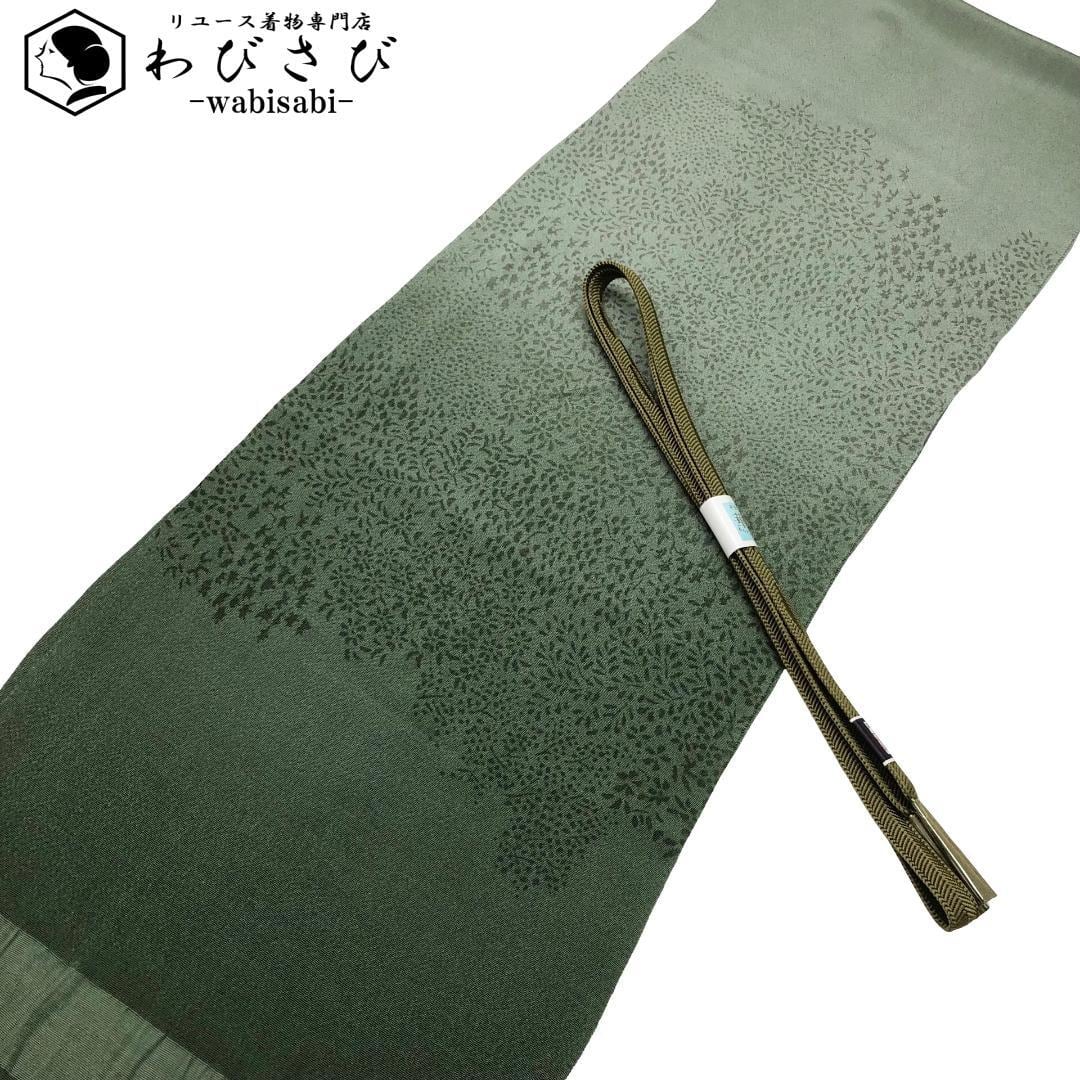 松葉鼠色ベースのグラデーションのお色味に枝葉模様がデザインされた帯揚げ、笹浪組の帯締めの素敵なお品でございます。