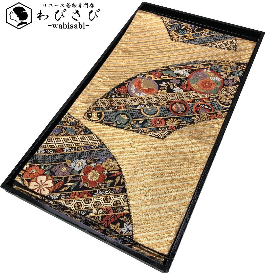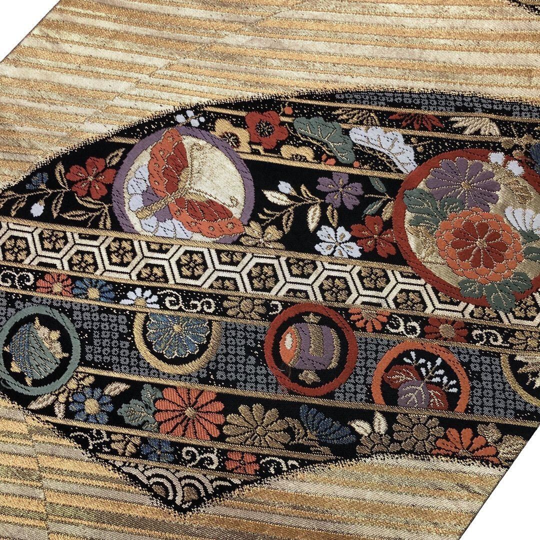 袋帯 地紙に花模様 蝶々 花亀甲 金糸 振袖 O-5843 着物 きもの kimono 和服 和装 中古 リサイクル着物 【送料無料】