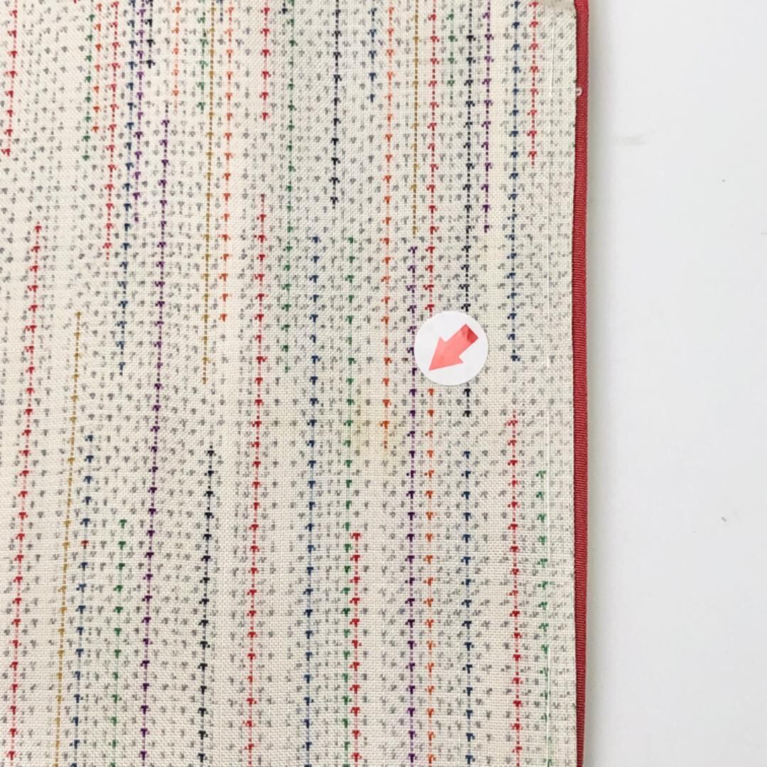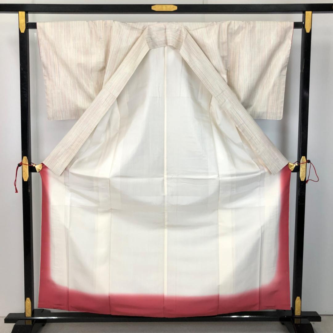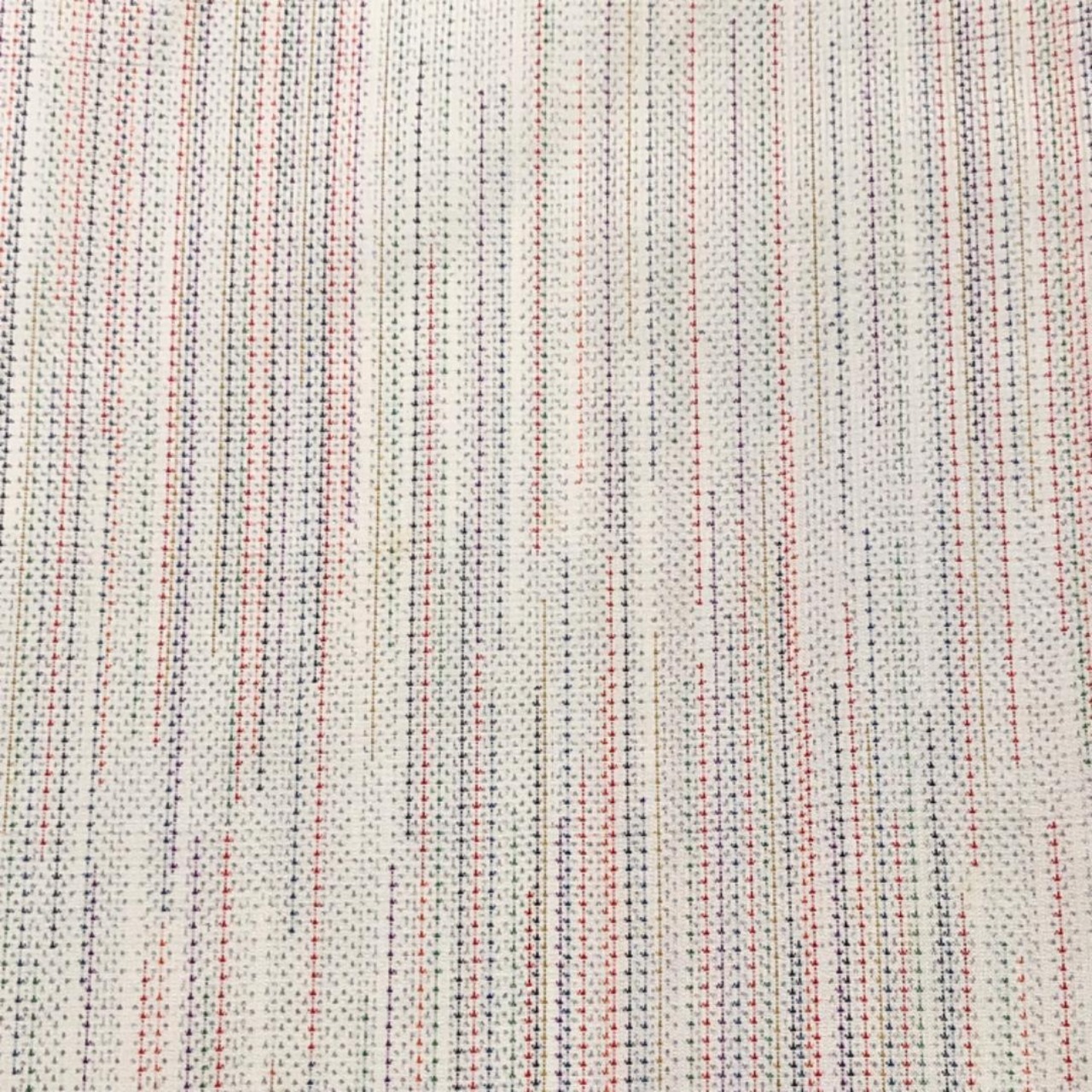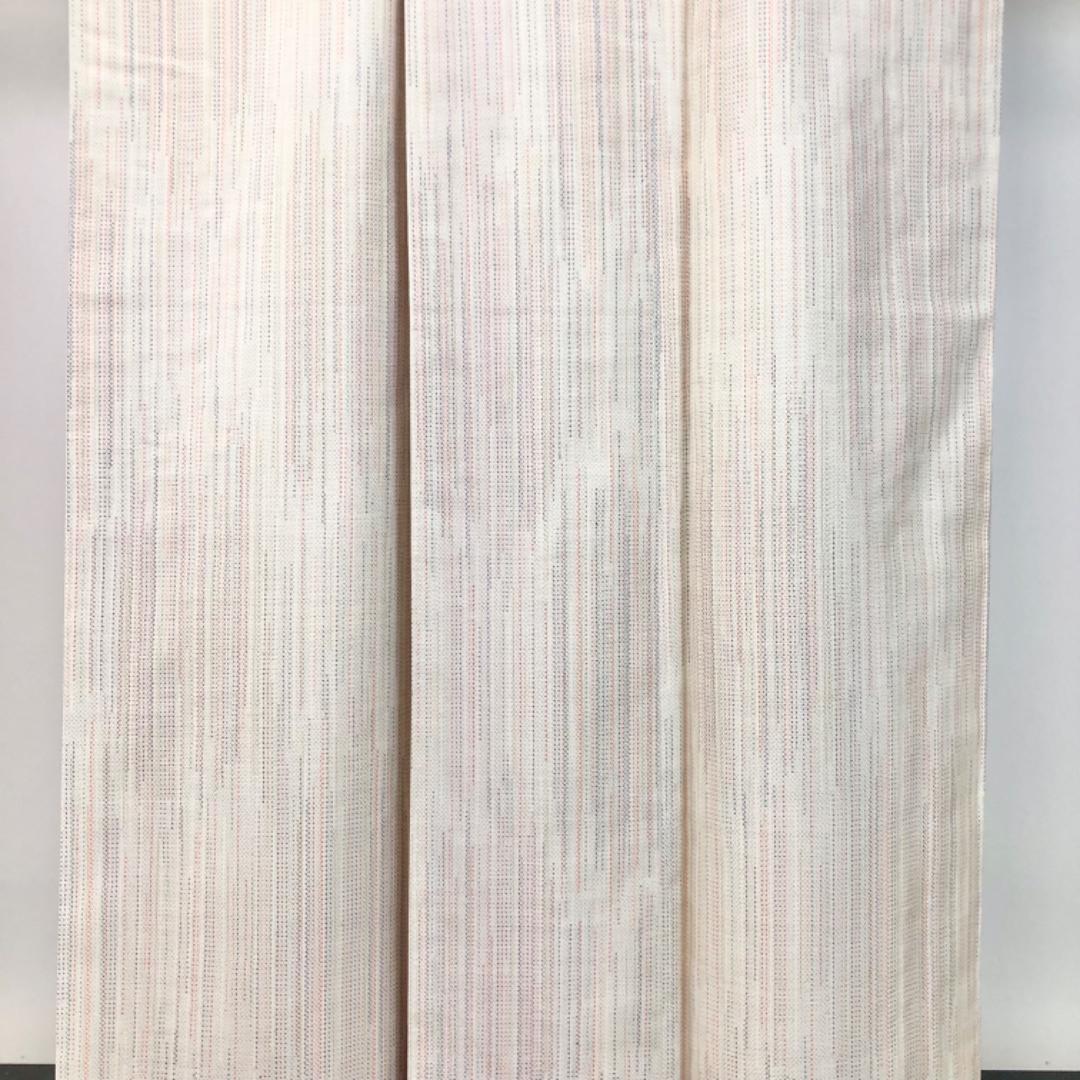 乳白色の上品なお色味に多彩なお色の絣でデザインされた柔らかい雰囲気の縦柄模様が素敵なお品でございます。