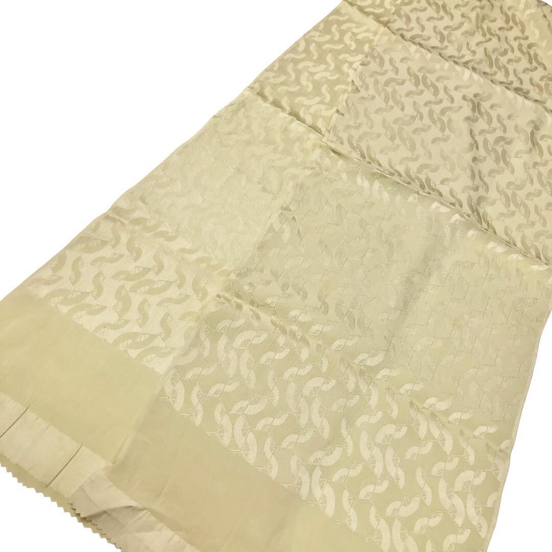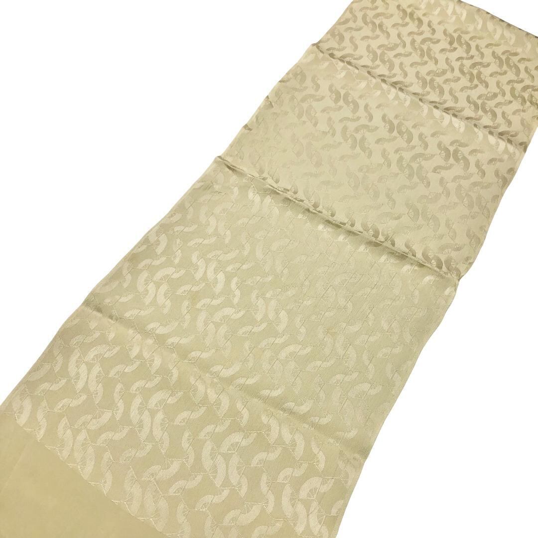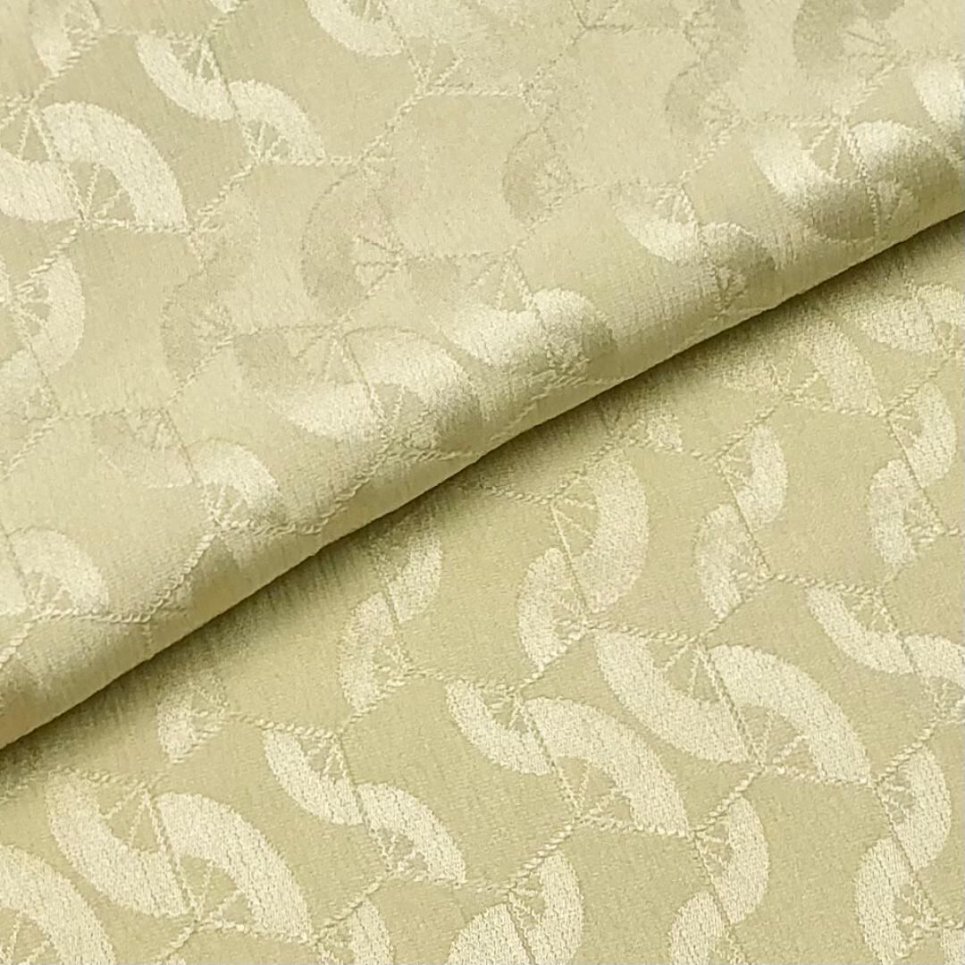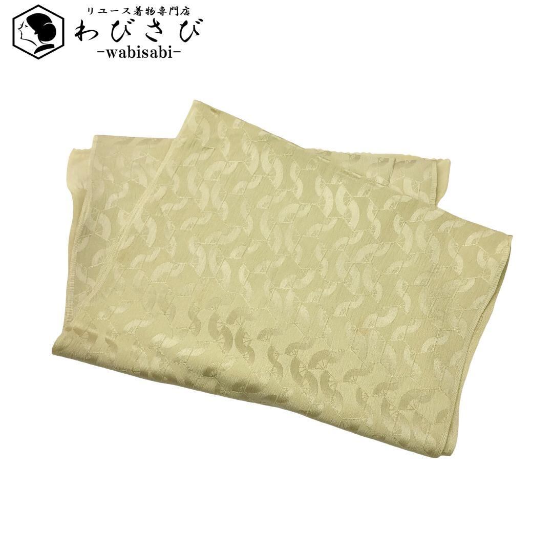 硫黄色のお色味に繋ぎ亀甲、扇子などの柄裄がデザインされた素敵なお品でございます。