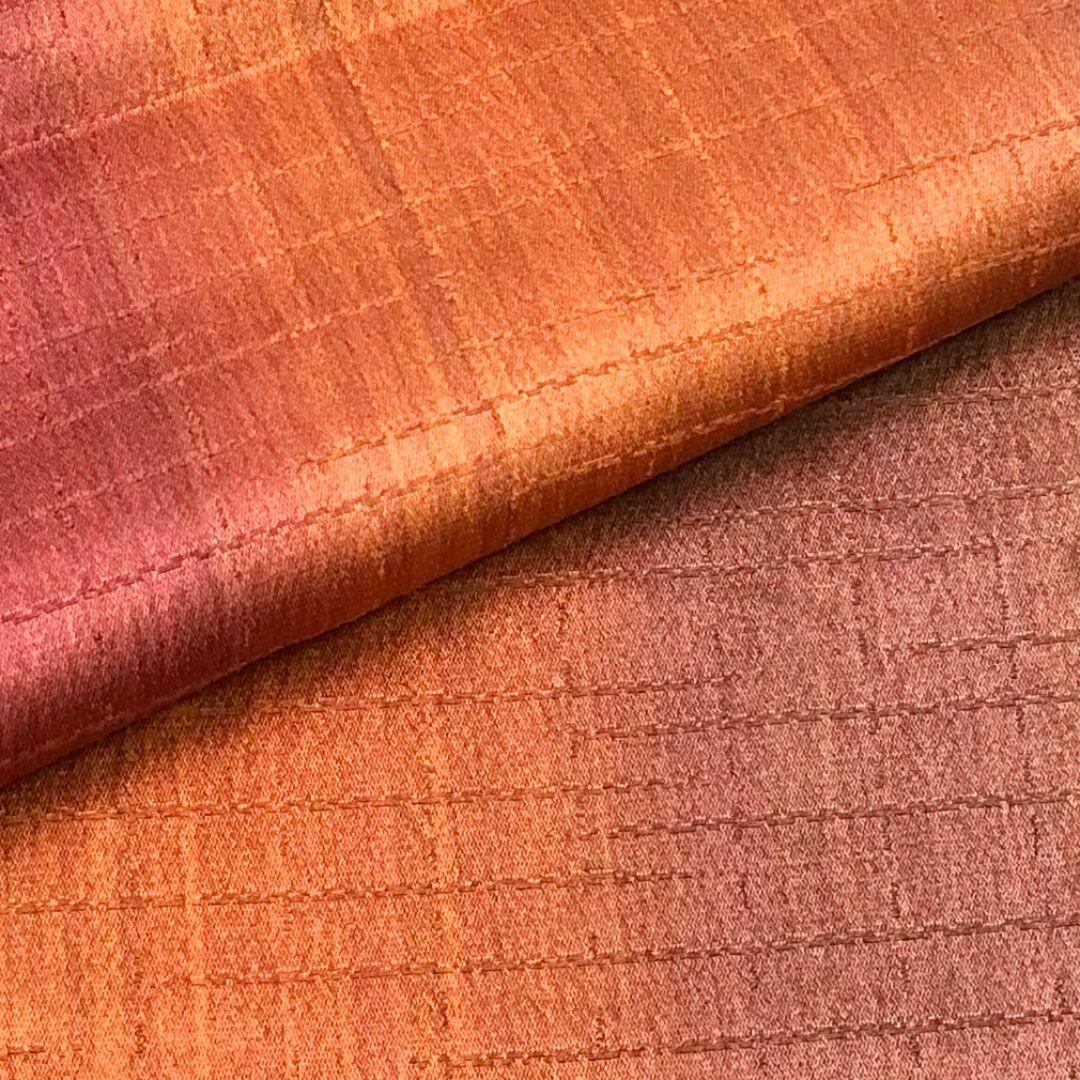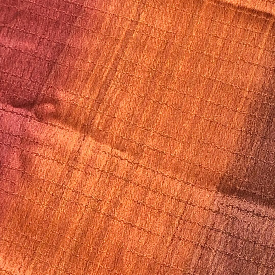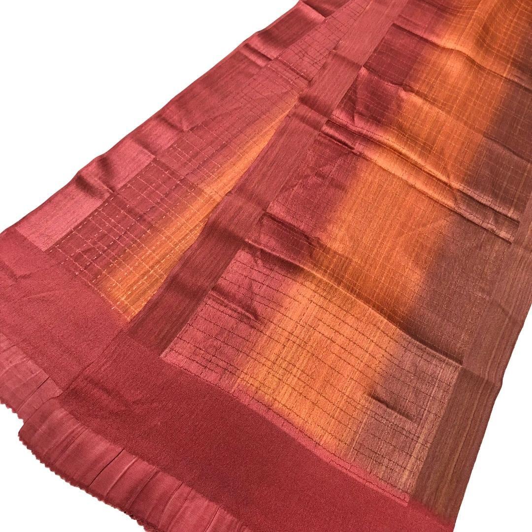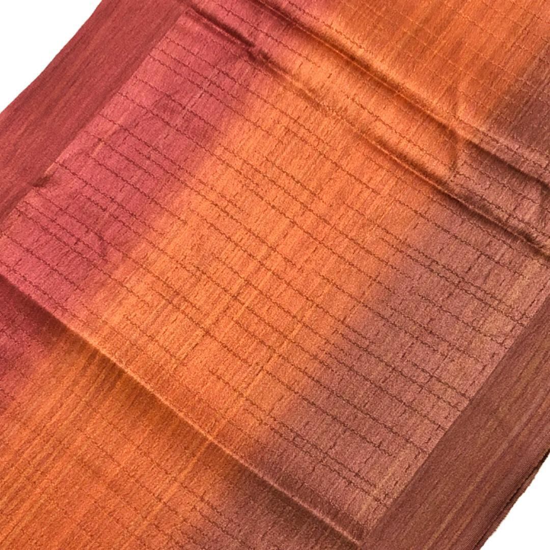猩々茶色ベースのお色味に縦縞模様の柄裄がデザインされた素敵なお品でございます。