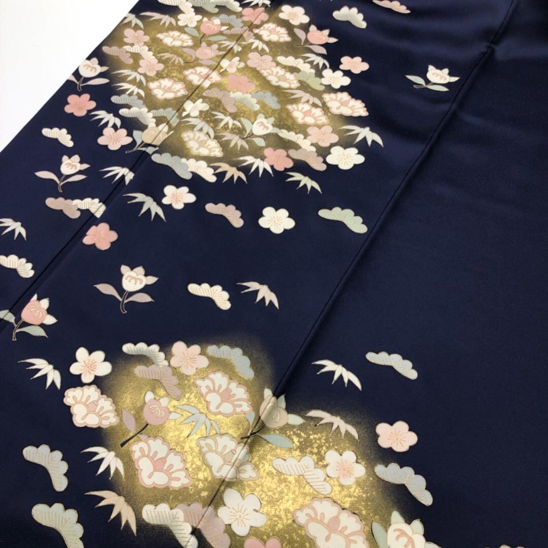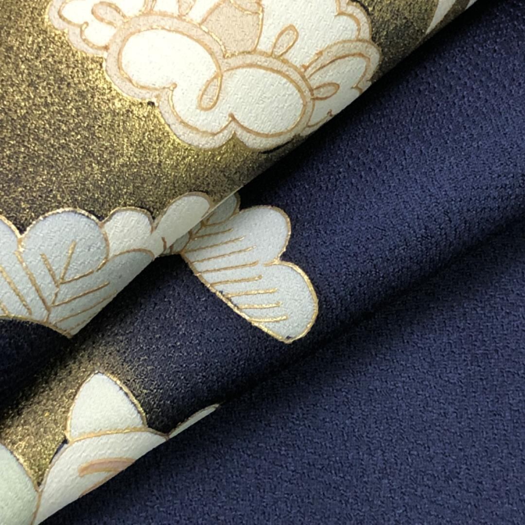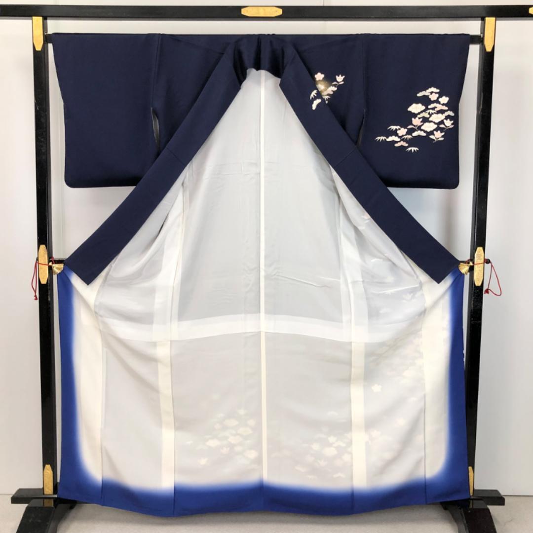 訪問着 椿に橘 松 金彩 濃紺色 K-5615 着物 きもの kimono 和服 和装 中古 リサイクル着物 【送料無料】