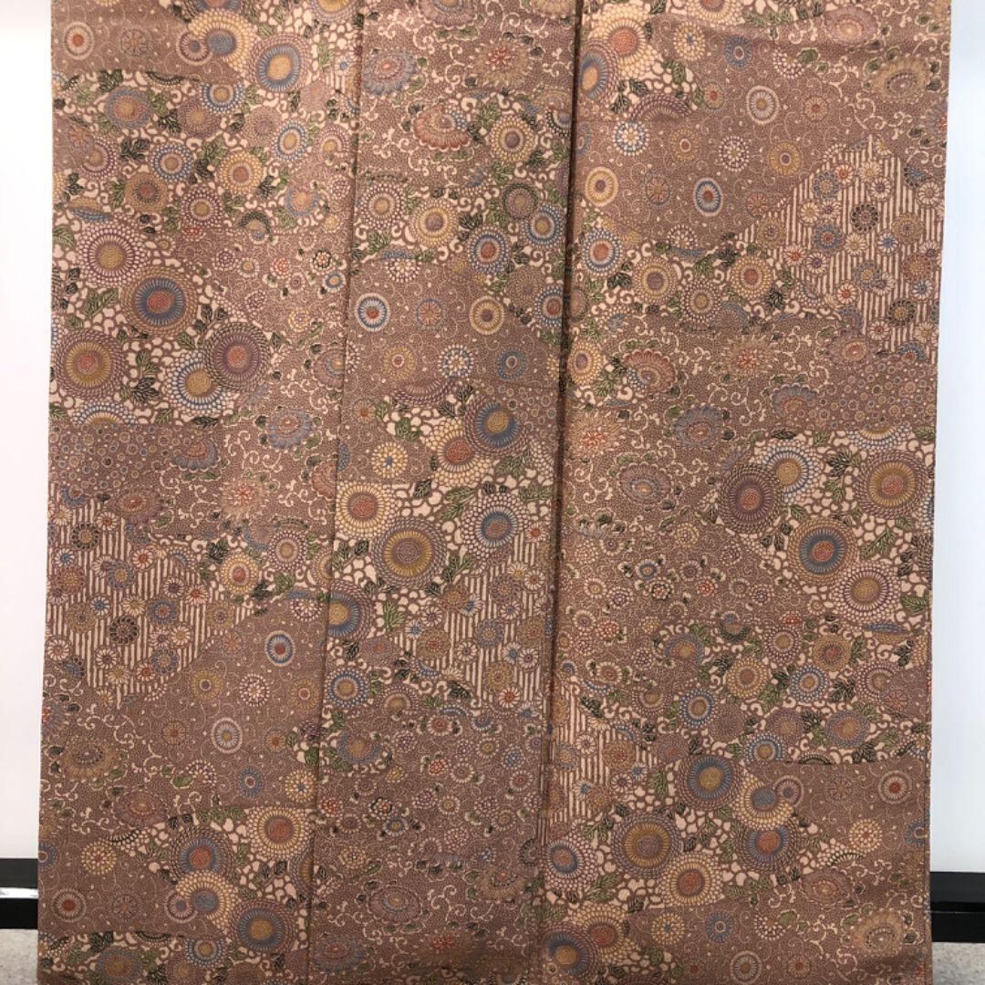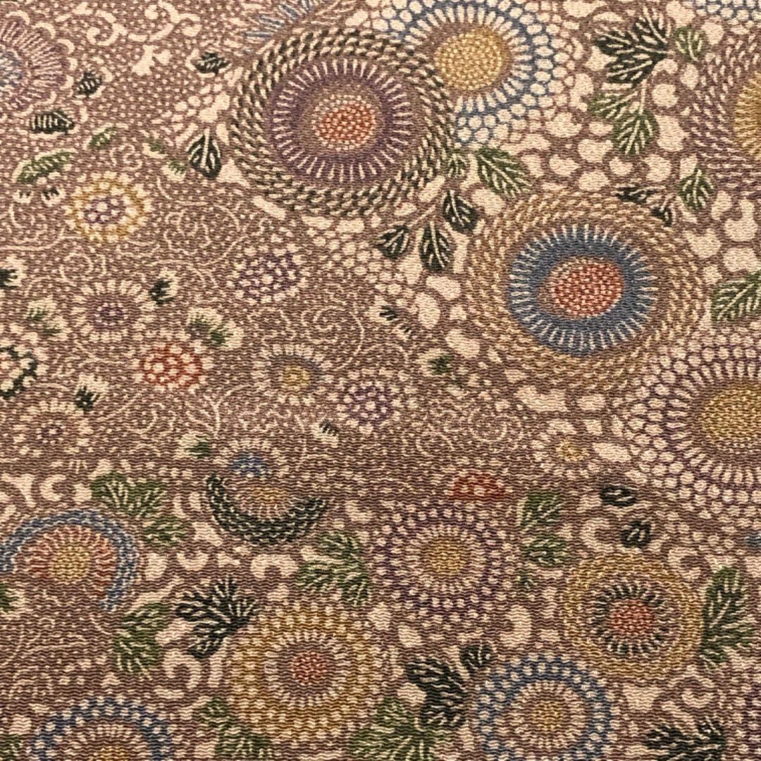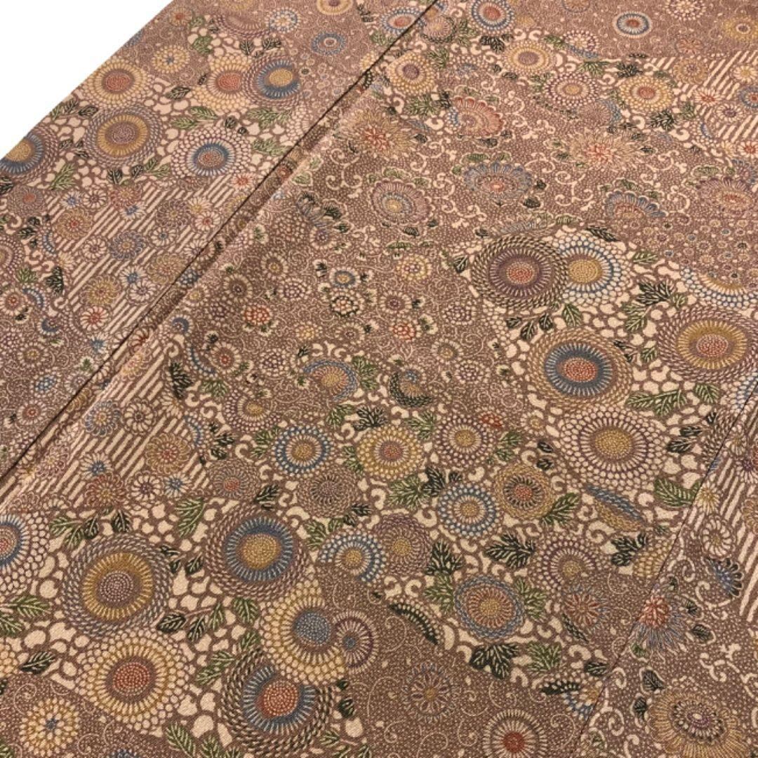 嵯峨鼠色の落ち着きのあるお色味に華模様の柄裄がデザインされた素敵なお品でございます。