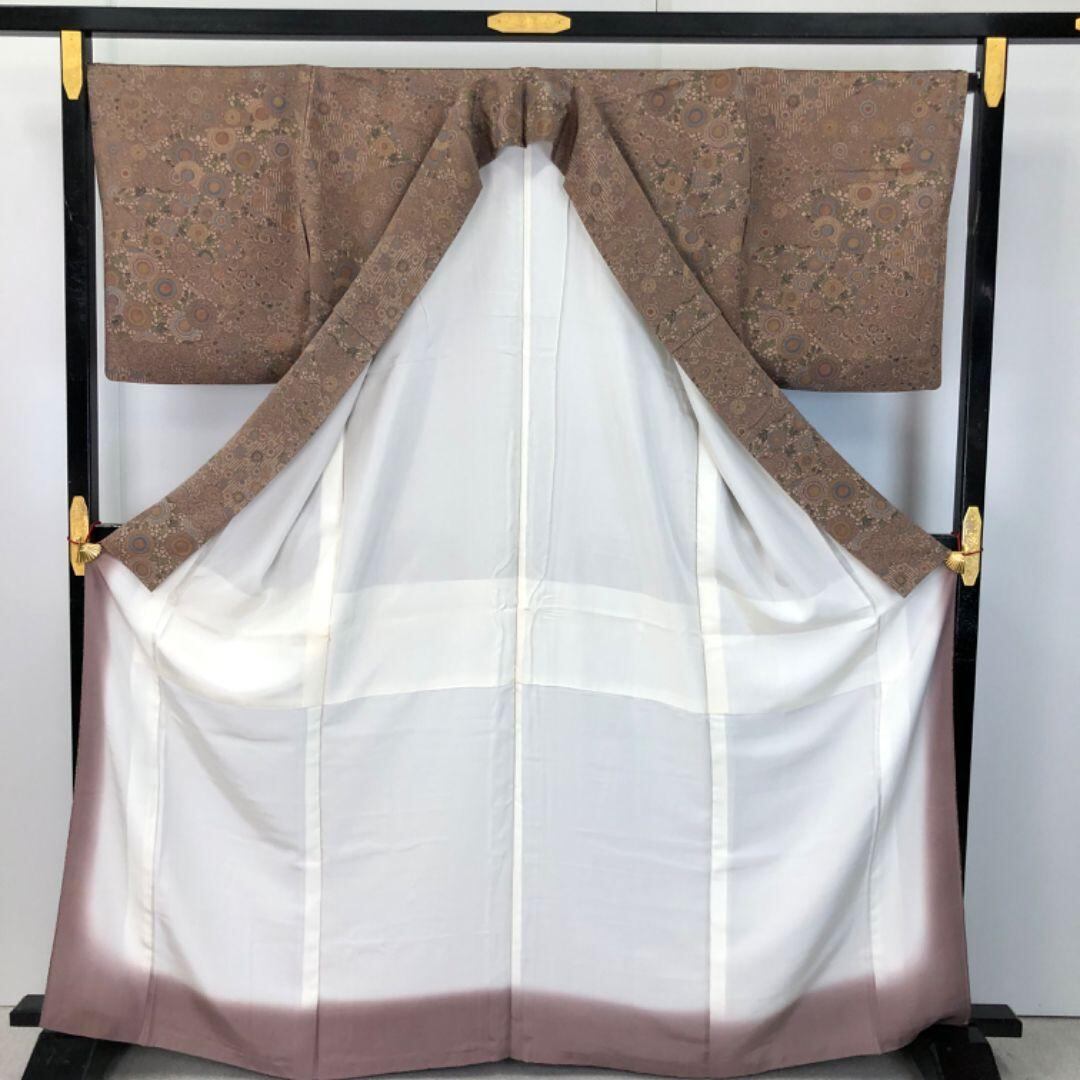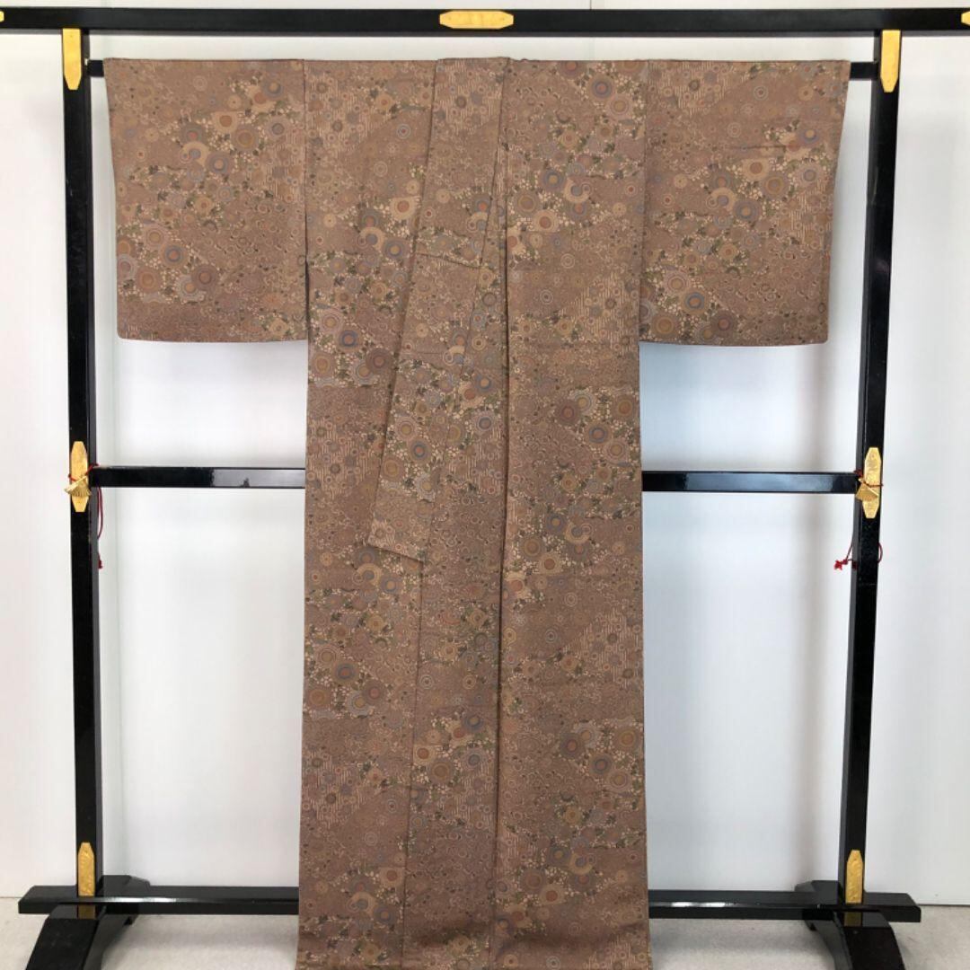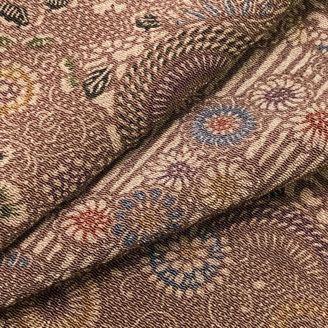 嵯峨鼠色の落ち着きのあるお色味に華模様の柄裄がデザインされた素敵なお品でございます。