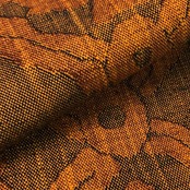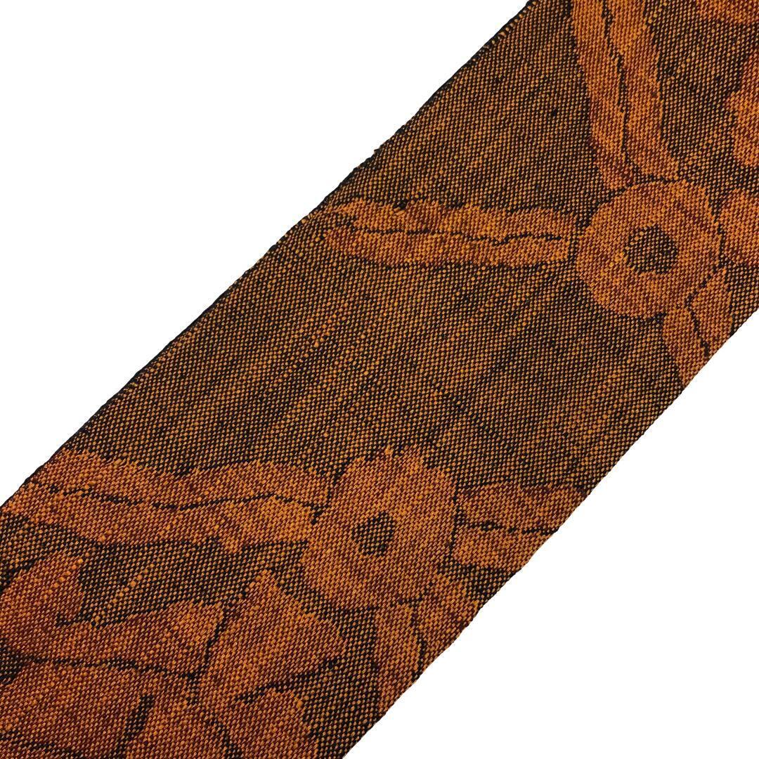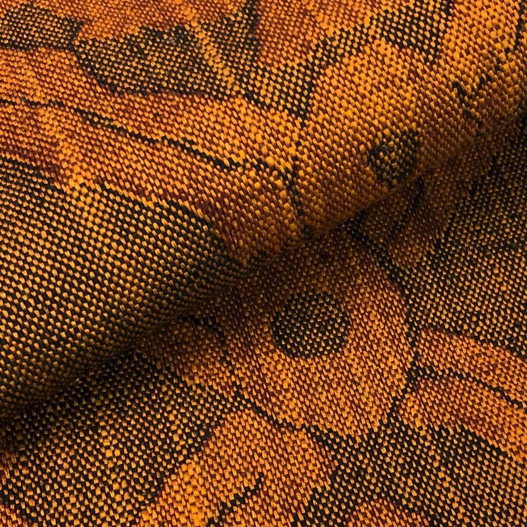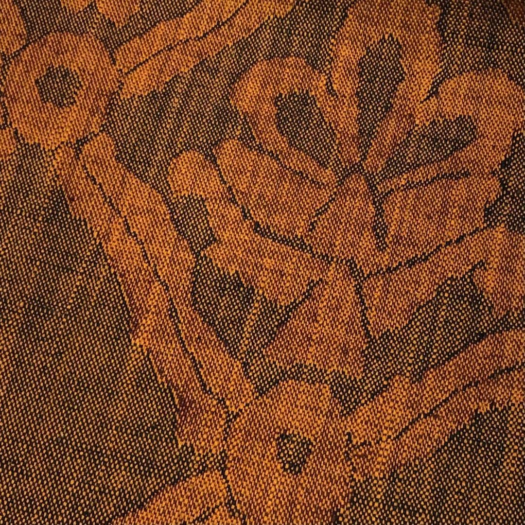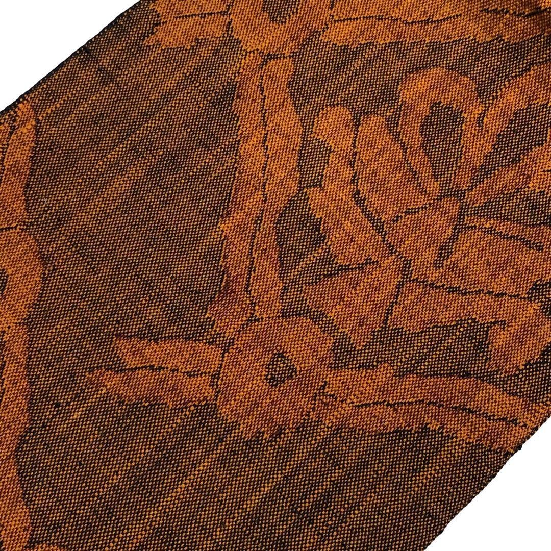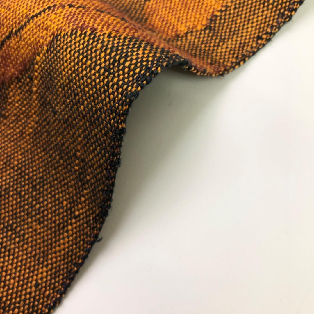 黄櫨染色ベースのお色味に抽象模様がデザインされた真綿紬の素敵なお品でございます。