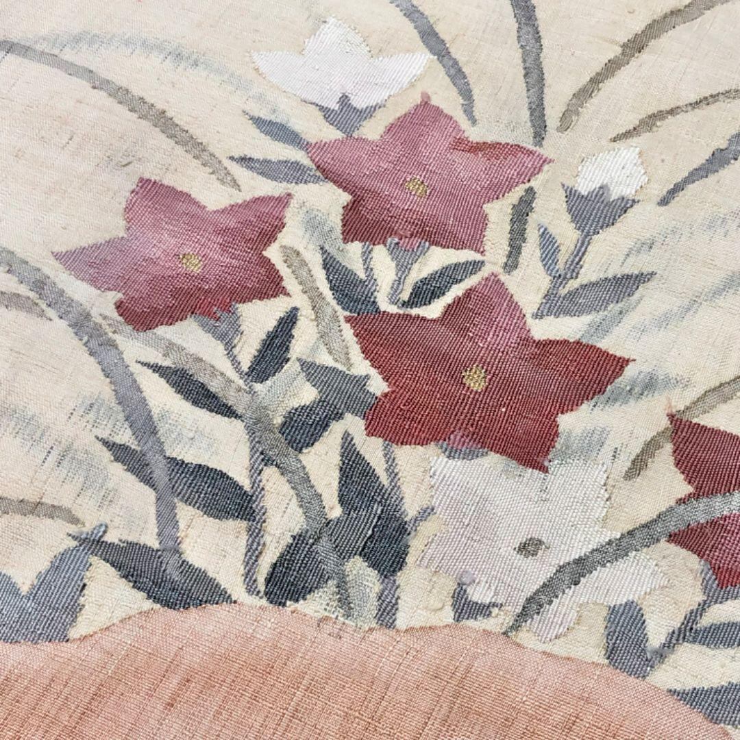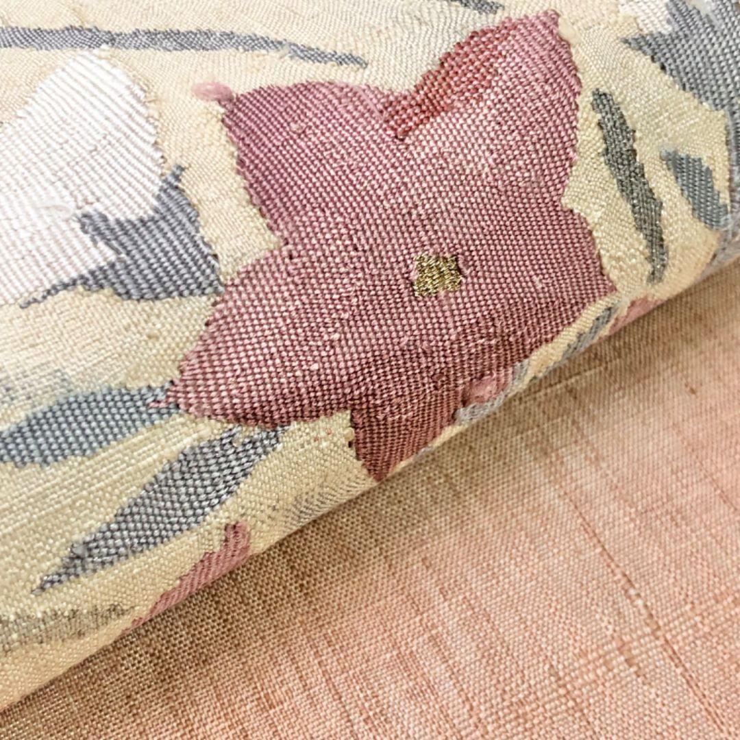 袋帯 紬 花模様 薄赤色 O-5804 着物 きもの kimono 和服 和装 中古 リサイクル着物 【送料無料】