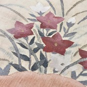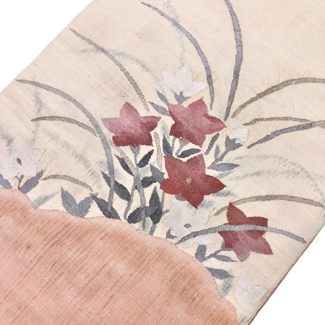 薄赤色ベースのお色味に花模様がデザインされた素敵なお品でございます。