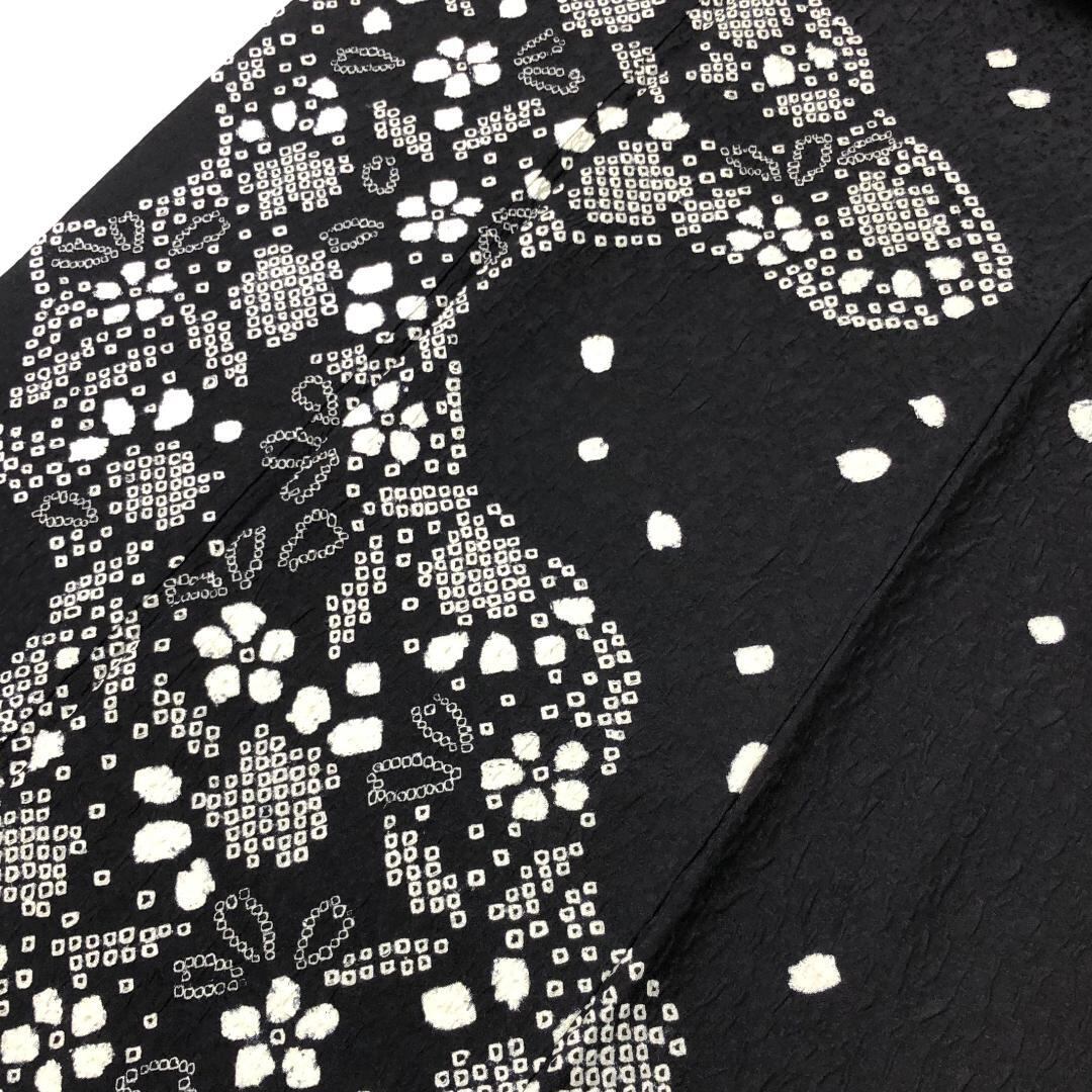 モノトーンのお色味に絞り柄、雰囲気の良い花柄模様がデザインされた素敵なお品でございます。