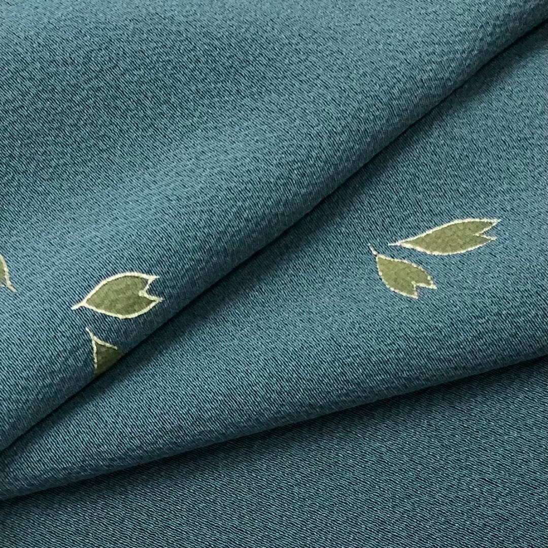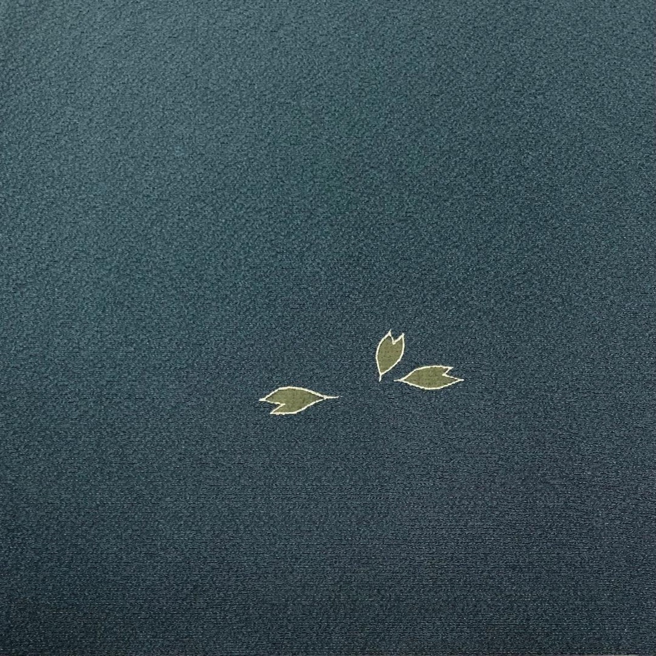 錆納戸色のお色味に上品な花びら模様がデザインされた雰囲気の良い素敵なお品でございます。