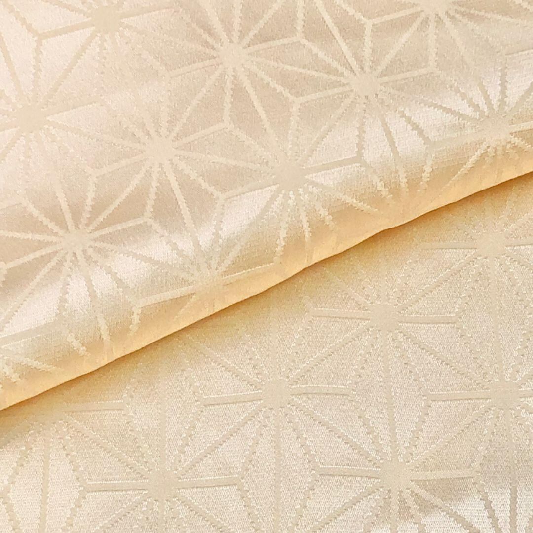 麹色のお色味に麻の葉の柄裄がデザインされた素敵なお品でございます。