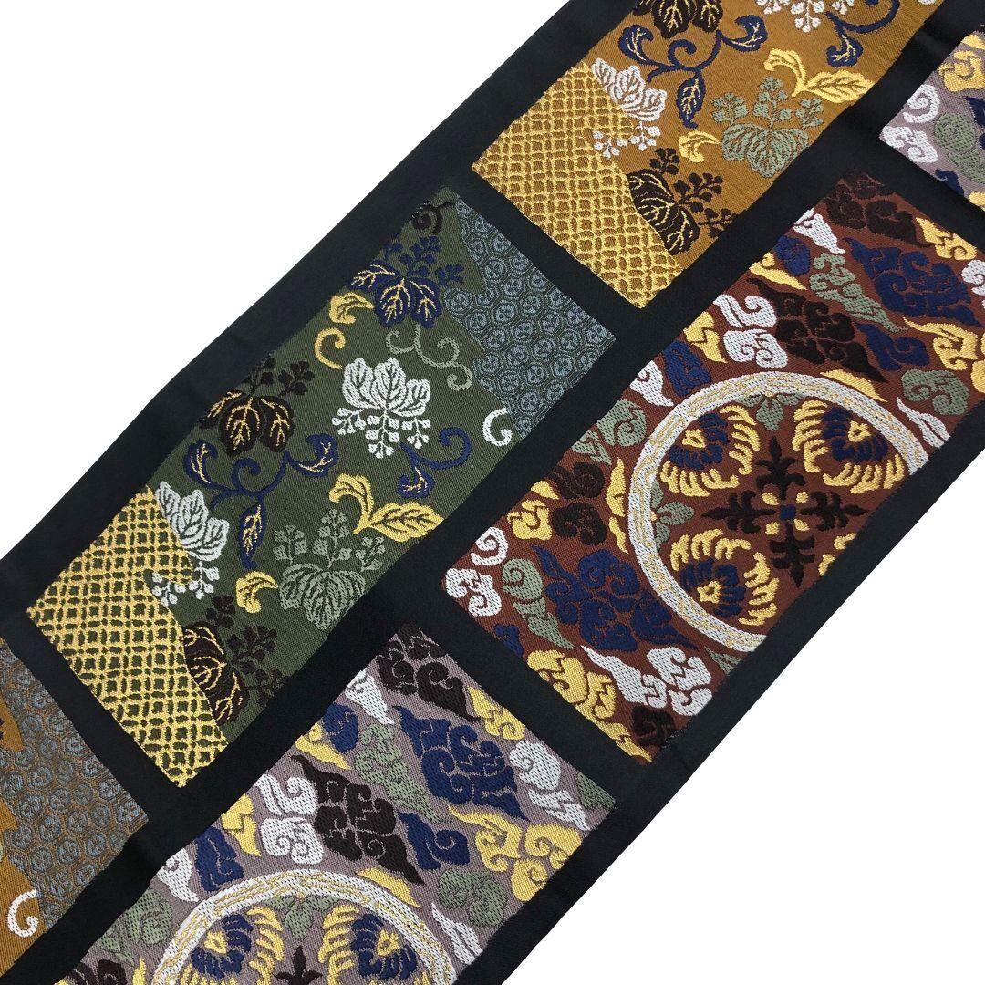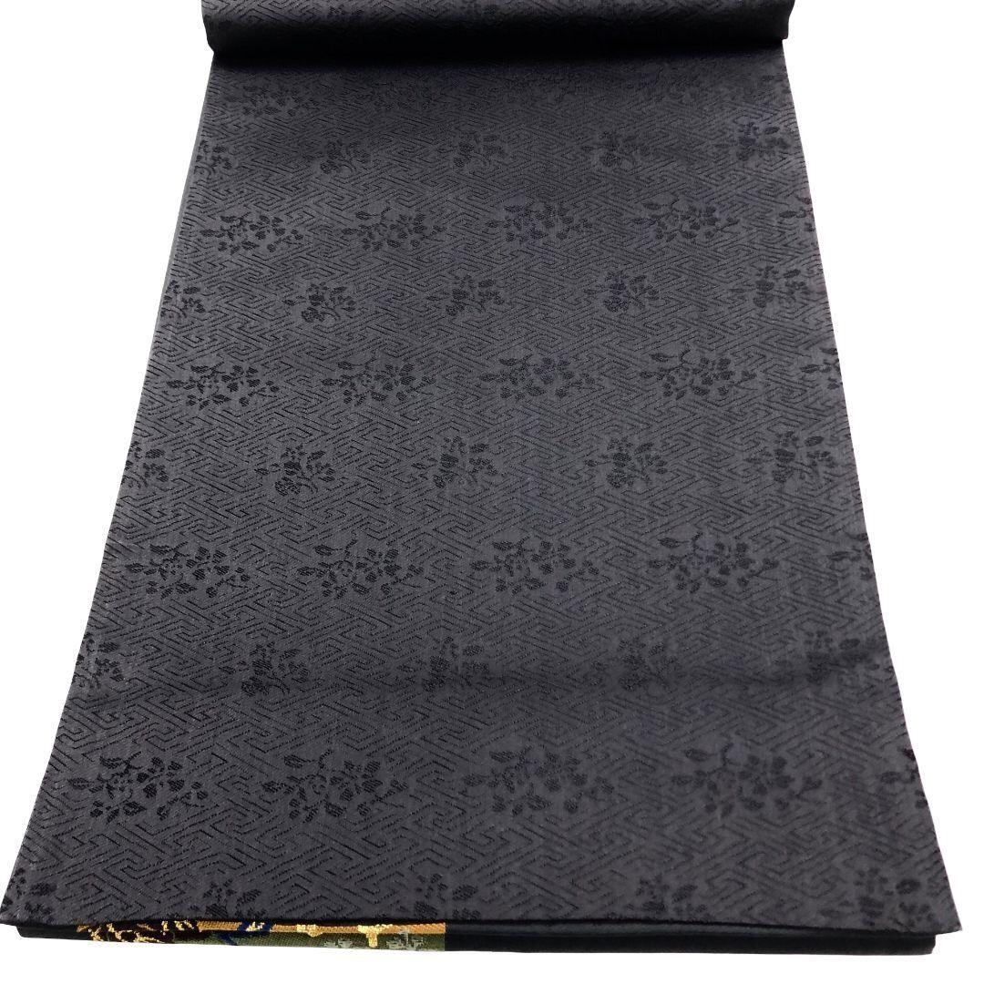 袋帯 四角に花唐草模様 瑞雲 金糸 石板色 O-5765 着物 きもの kimono 和服 和装 中古 リサイクル着物 【送料無料】
