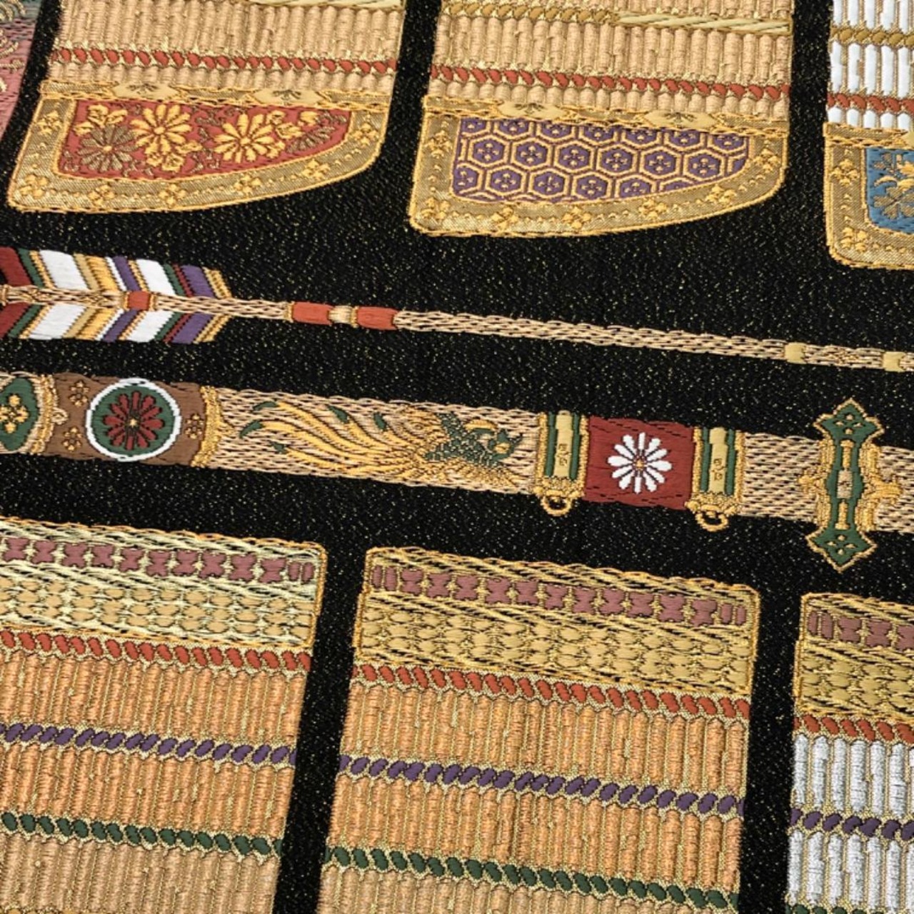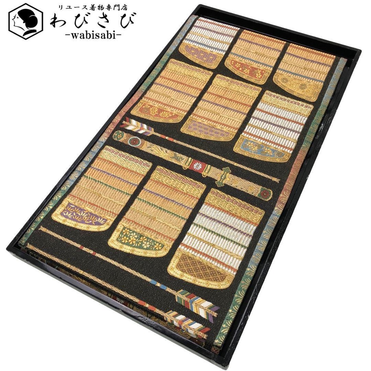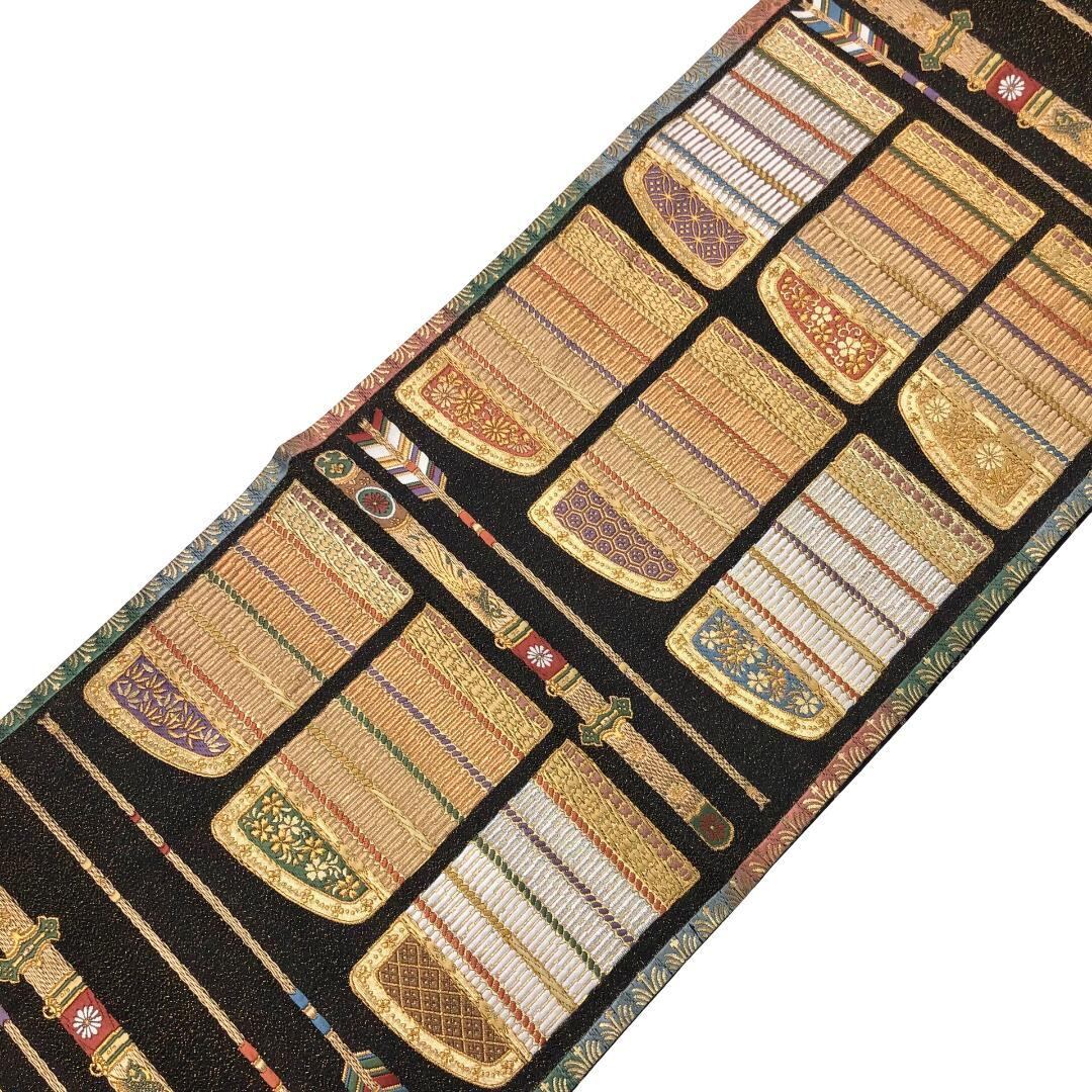 鎧柄、鎧威、矢羽根などの金銀氏が使われた煌びやかな柄裄がデザインされた雰囲気の良い素敵なお品でございます。