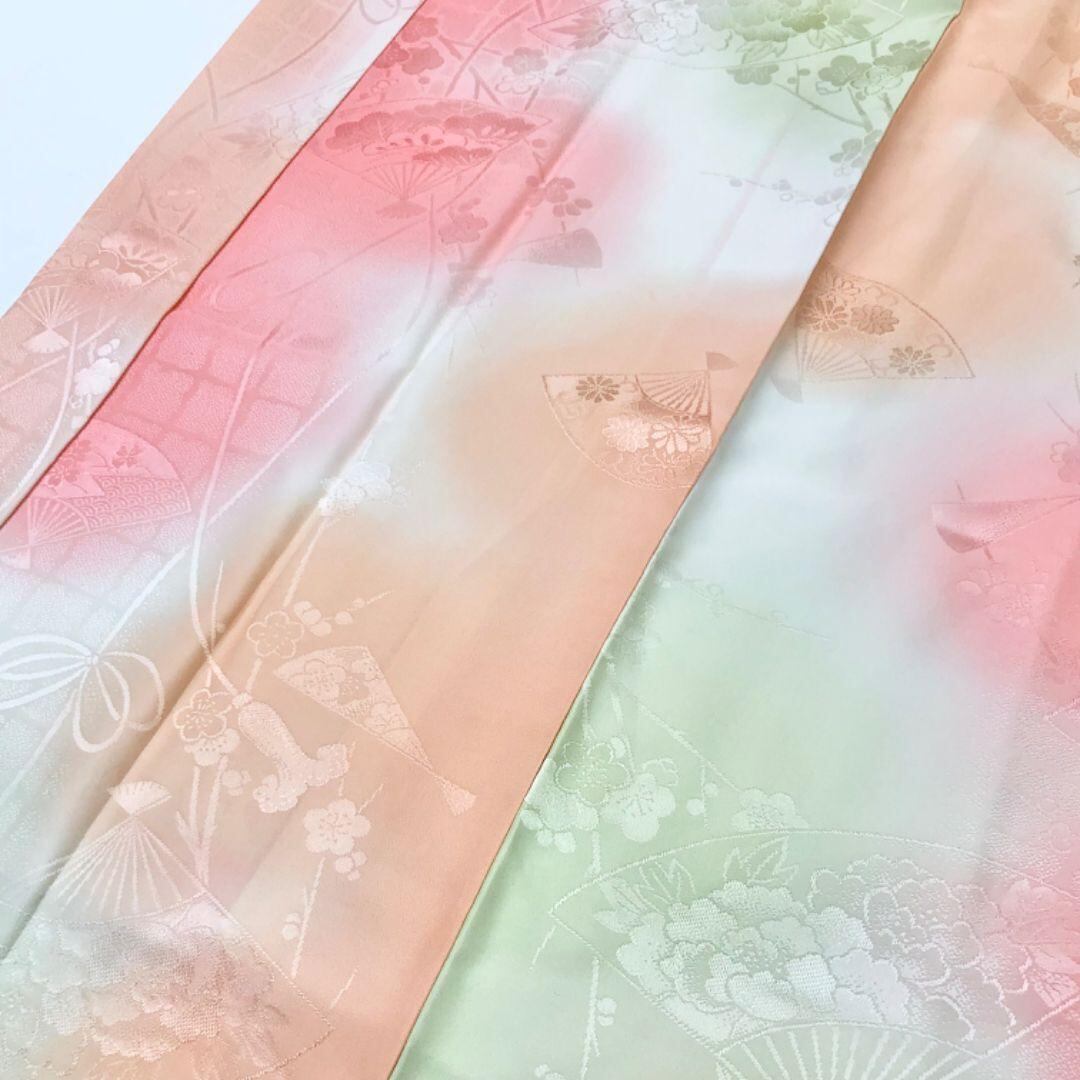 長襦袢 振袖 暈し 扇子に花模様 組紐 半衿付 J-370 着物 きもの kimono 和服 和装 中古 リサイクル着物 【送料無料】
