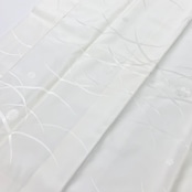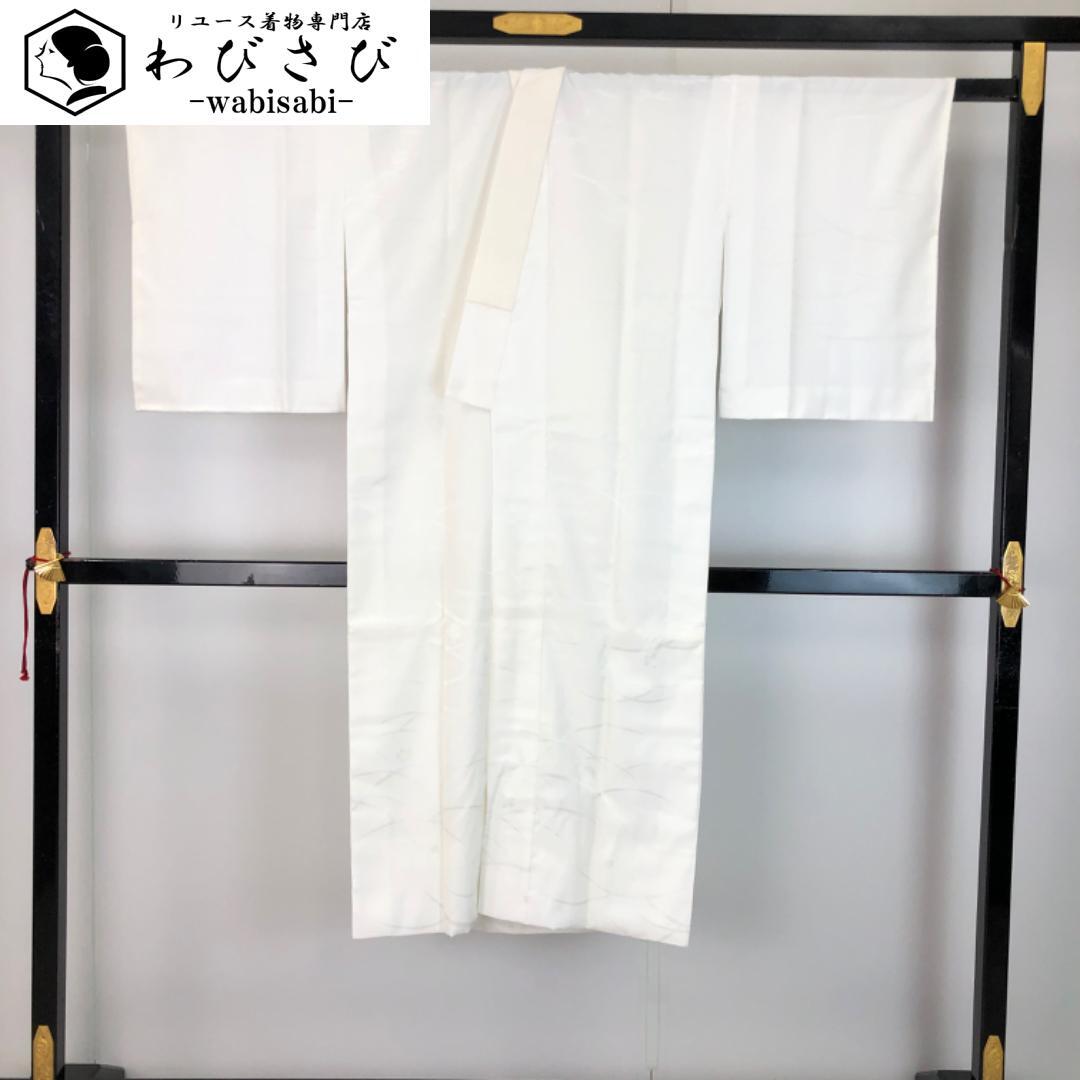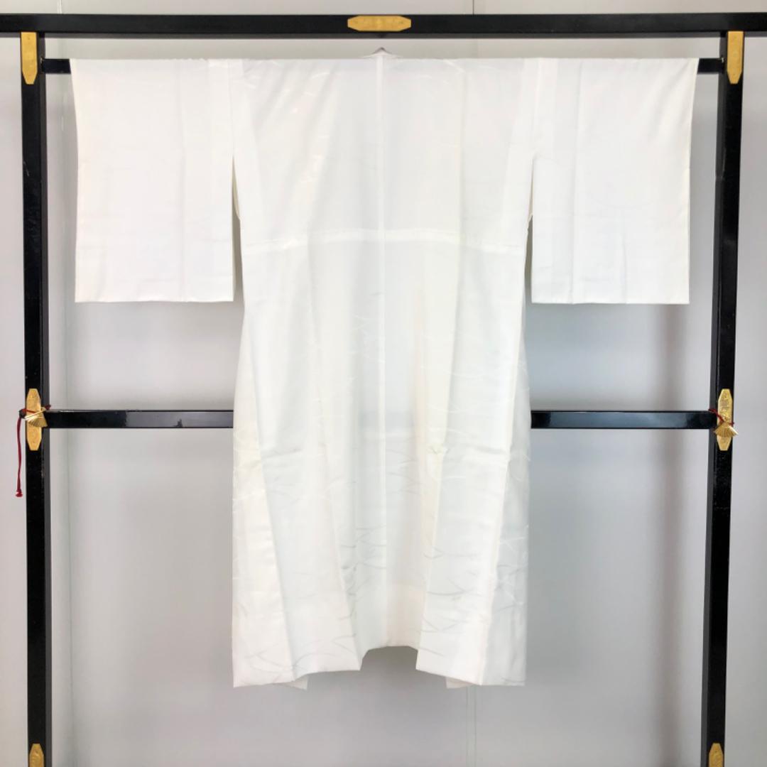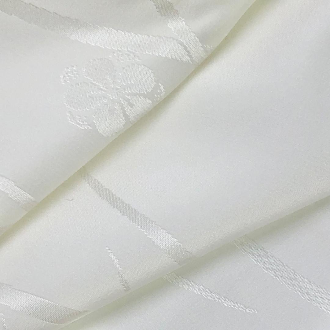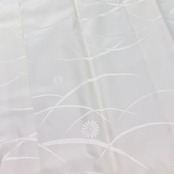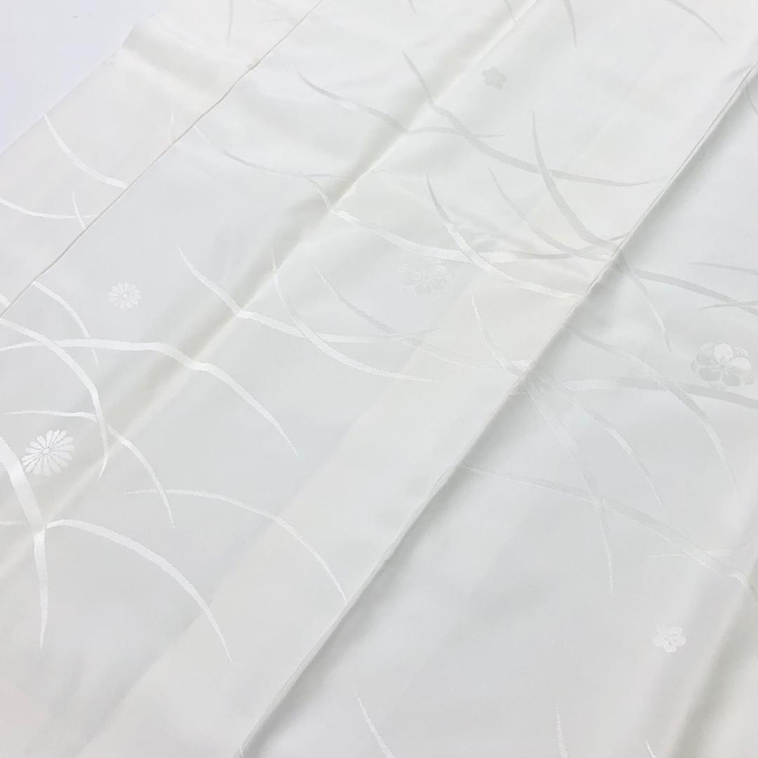 乳白色のお色味に芝に花模様の柄裄がデザインされた素敵なお品でございます。