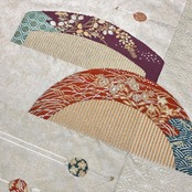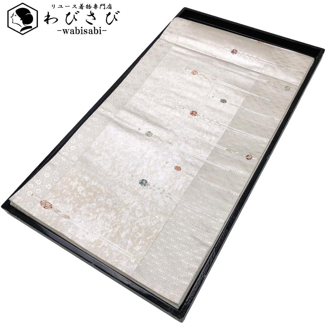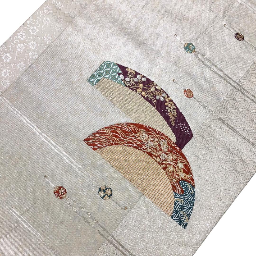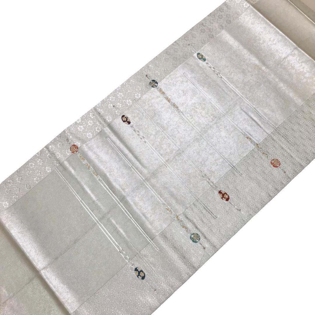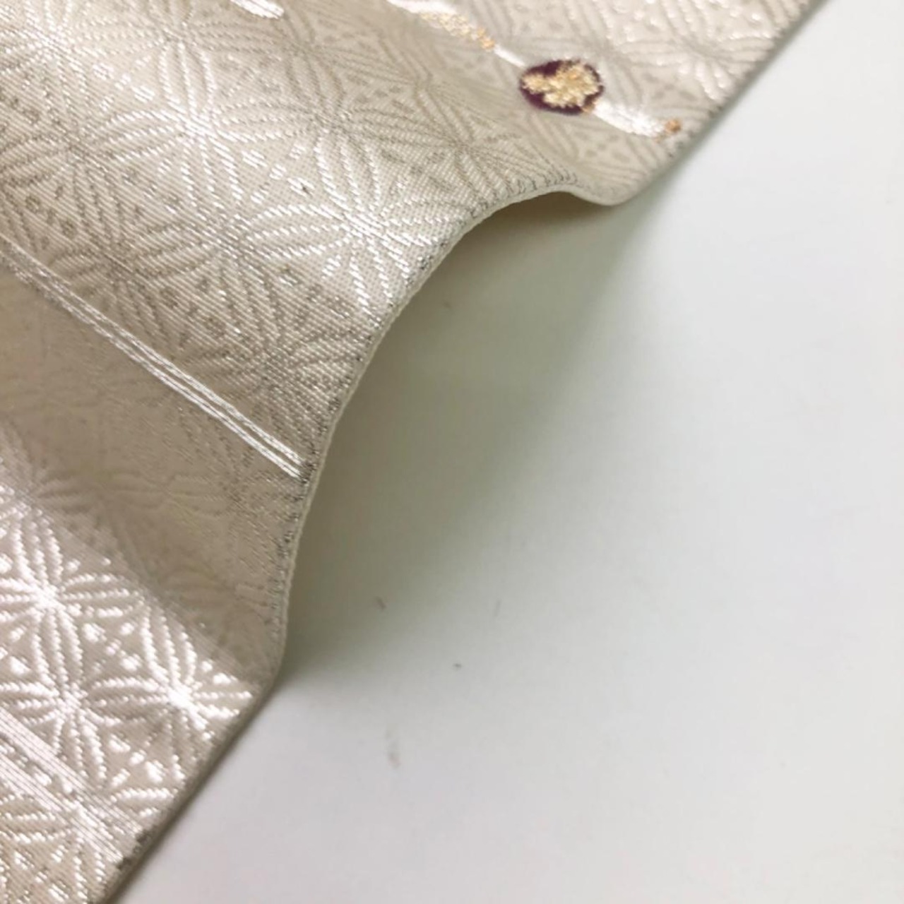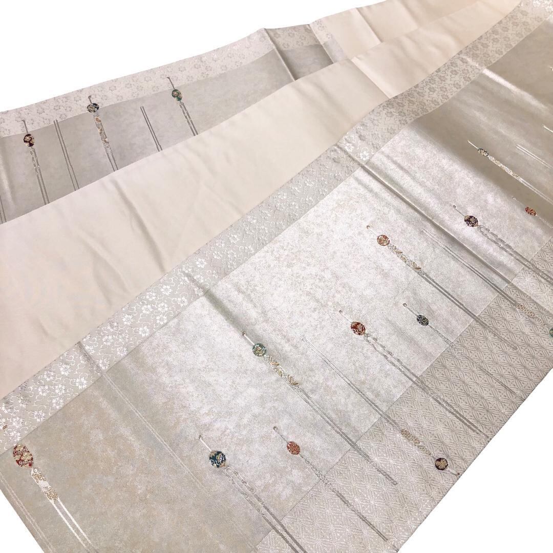 胡粉色の上品なお色味に可愛らしい簪、櫛の織柄がデザインされた素敵なお品でございます。