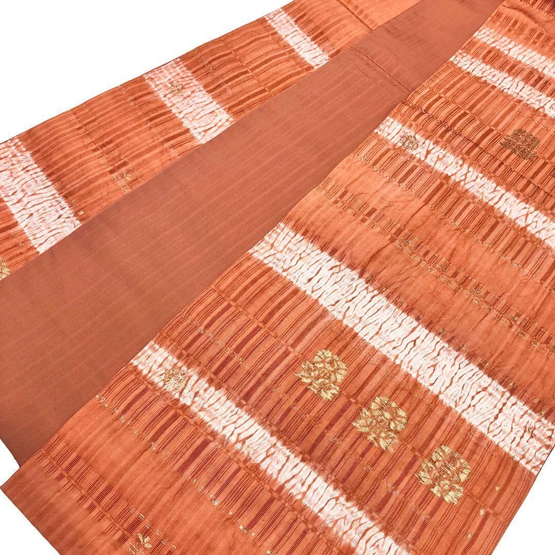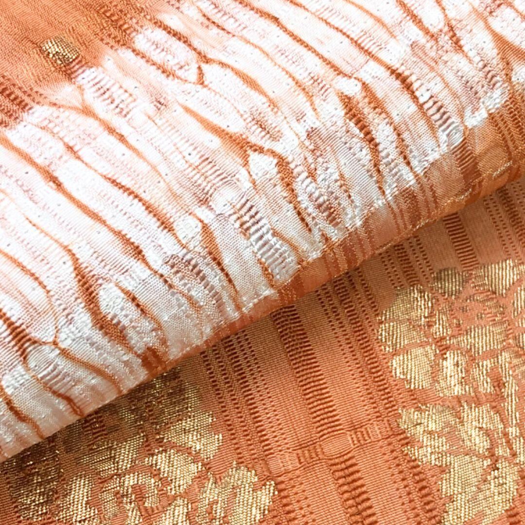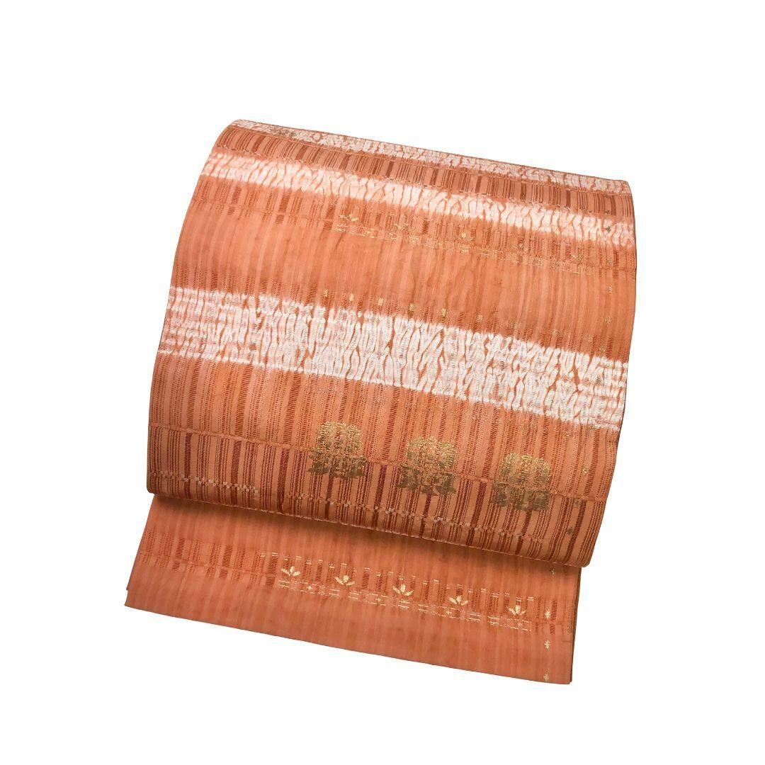 袋帯 横段絞り模様 花模様 金彩 緋褪色 O-5803 着物 きもの kimono 和服 和装 中古 リサイクル着物 【送料無料】