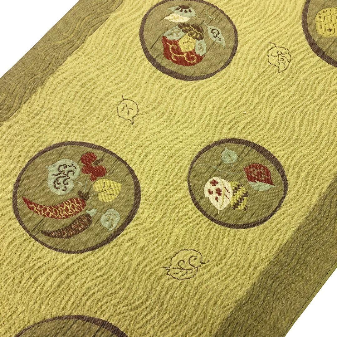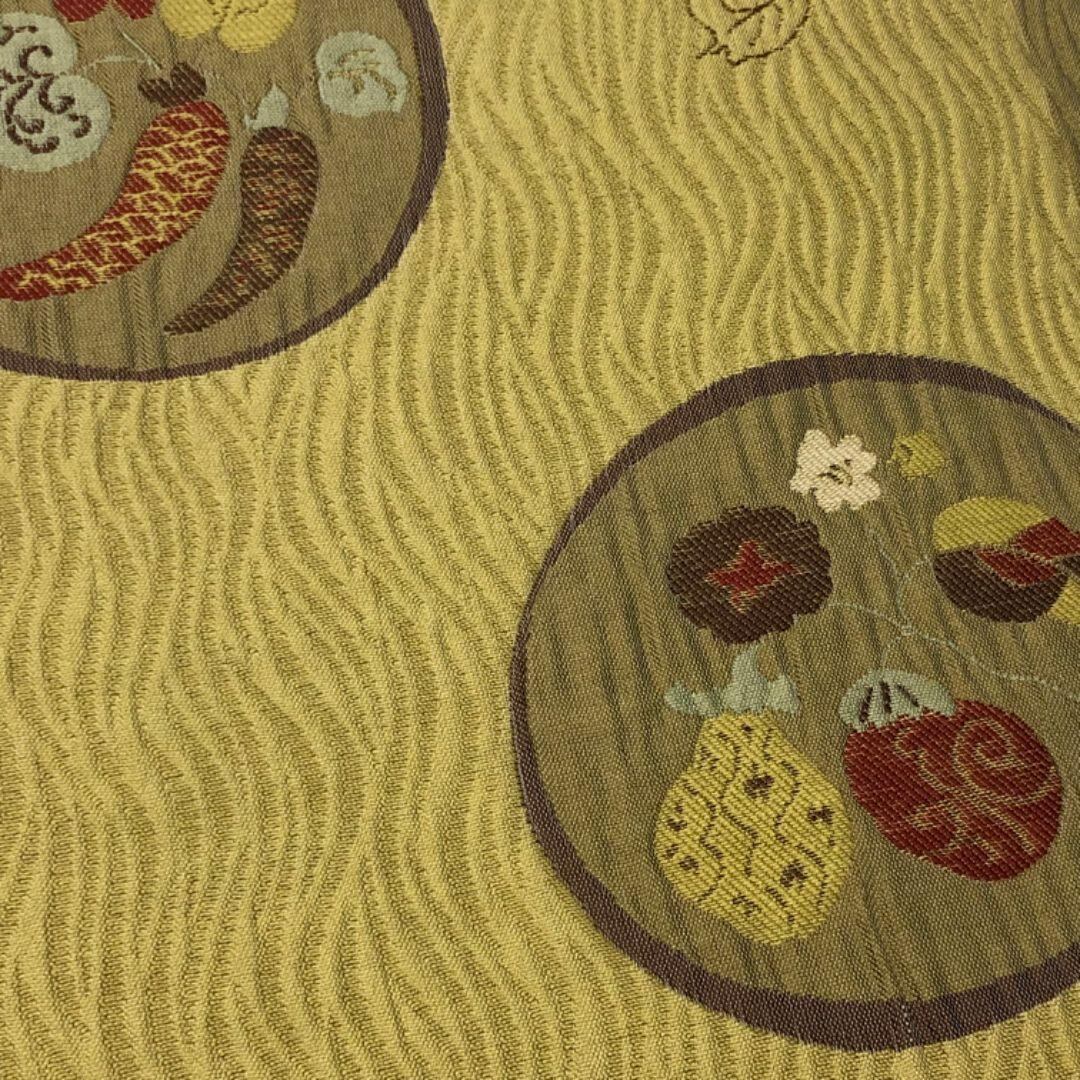 袋帯 丸に野菜柄 葉模様 青朽葉色 O-5810 着物 きもの kimono 和服 和装 中古 リサイクル着物 【送料無料】