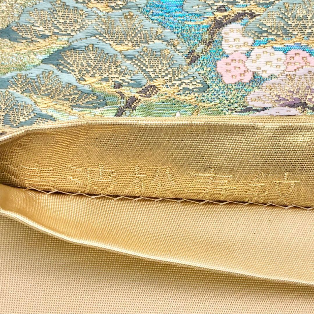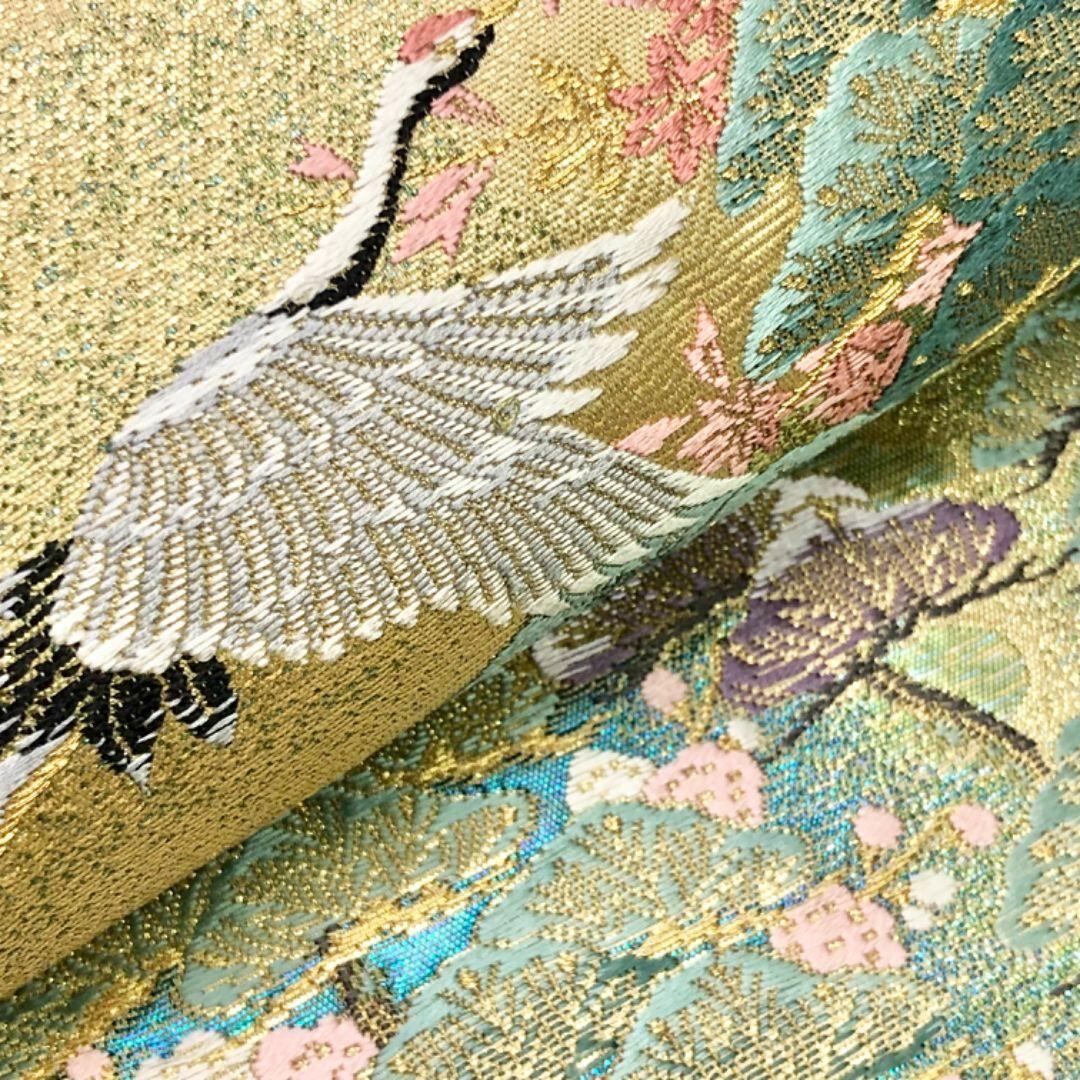 金色ベースの美しい鶴に松模様がデザインされた品のある素敵な柄行のお品でございます。
