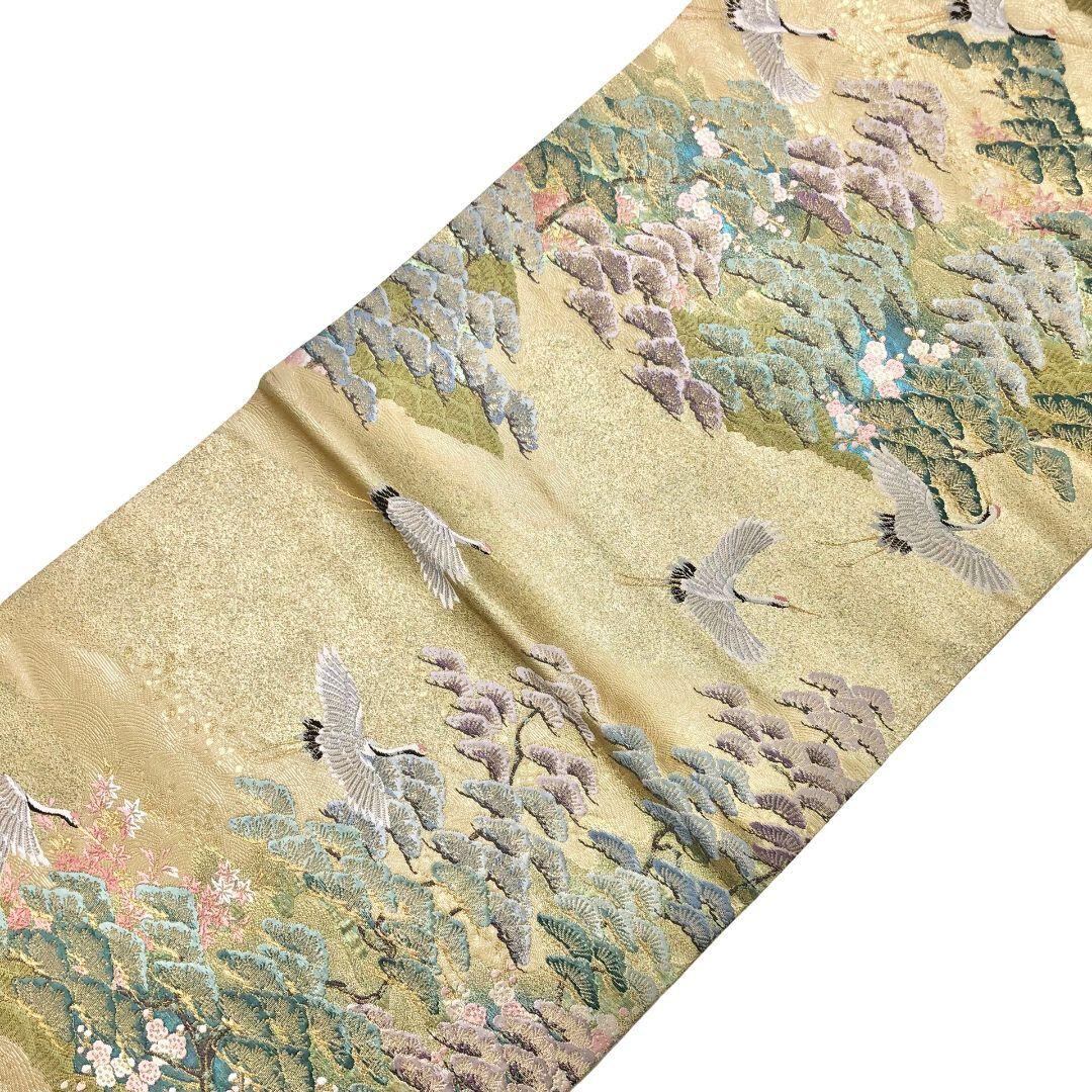 袋帯 清波松寿紋 美しい鶴に松 金糸 O-5809 着物 きもの kimono 和服 和装 中古 リサイクル着物 【送料無料】