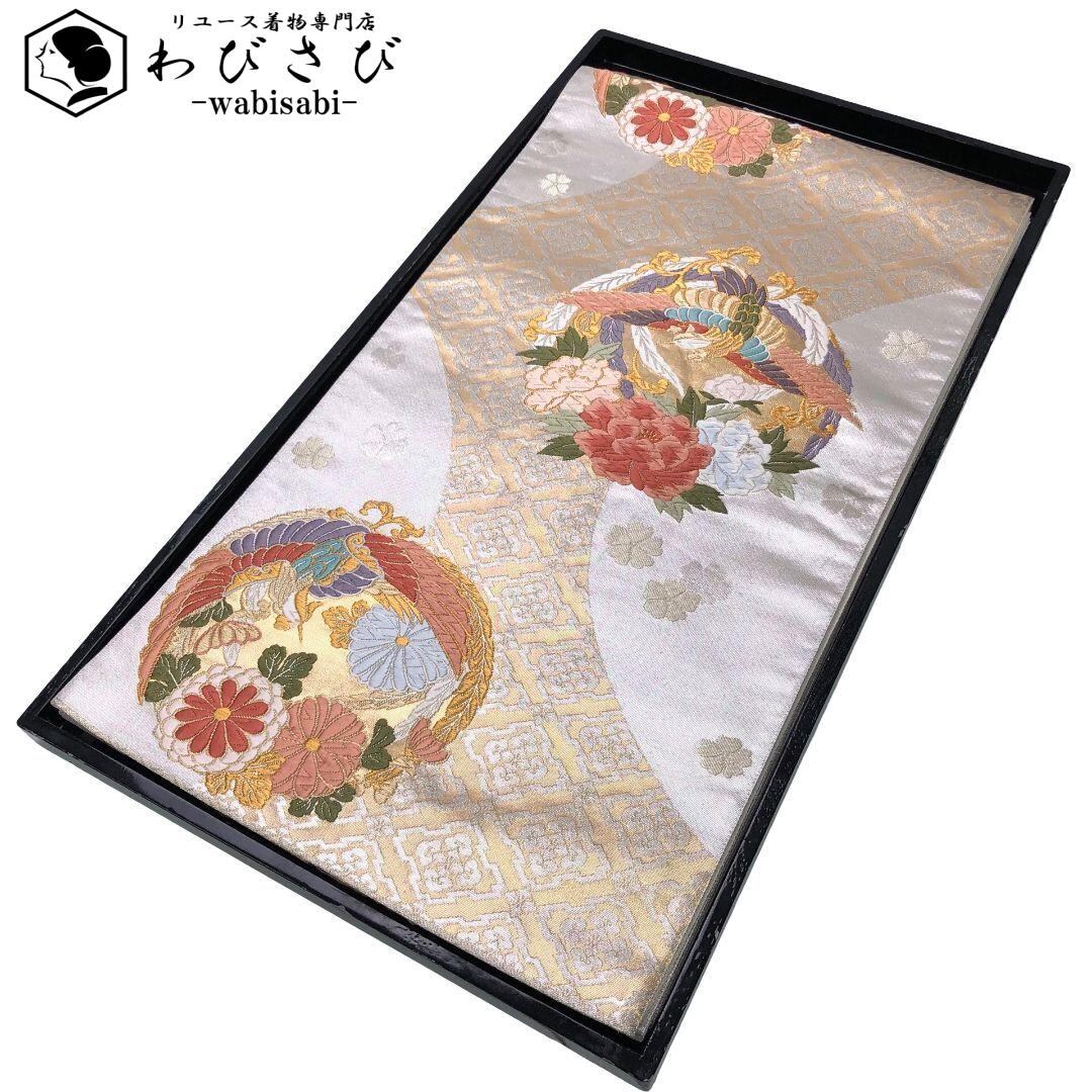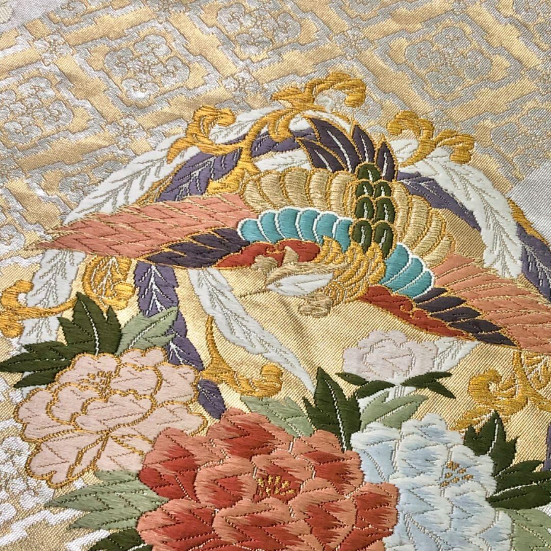 袋帯 鳳凰に花模様 唐織 花菱 貝粉色 O-5806 着物 きもの kimono 和服 和装 中古 リサイクル着物 【送料無料】