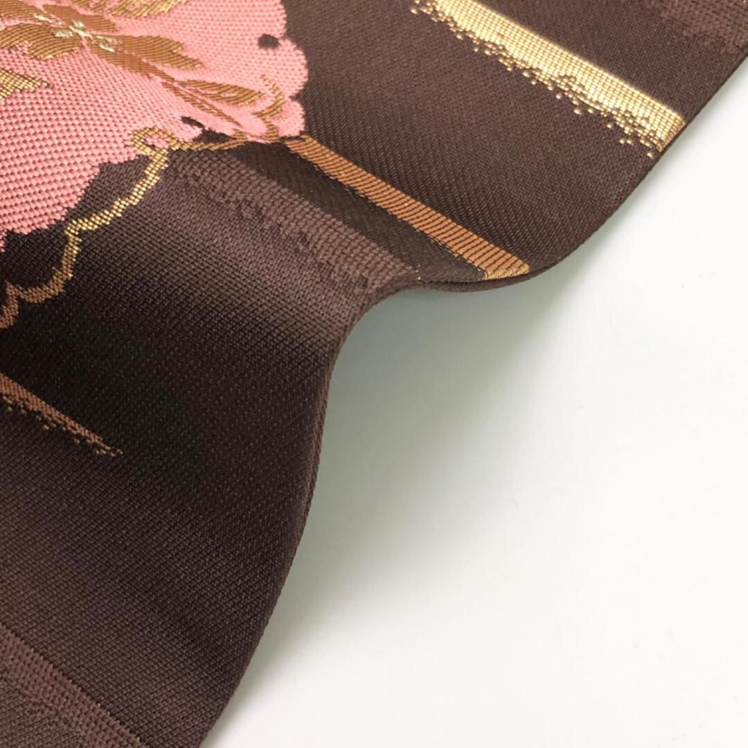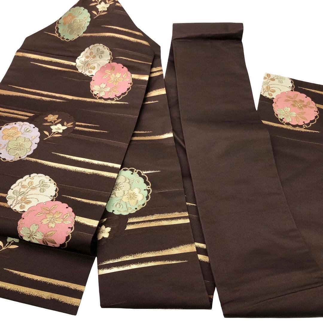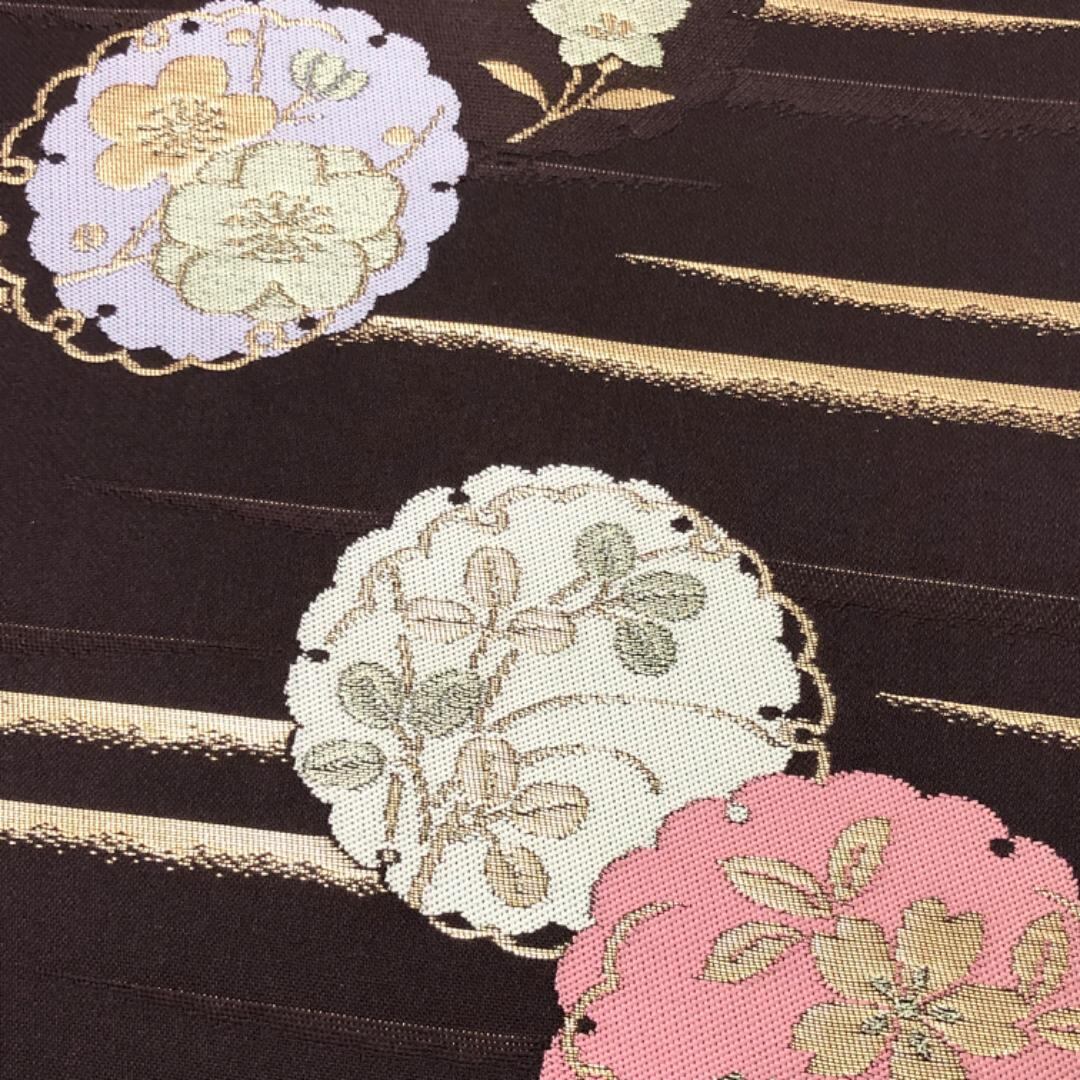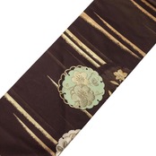 名古屋帯 雪輪に花模様 萩 金糸 焦色 O-5813 着物 きもの kimono 和服 和装 中古 リサイクル着物 【送料無料】