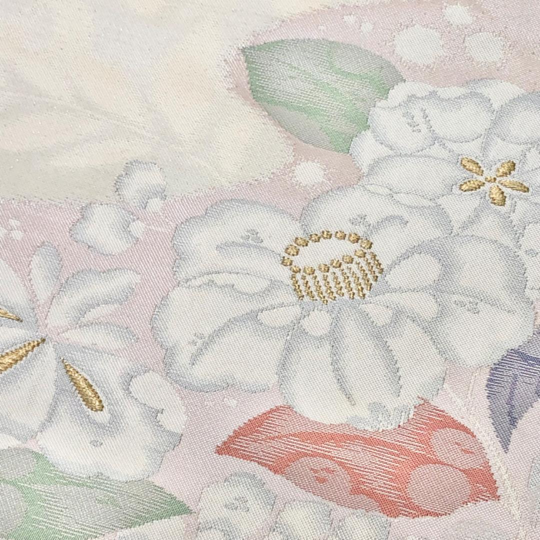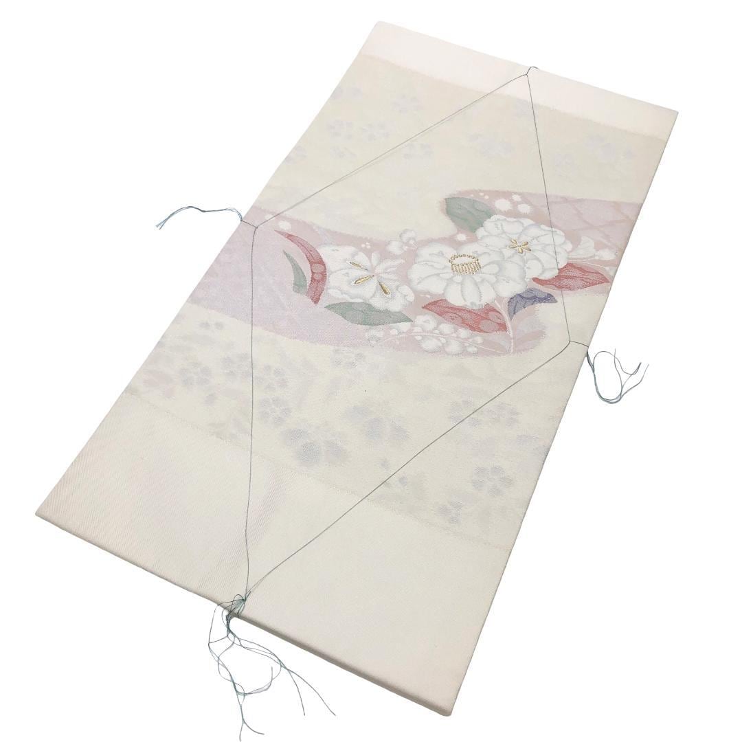 乳白色の上品なお色味に美しい椿の花模様がデザインされた素敵なお品でございます。