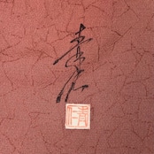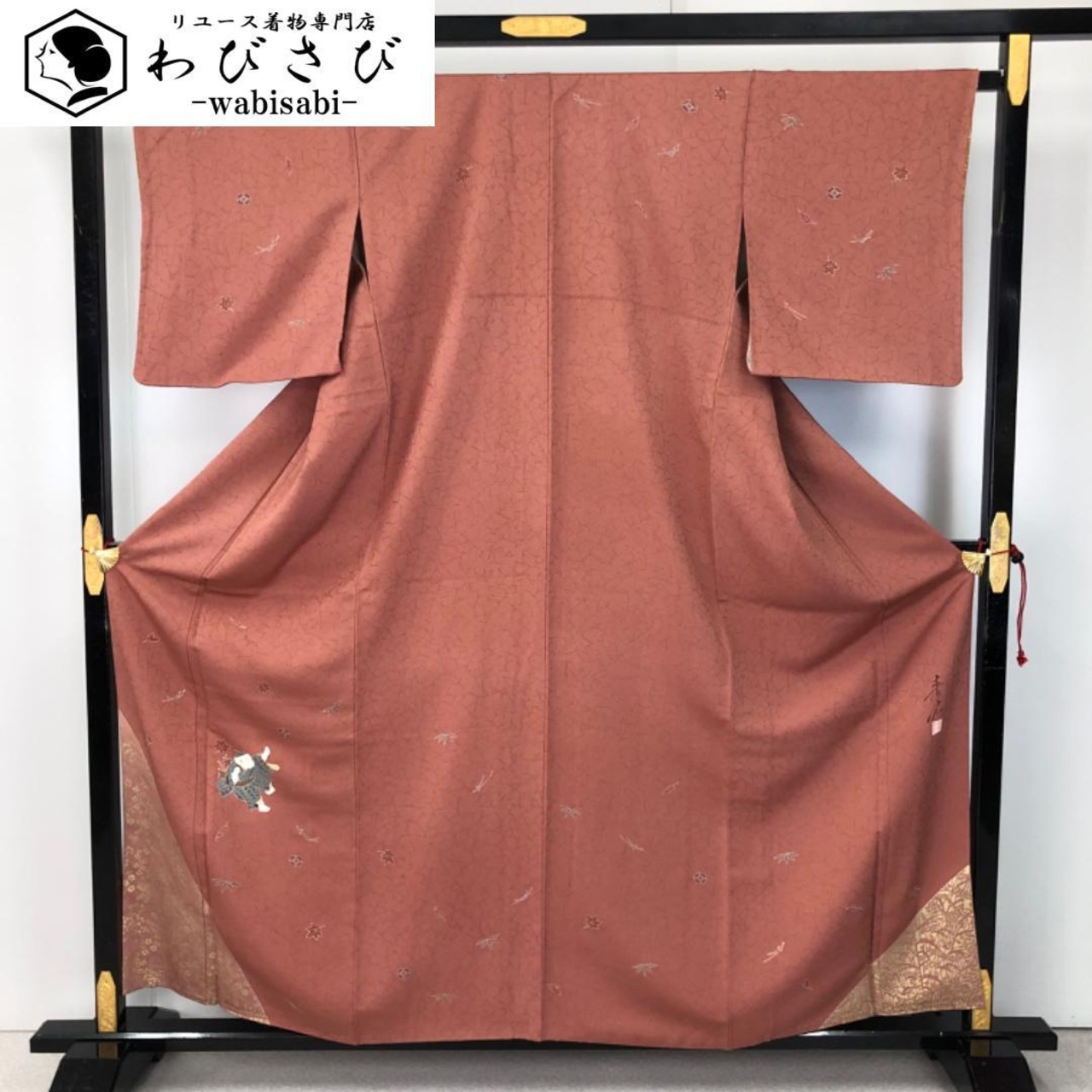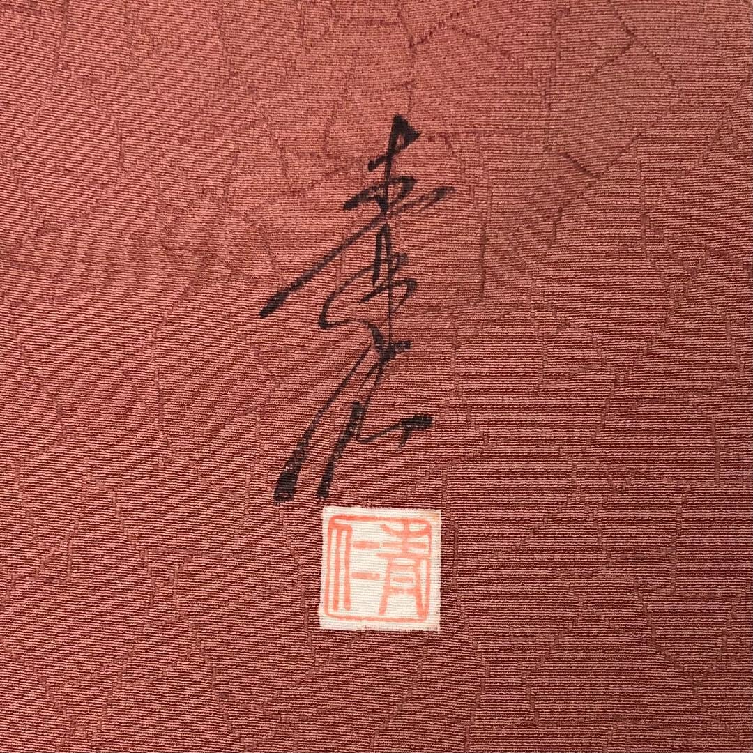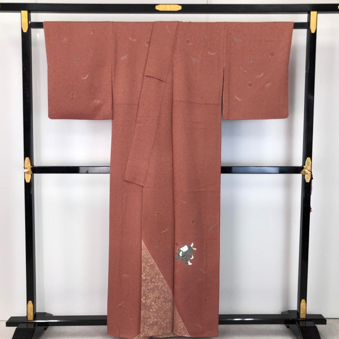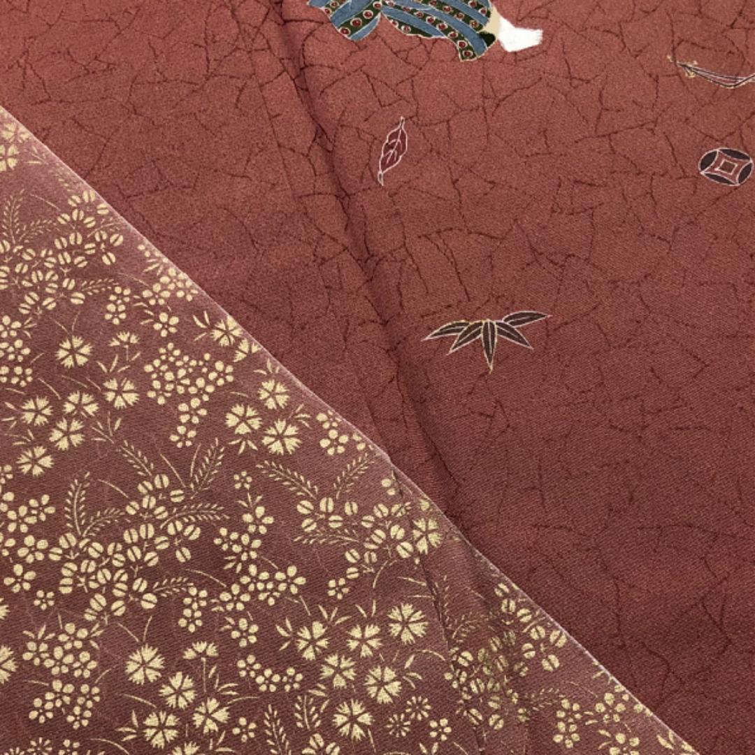 弁柄色のお色味に童子、小花柄などがデザインされた素敵なお品でございます。