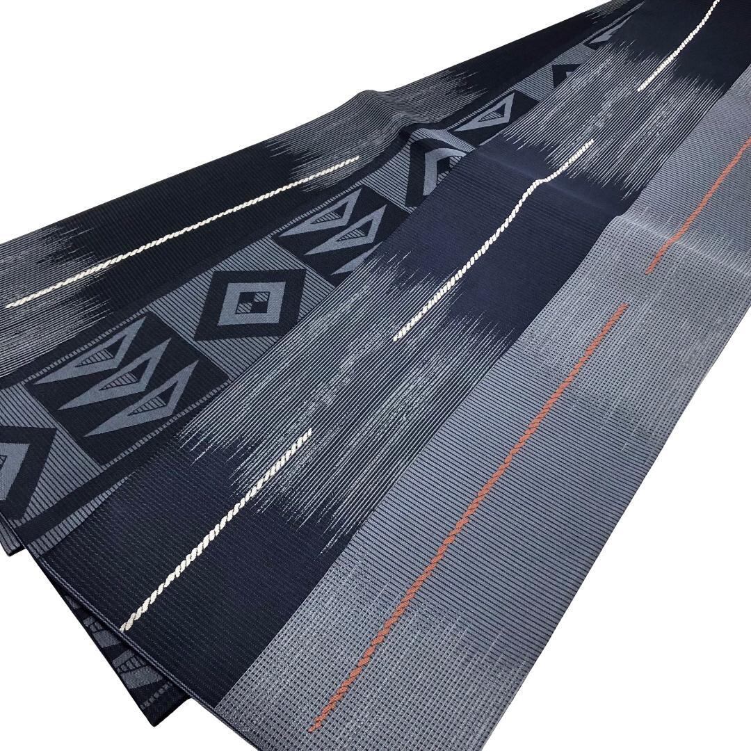紺鳶色の落ち着いたお色味に抽象模様がデザインされた雰囲気の良い素敵な柄裄のお品でございます。