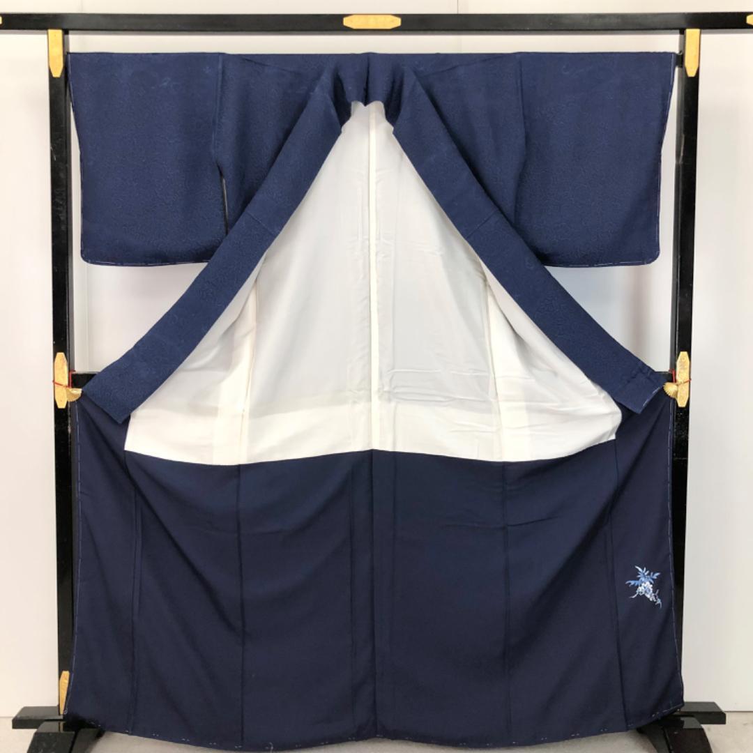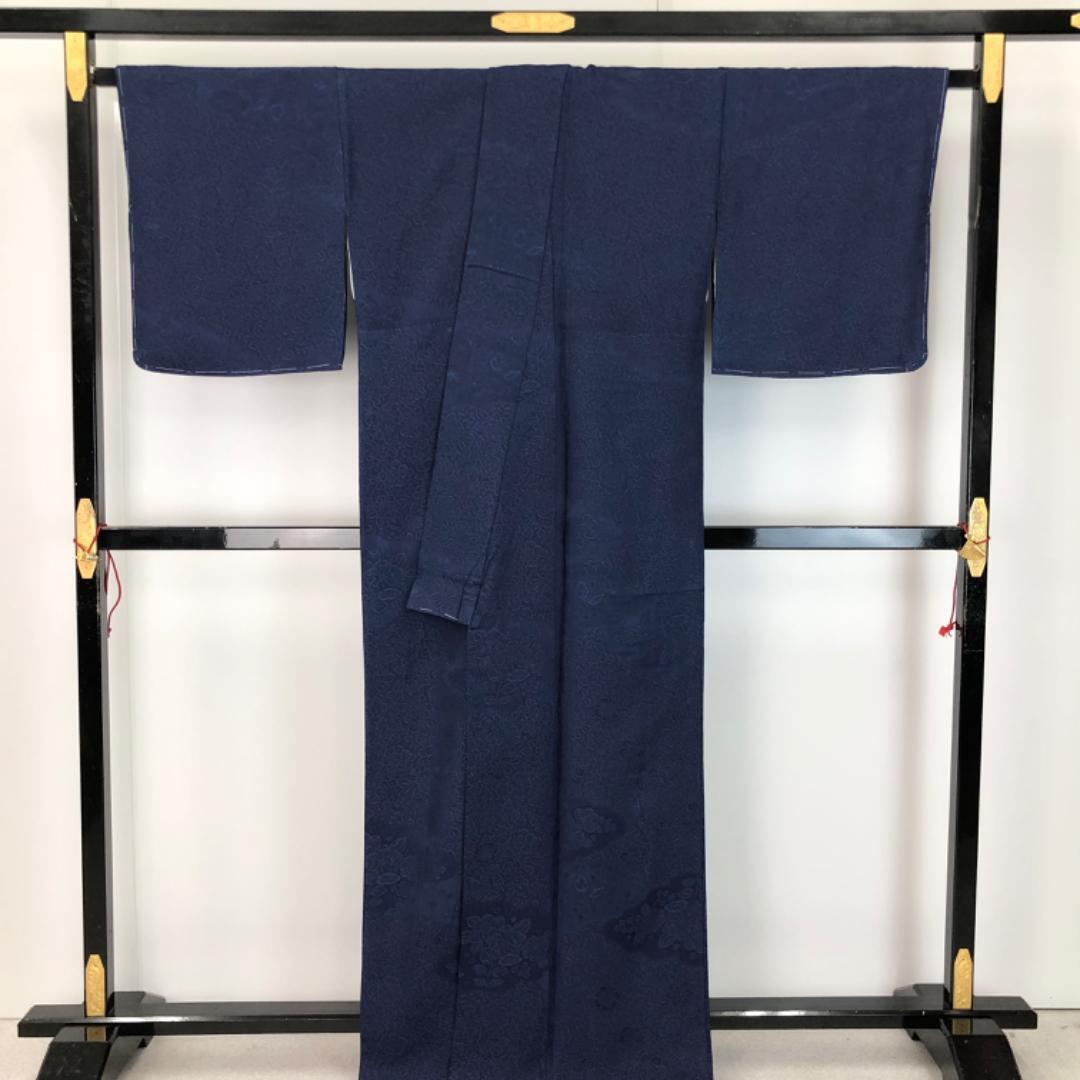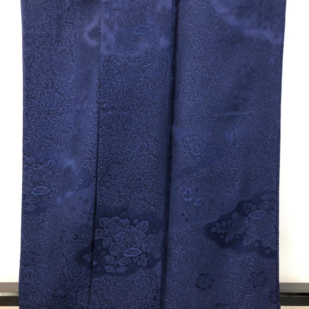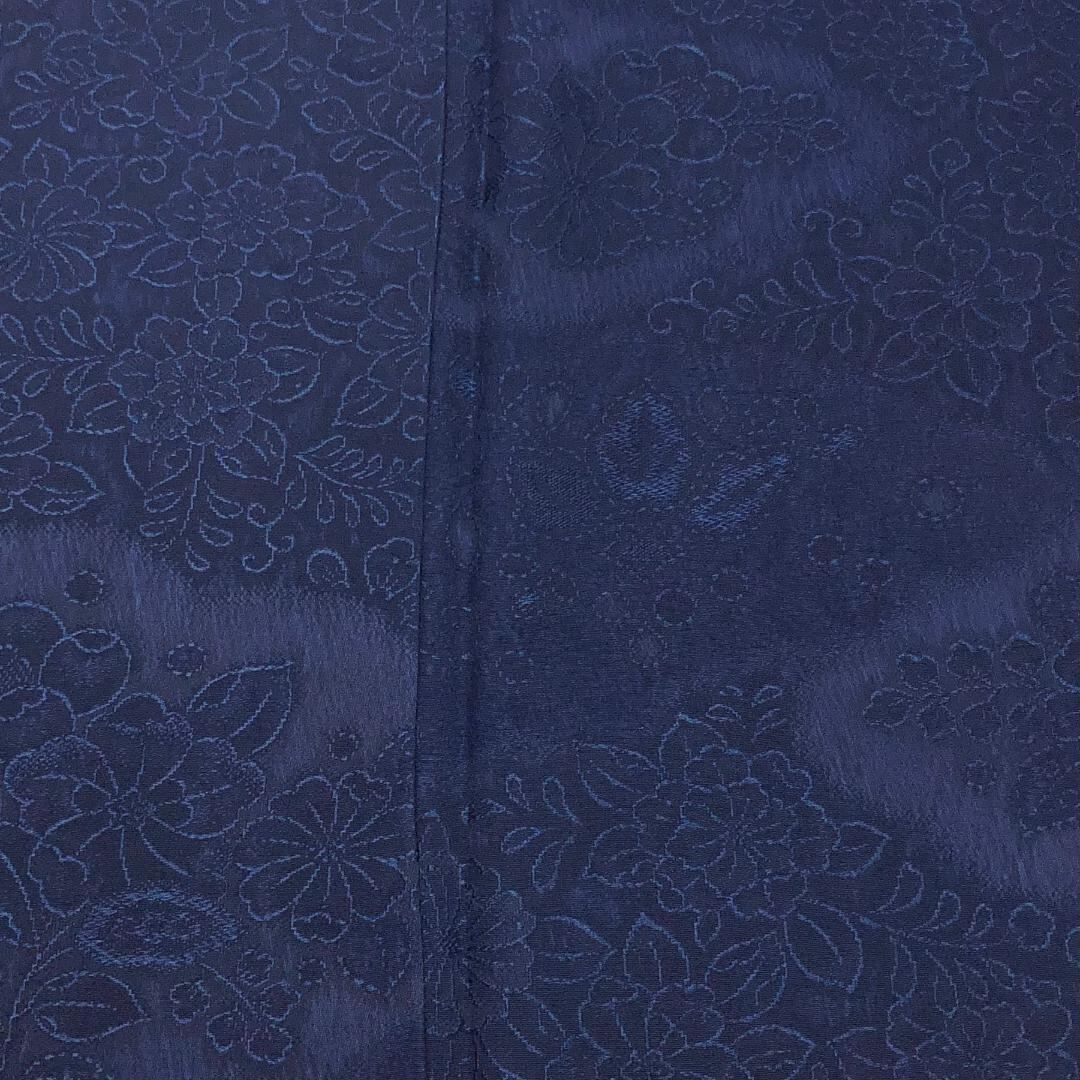 鉄葡萄色ベースのお色味に美しい花模様の柄裄がデザインされた雰囲気の良い素敵なお品でございます。
