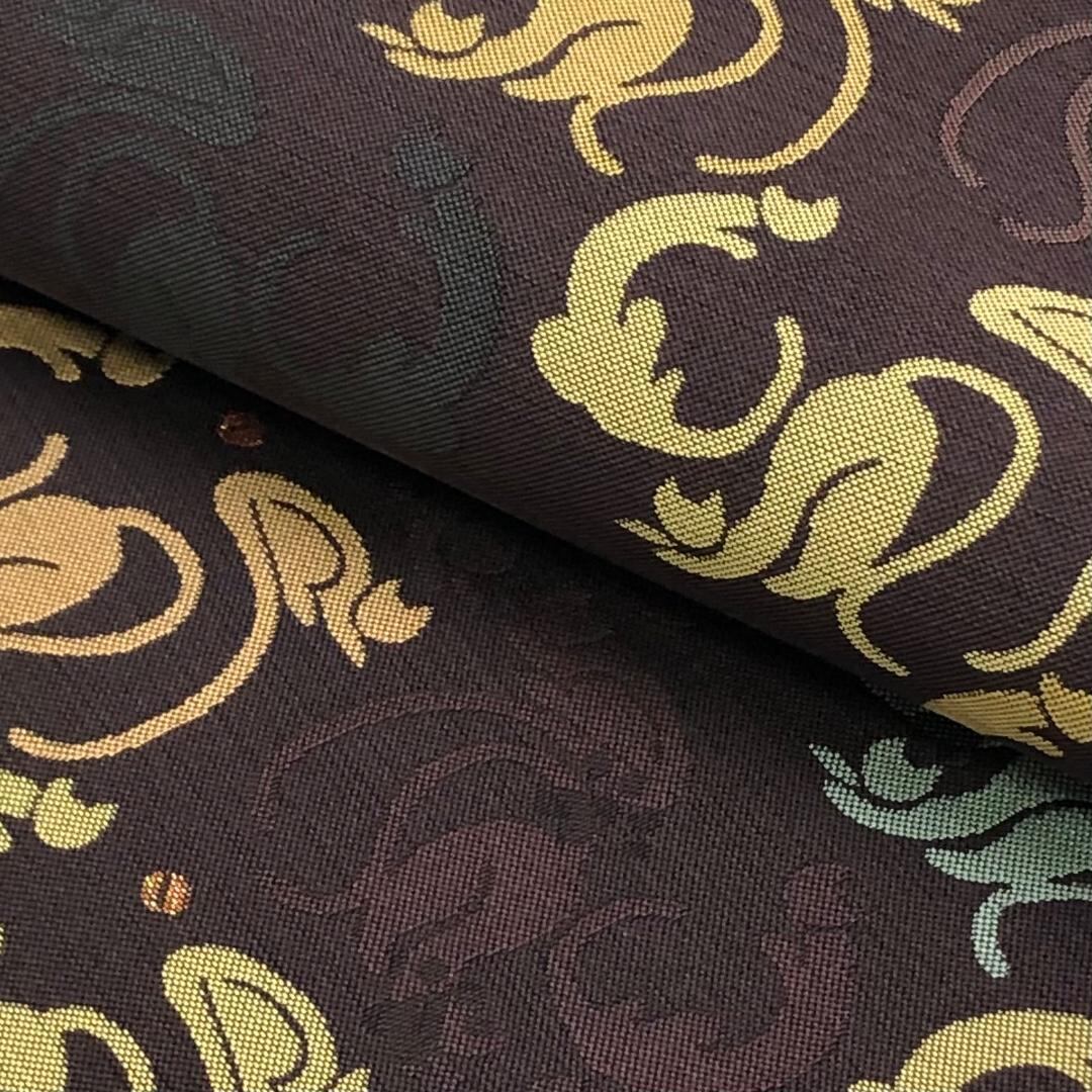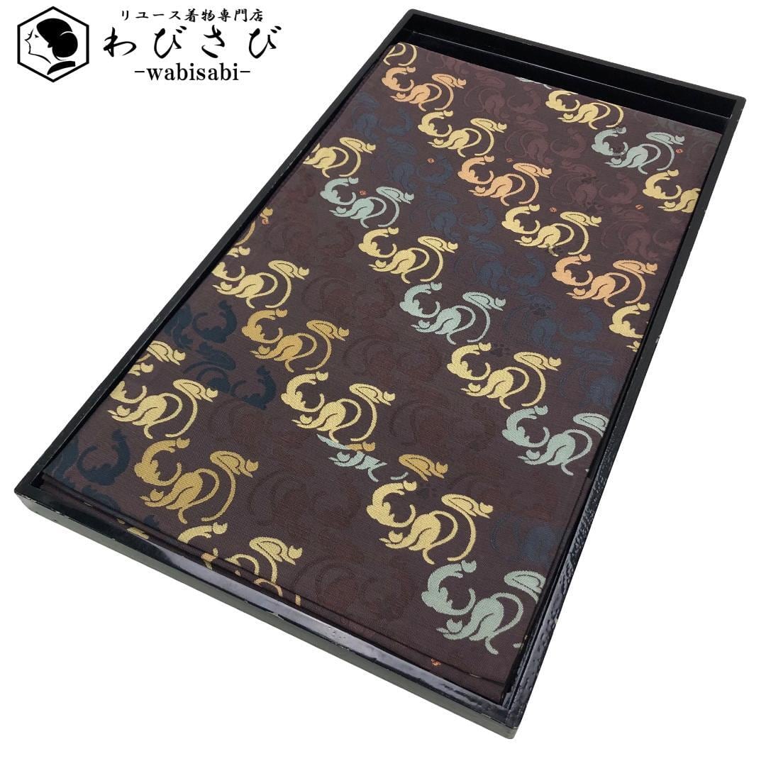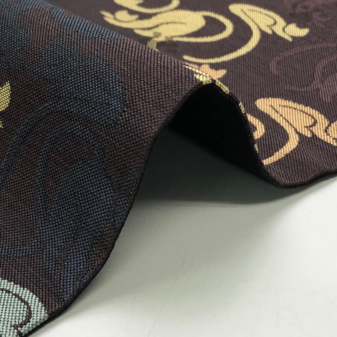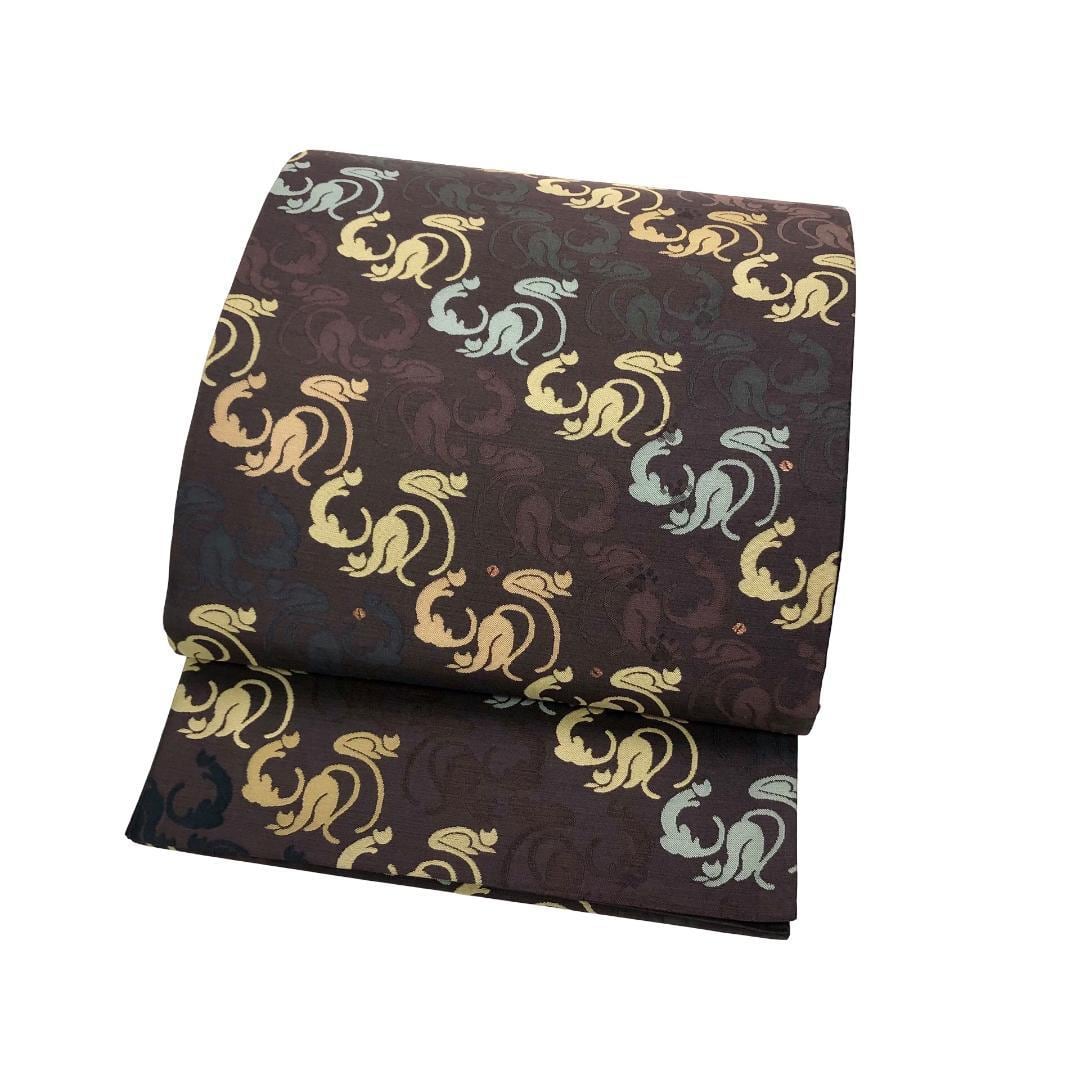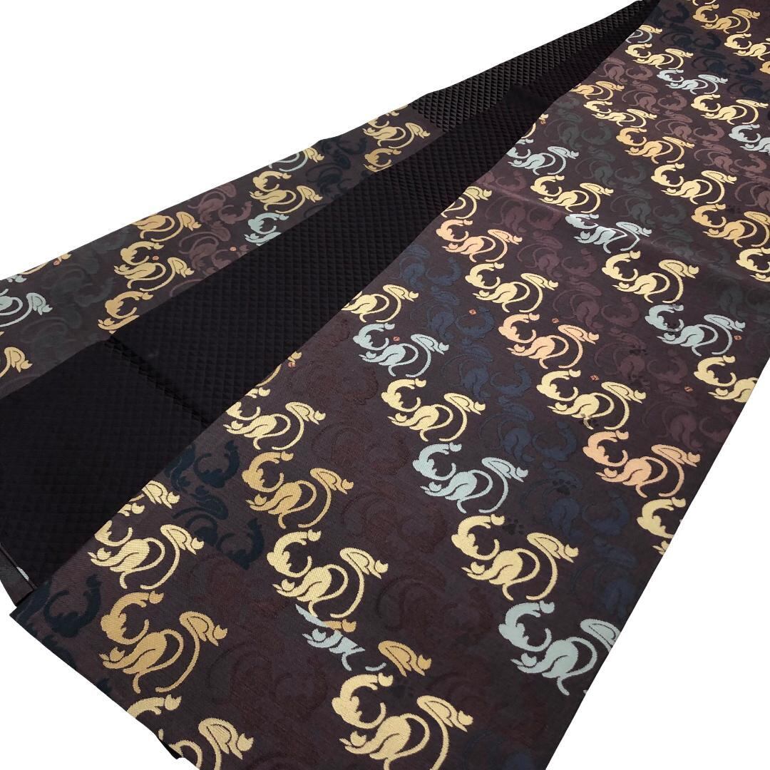 黒紅梅色の落ち着いたお色味に斜めに並んだ猫柄、足跡、肉球の柄行がデザインされた可愛らしい素敵なお品でございます。